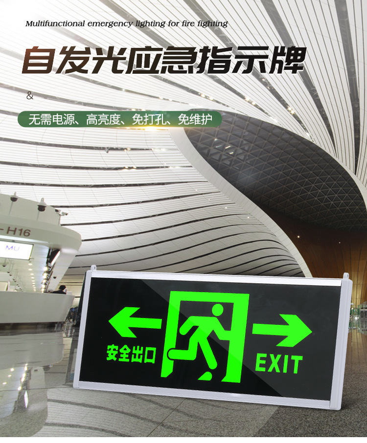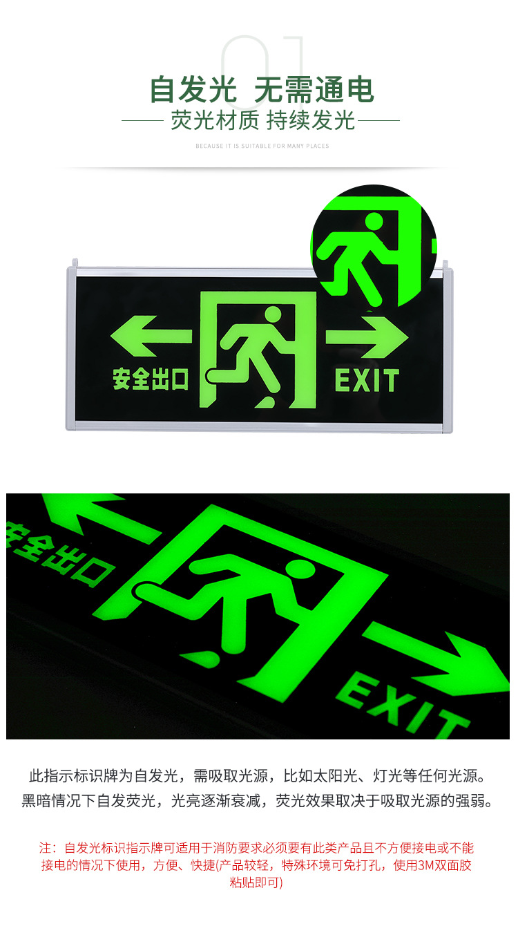 안전구출구 표지판 자체발광 무전원 야광 화재통로 표지등 비상 야광등
