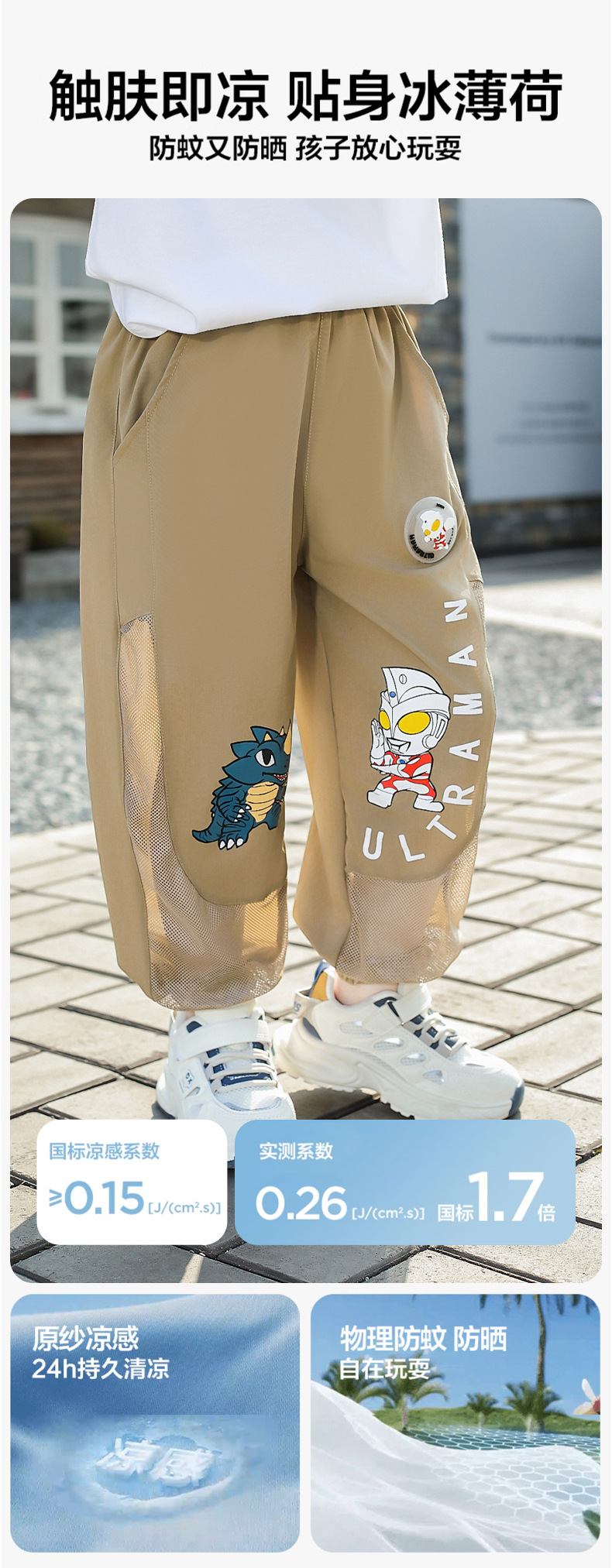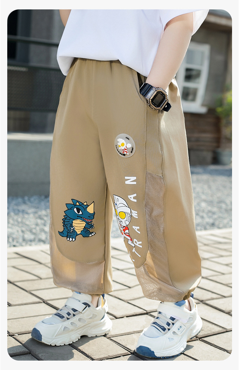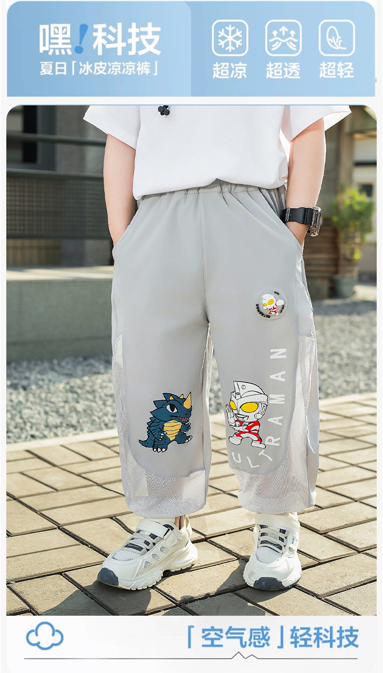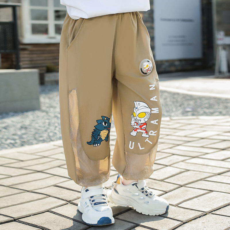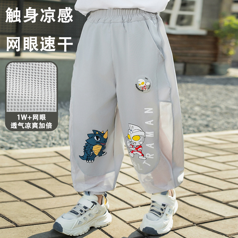 울트라 맨 안티 모기 바지 소년 바지 여름 얇은 어린이 쿨 느낌 메쉬 통기성 빠른 건조 소년 스포츠 바지