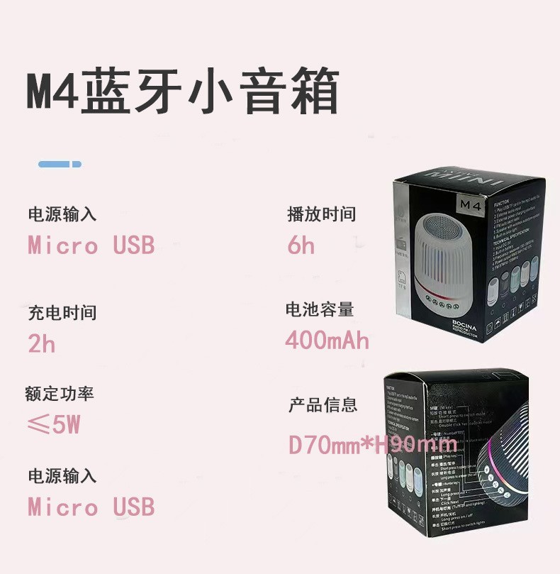 뜨거운 판매 새로운 M4 미니 스마트 블루투스 스피커 서브 우퍼 홈 야외 휴대용 무선 소형 스피커 쉘 소재