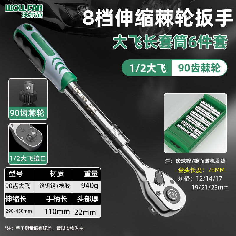 90 치아 산업용 등급 1/2 Da Fei 확장 텔레스코픽 래칫 렌치 양방향 슬리브 퀵 렌치 확장 막대 절약형 MM &스토어 가기