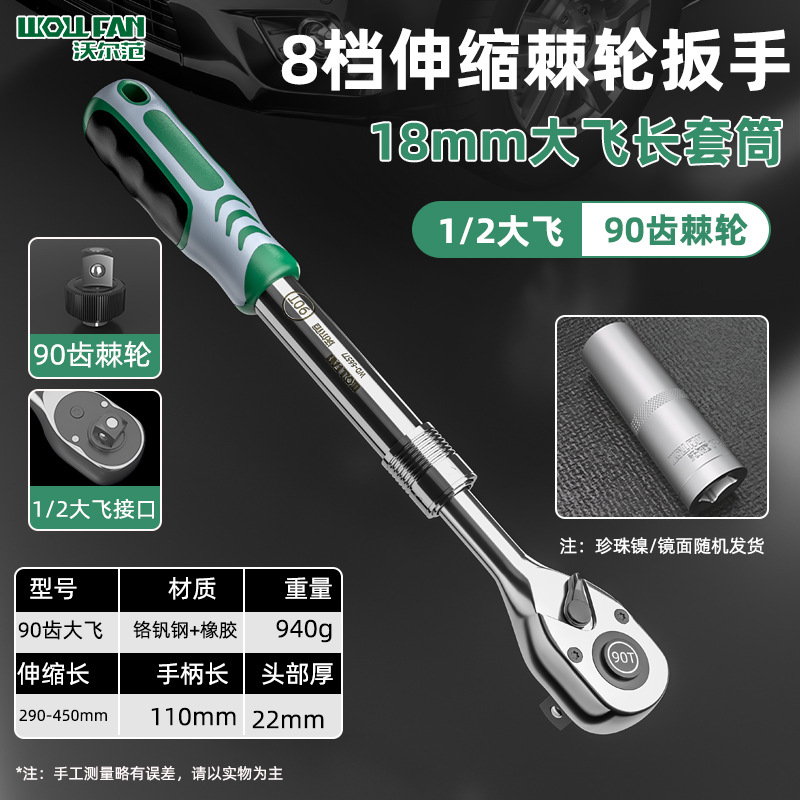 90 치아 산업용 등급 1/2 Da Fei 확장 텔레스코픽 래칫 렌치 양방향 슬리브 퀵 렌치 확장 막대 절약형 MM &