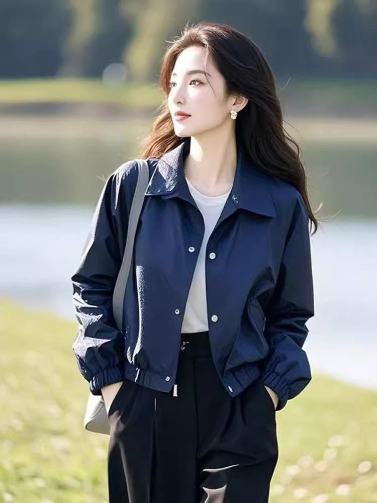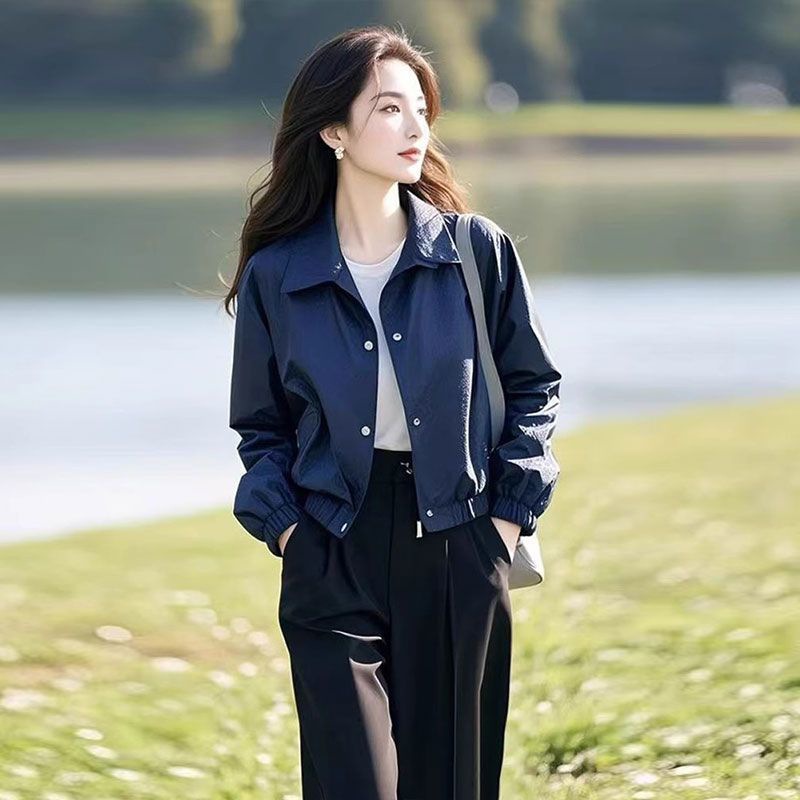 2025 봄과 가을 재킷 코트 여자 스택 올매치 독특한 슈퍼 모양 캐주얼 블루 작은 재킷스토어 가기
