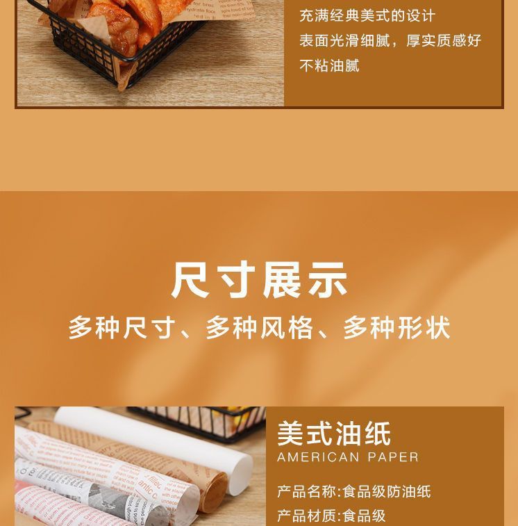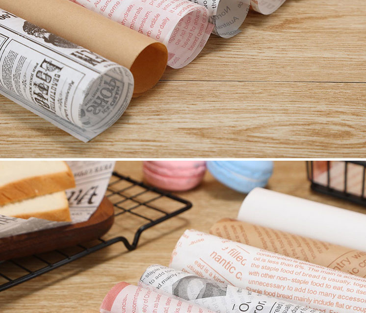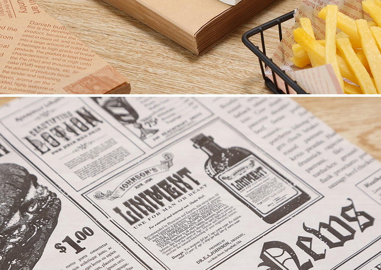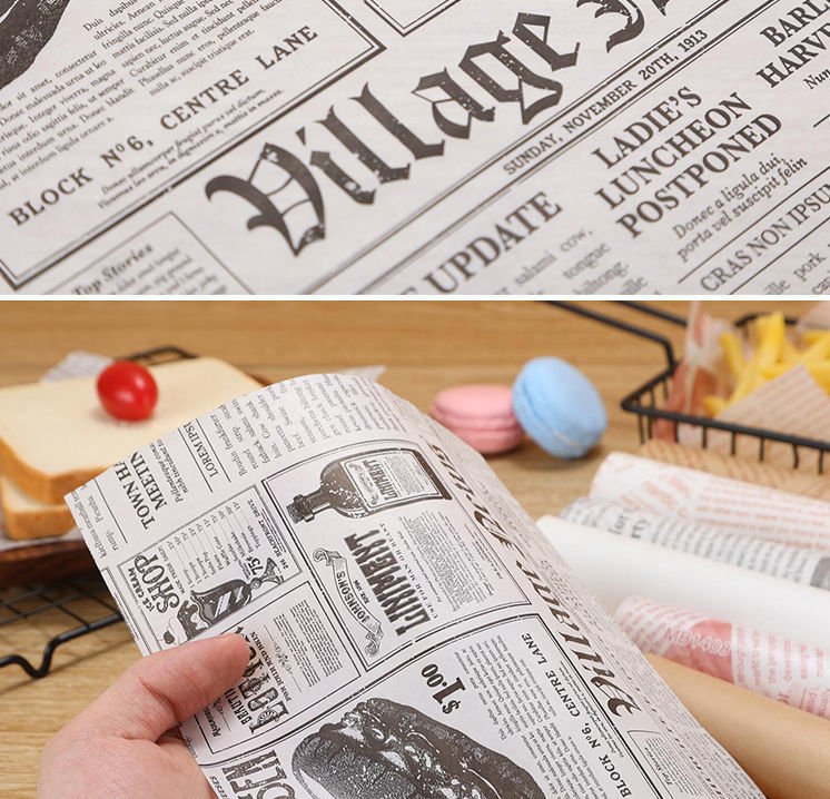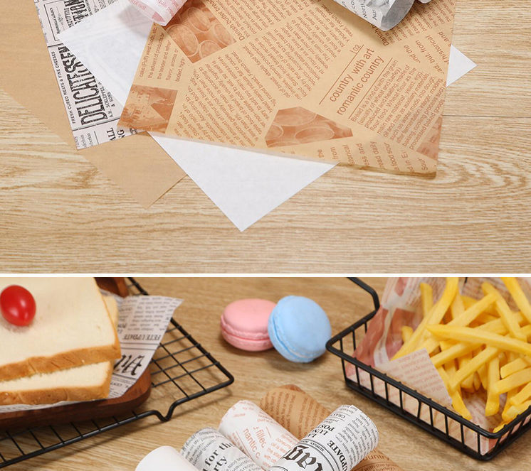 ∝ 트레이 베이킹 및 튀김 기름 방지 식품 기름 흡수 종이 기름 종이 특수 감자 튀김 치킨 패드 종이 버거 영어 신문