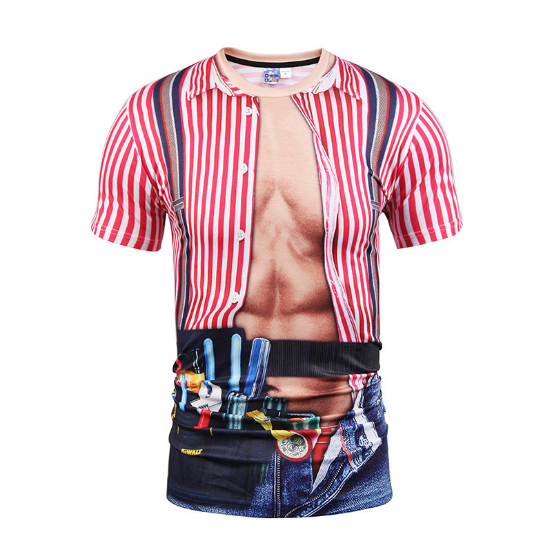 여름 새로운 3d 유럽과 미국의 짧은 t 남자 정장 반팔 가짜 두 조각 재미 있은 디지털 인쇄 크리 에이 티브 선물 티셔츠