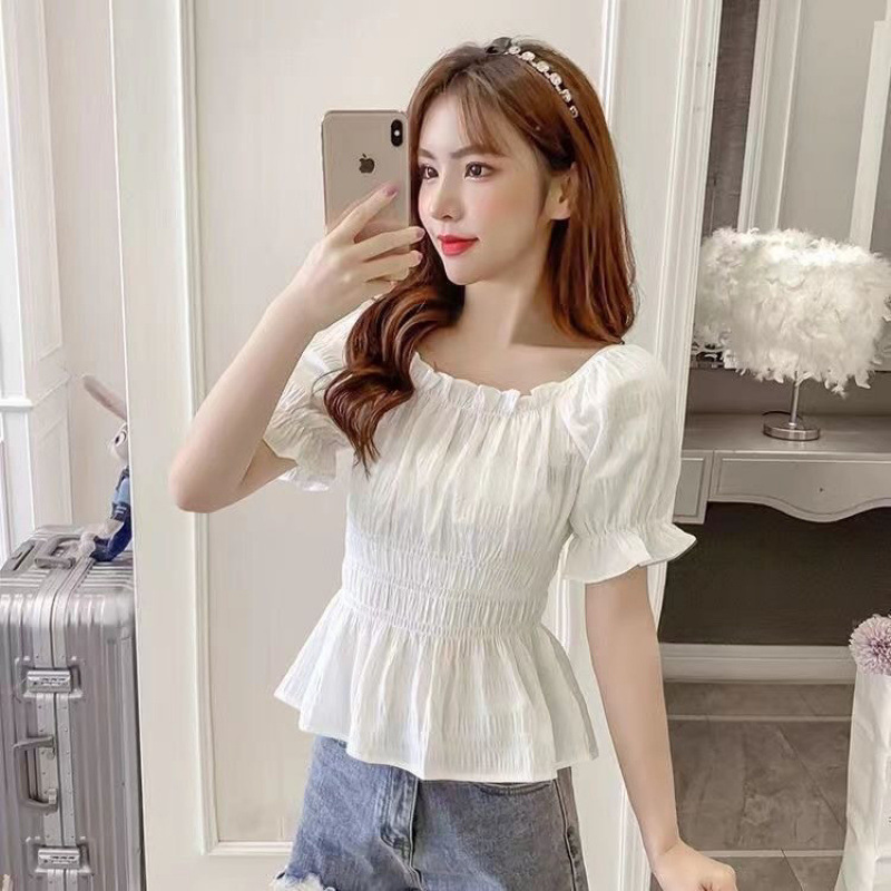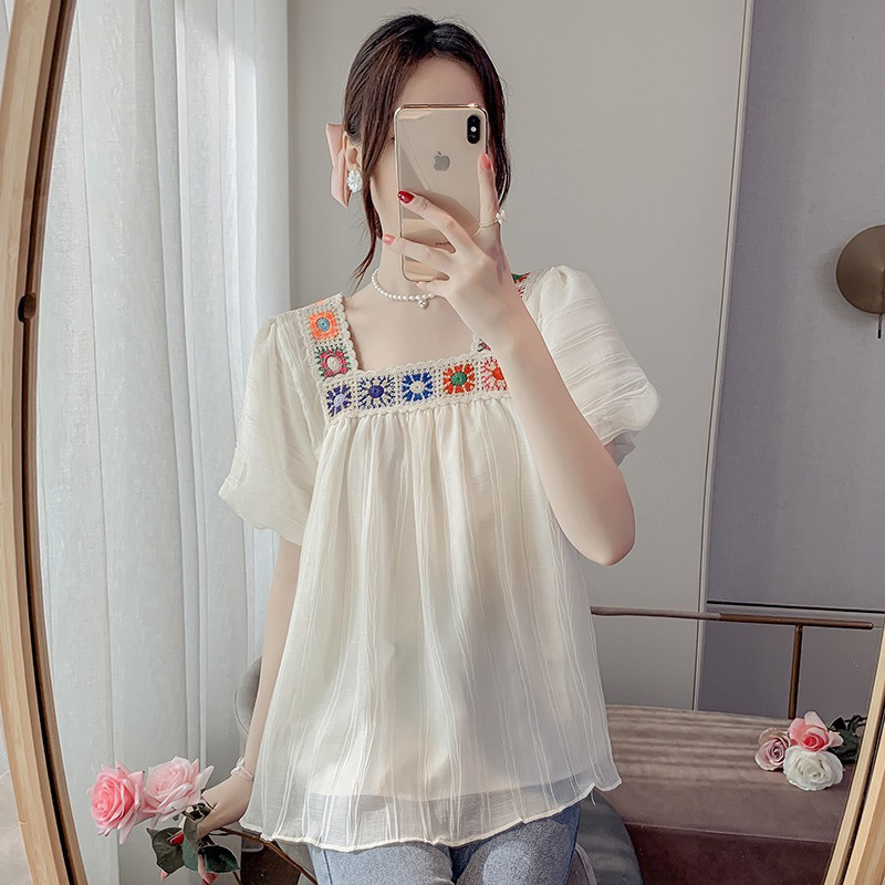 달콤한 나이를 줄이는 자수 반팔 셔츠 여름 여성의 프랑스 복고풍 퍼프 소매 세련된 디자인 탑스토어 가기