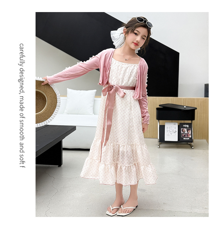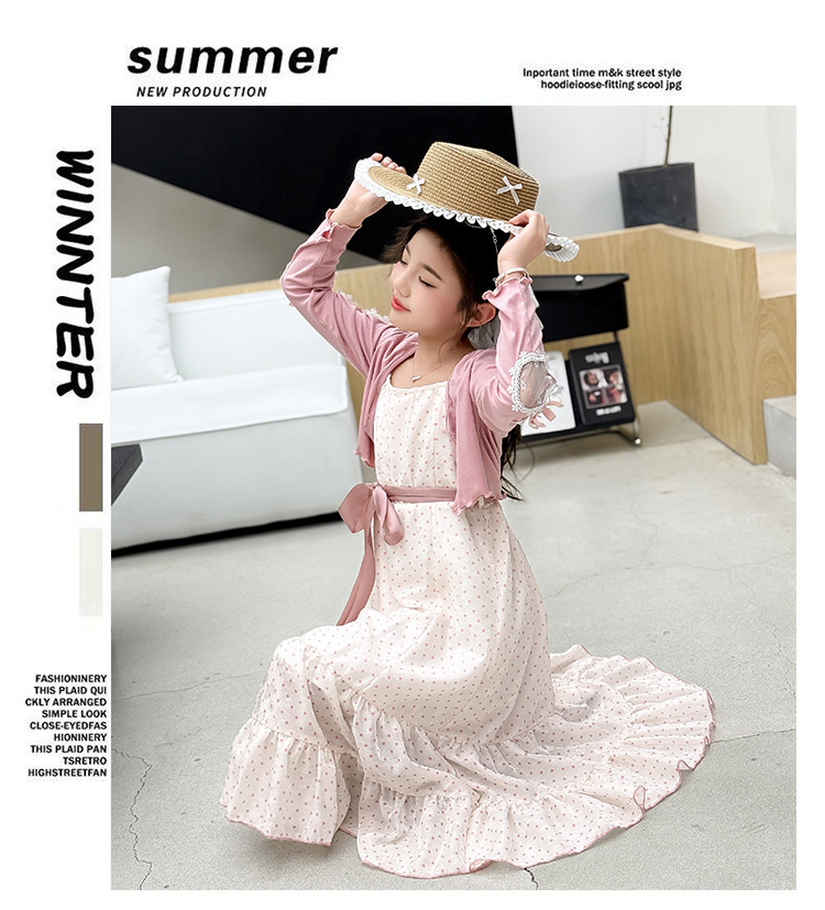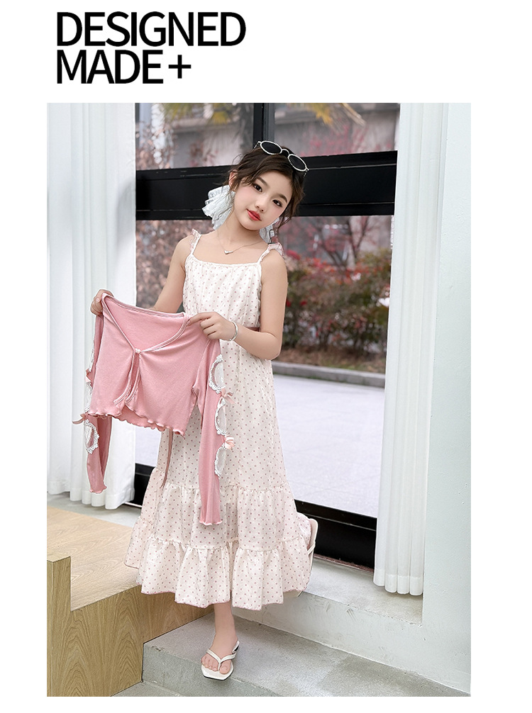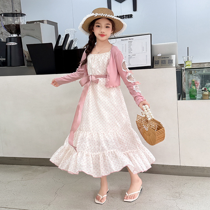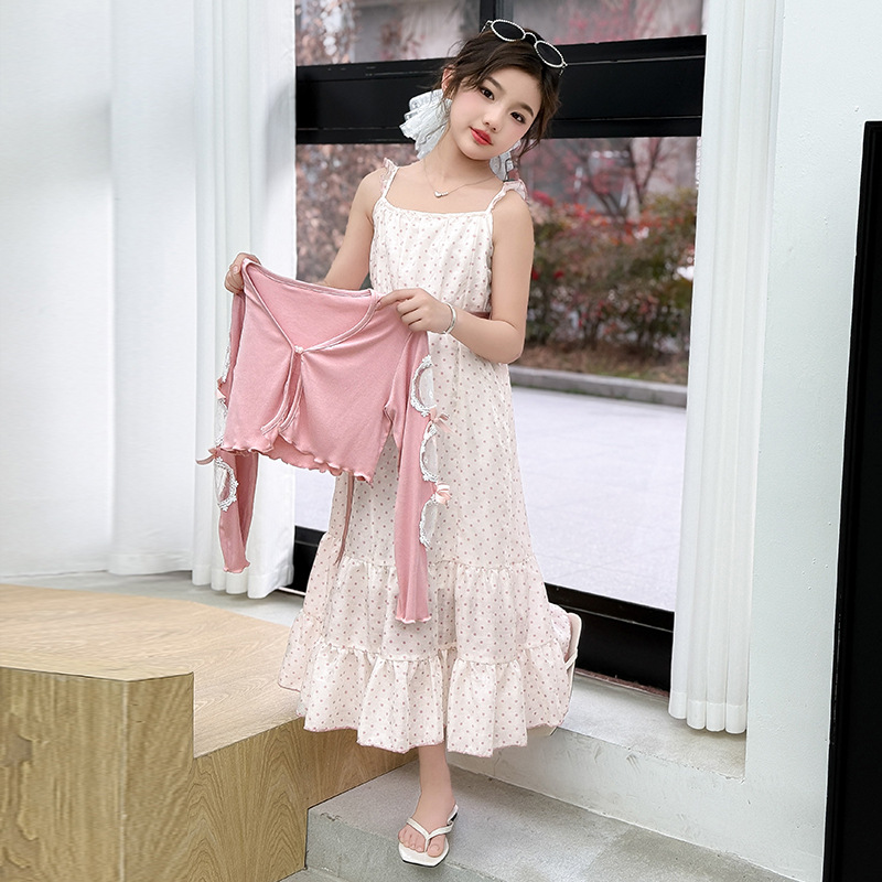 소녀들의 봄과 여름 세트 2025 여자 한국식 서양식 프랑스 슬링 원피스 목도리 투피스 세트