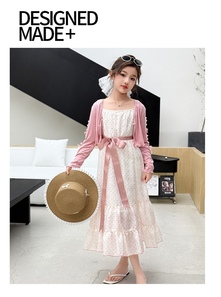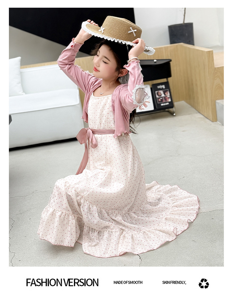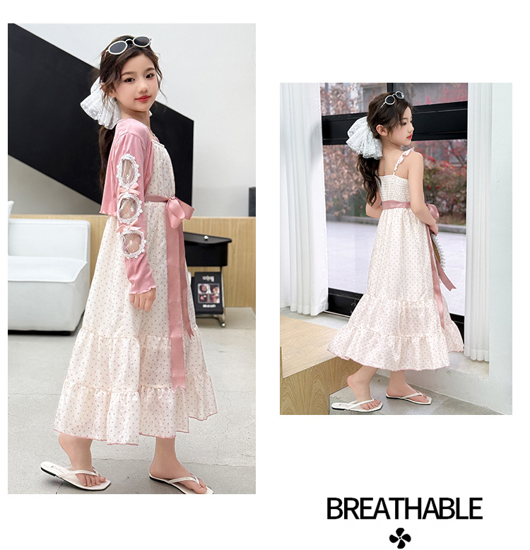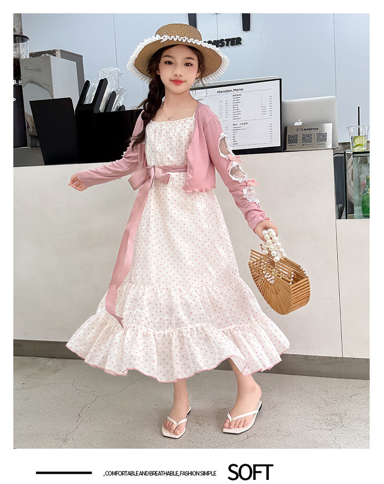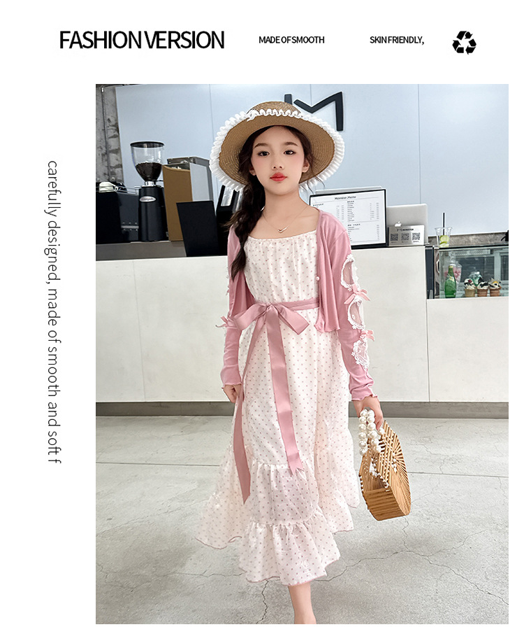 소녀들의 봄과 여름 세트 2025 여자 한국식 서양식 프랑스 슬링 원피스 목도리 투피스 세트