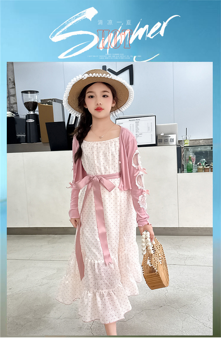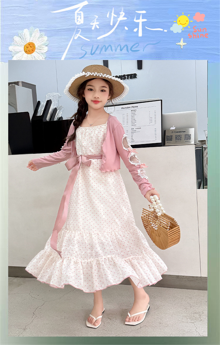 소녀들의 봄과 여름 세트 2025 여자 한국식 서양식 프랑스 슬링 원피스 목도리 투피스 세트스토어 가기