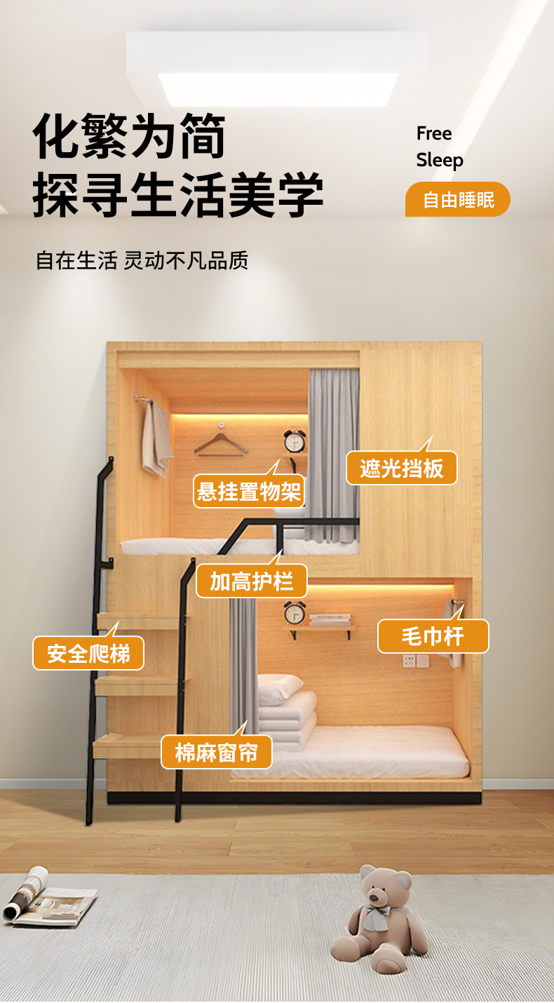 이층 침대 공간 캡슐 침대 학교 기숙사 아파트 침대 유스 호스텔 비 간섭 높고 낮은 침대