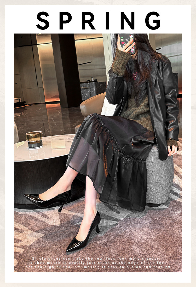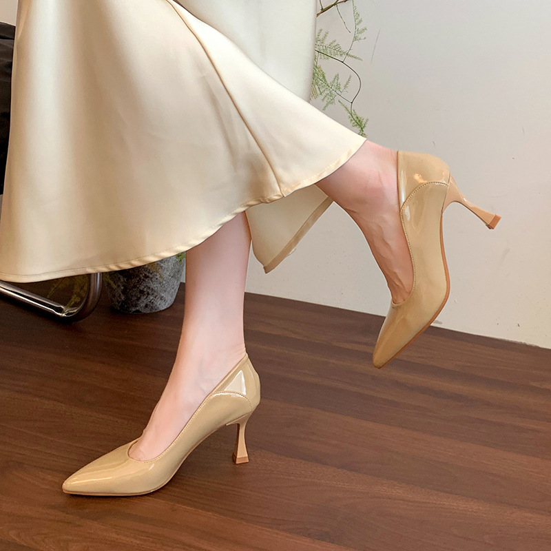 0337 전문 기질 얕은 입 신발 특허 가죽 프렌치 7CM 넓은 플러스 사이즈 여성용 신발스토어 가기