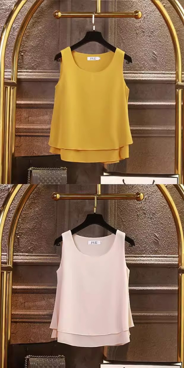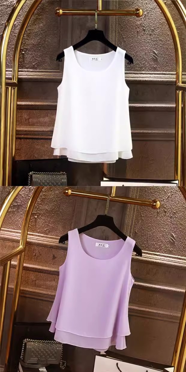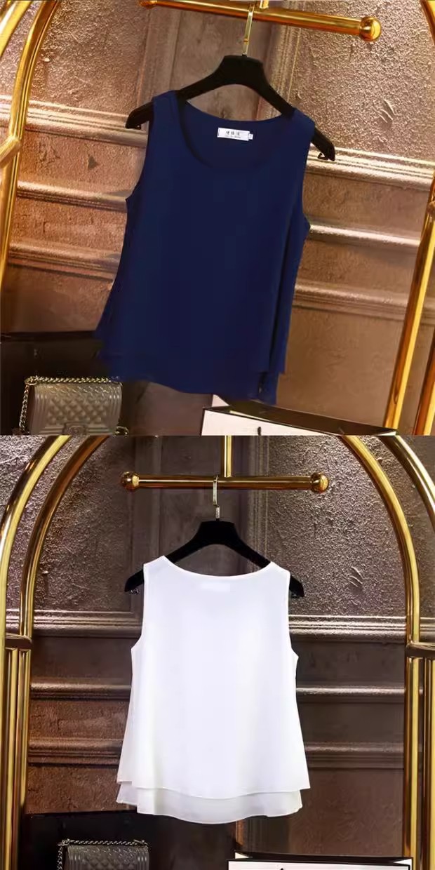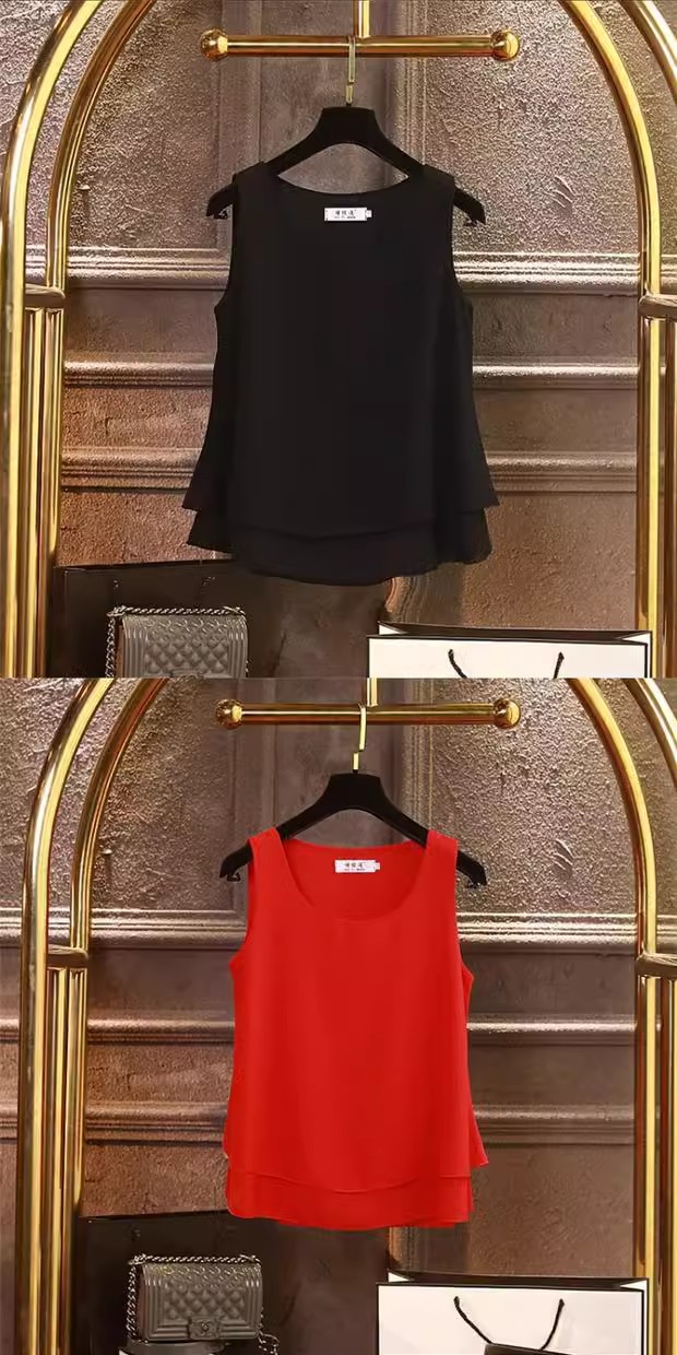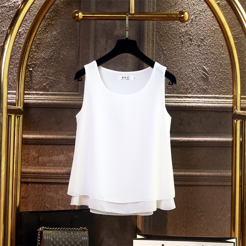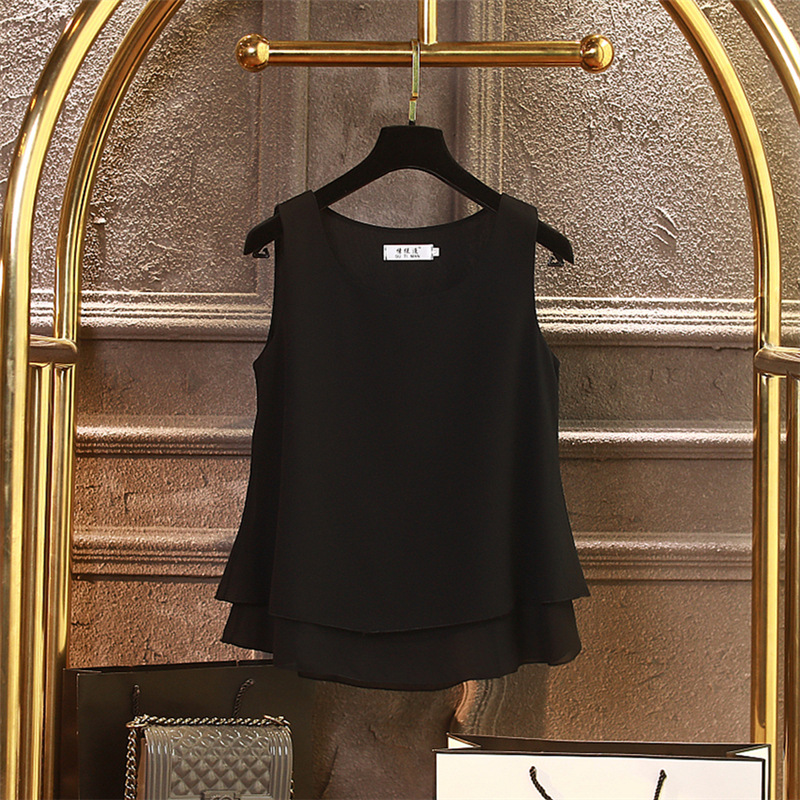 시폰 이너 더블 레이어 캐미솔 블랙 민소매 탑 여성용 아우터웨어 이너웨어 루즈 쉬폰 셔츠스토어 가기