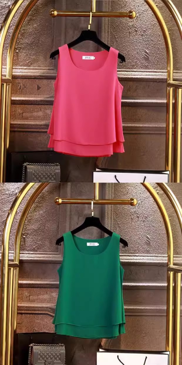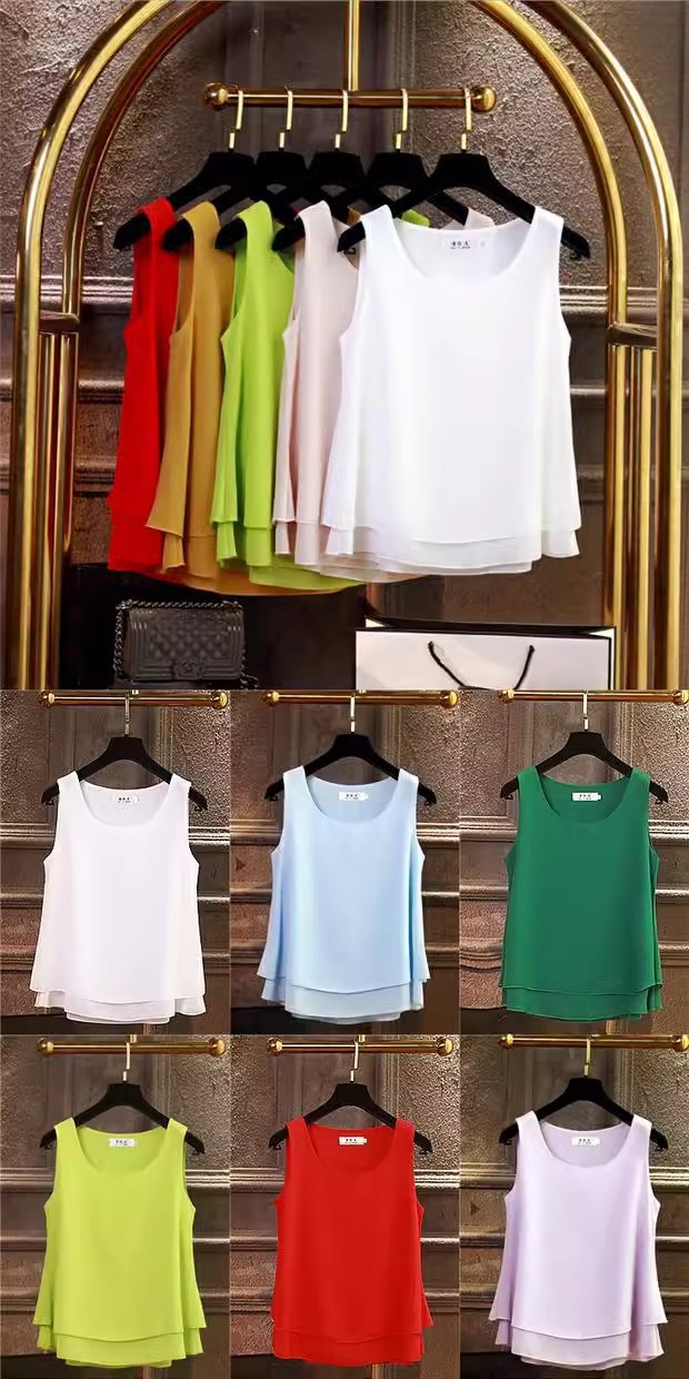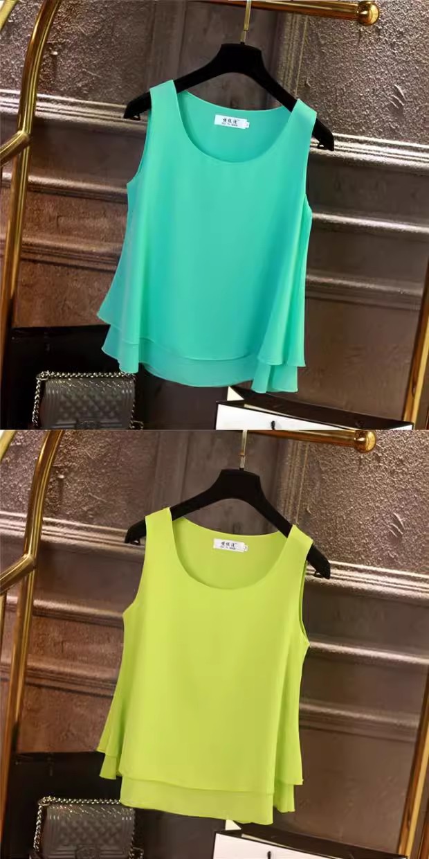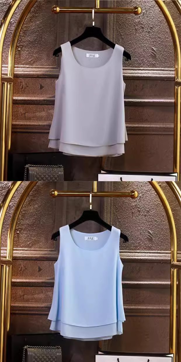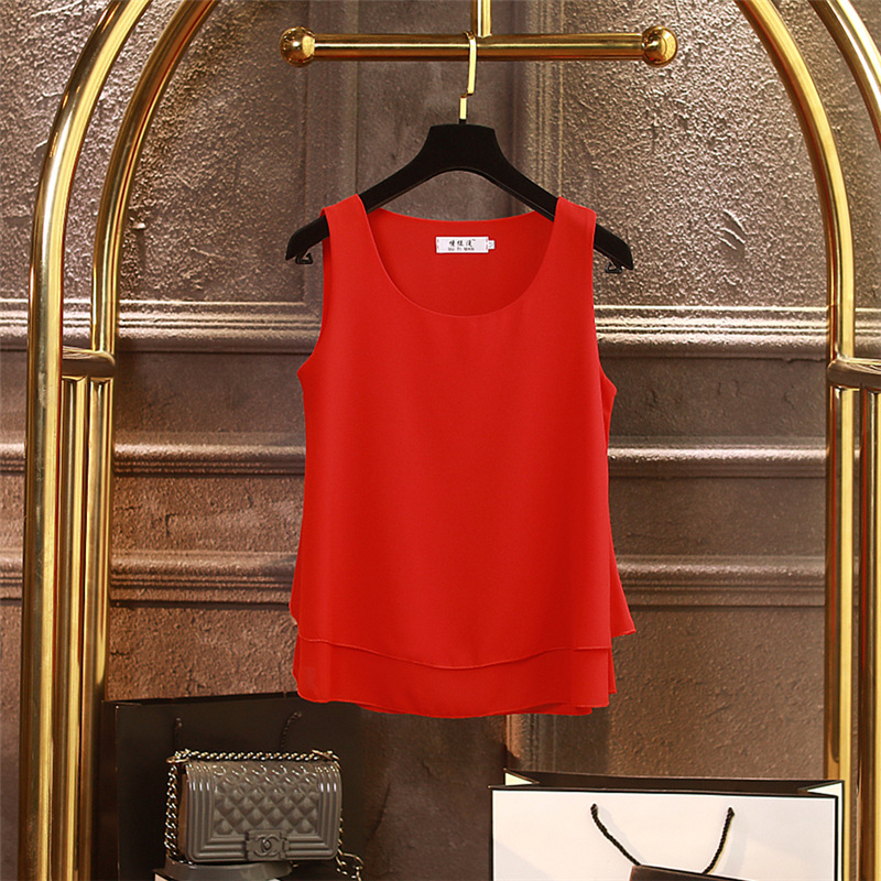 시폰 이너 더블 레이어 캐미솔 블랙 민소매 탑 여성용 아우터웨어 이너웨어 루즈 쉬폰 셔츠스토어 가기