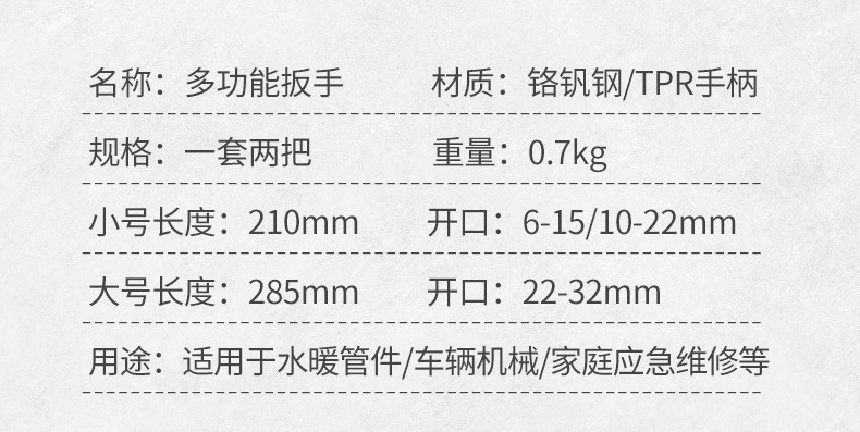 다용도 렌치 도구 세트, 이동식 대형 오픈 렌치, 수리 파이프 펜치, 다기능 퀵 렌치, 라이브 오픈 렌치 M&스토어 가기
