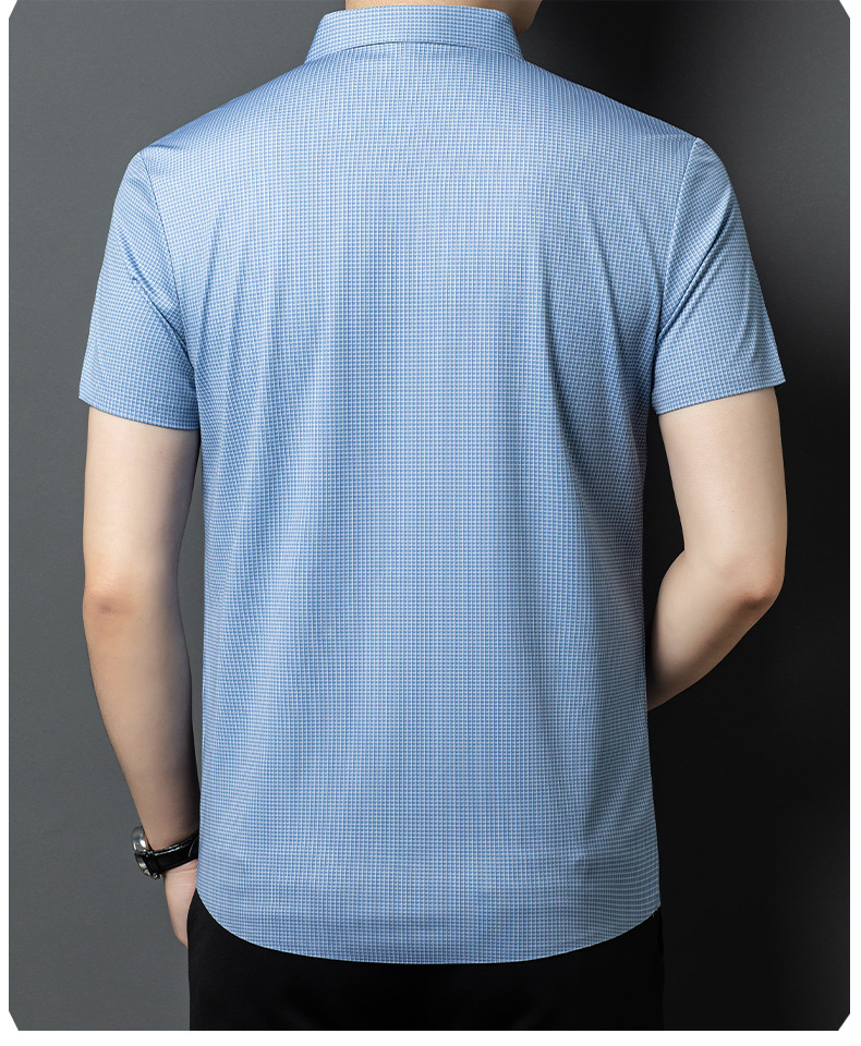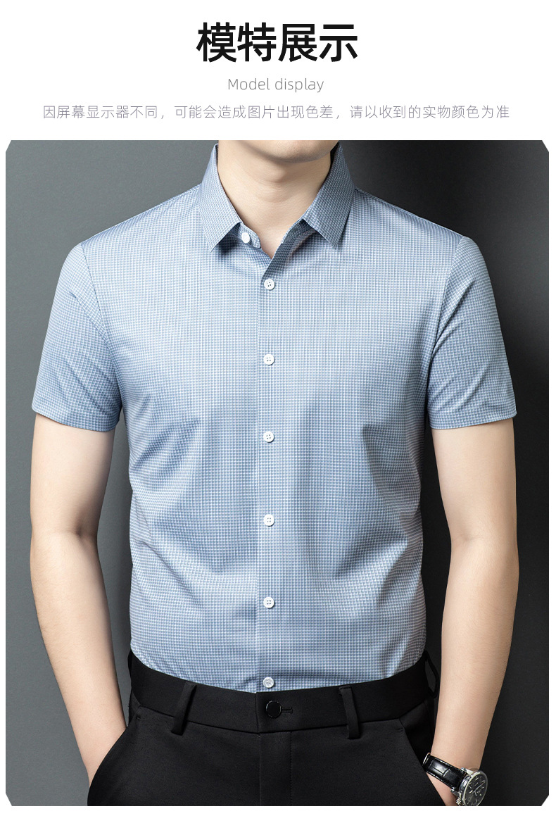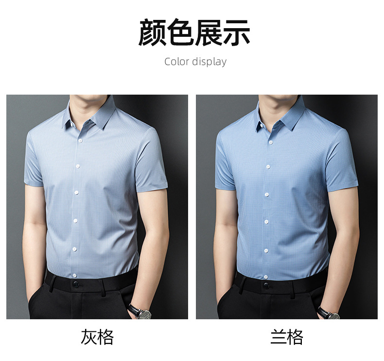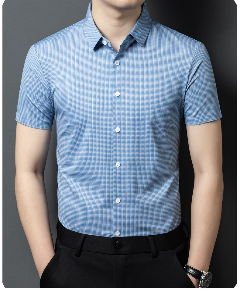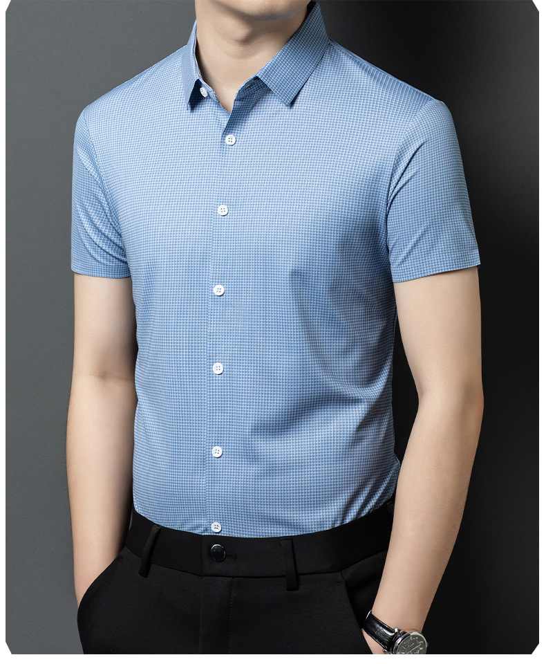 여름 새로운 한국 스타일 반팔 셔츠 패션 남성 비즈니스 캐주얼 단순 올 매치 반팔 셔츠 트렌디 그레이 격자 무늬 남성스토어 가기