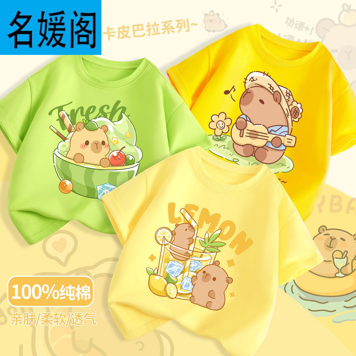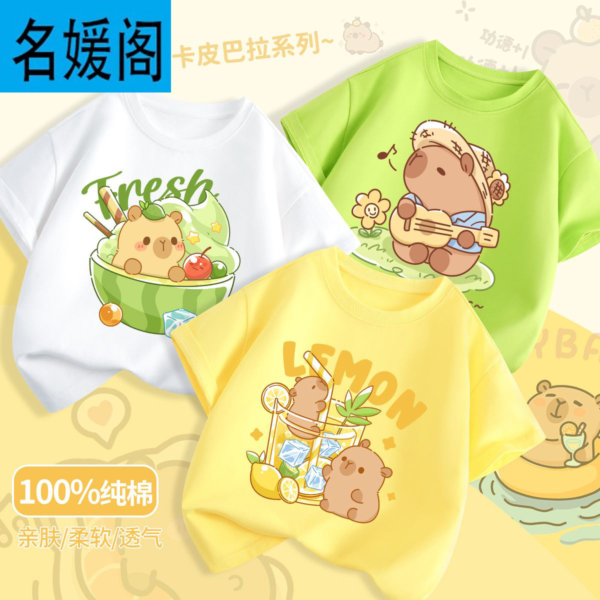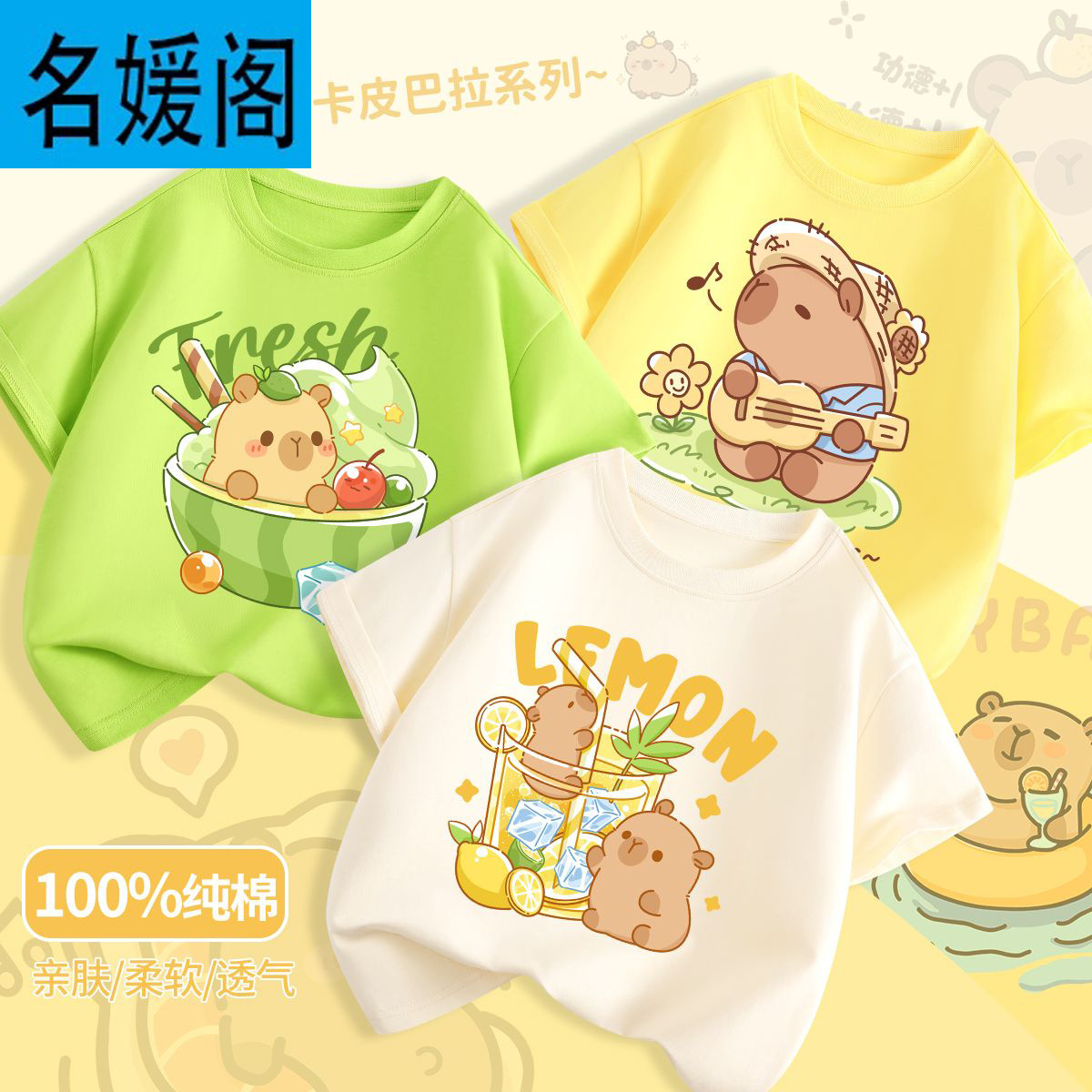 • 과일 그린 라임 돌고래 + 쌀 흰색 카피바라 + 우유 노란색 기타