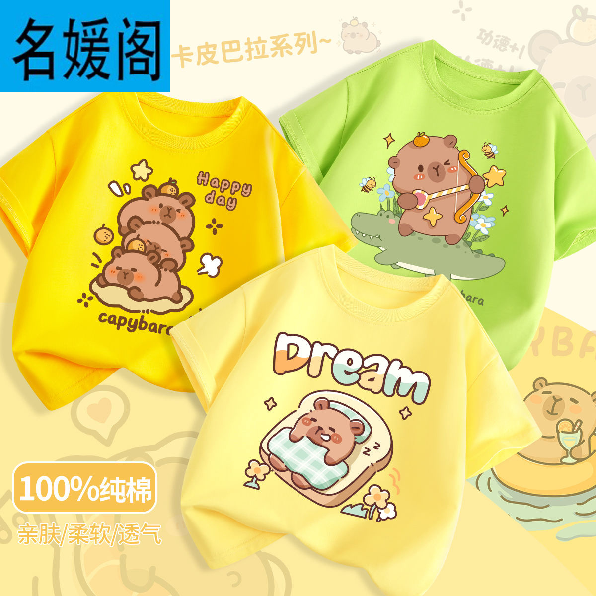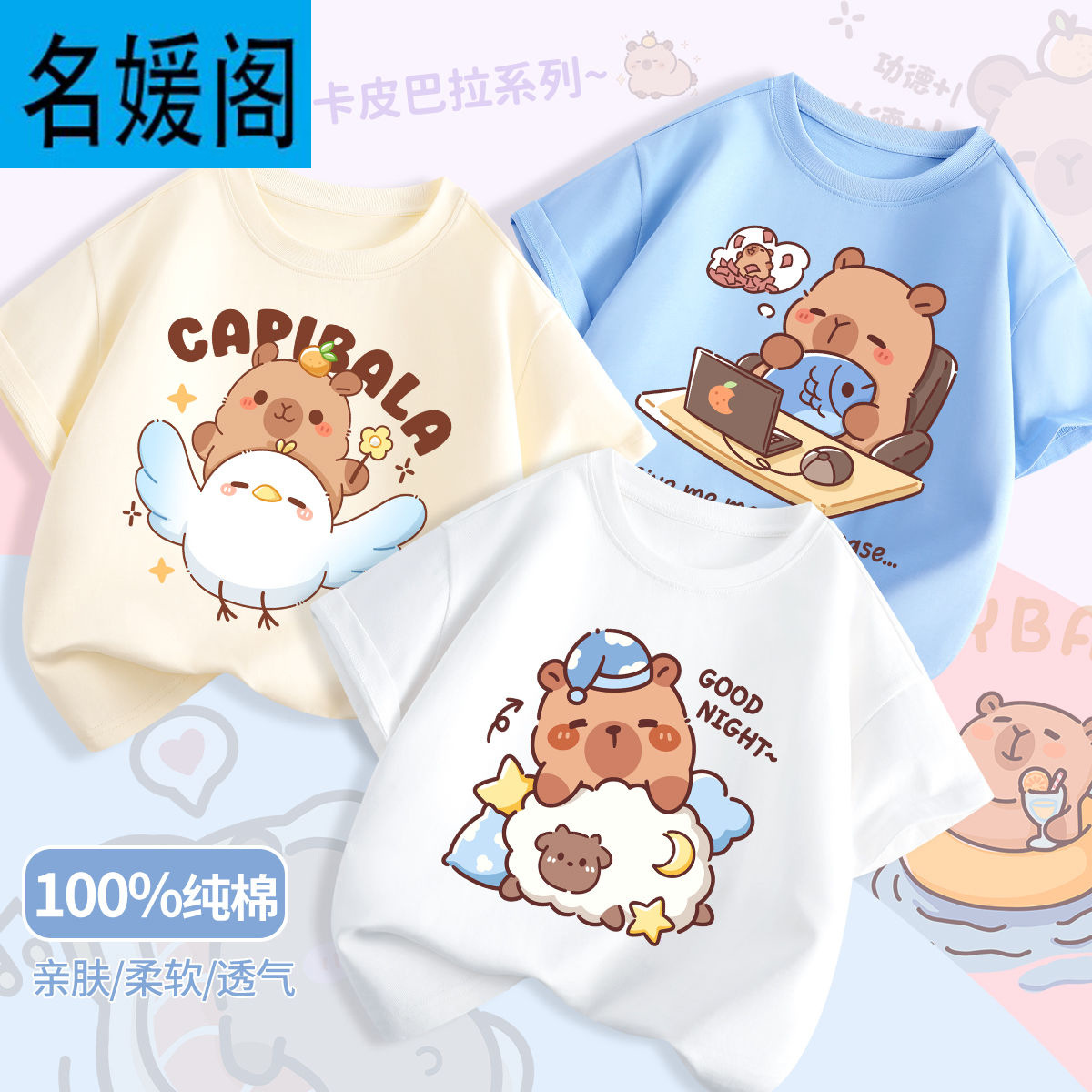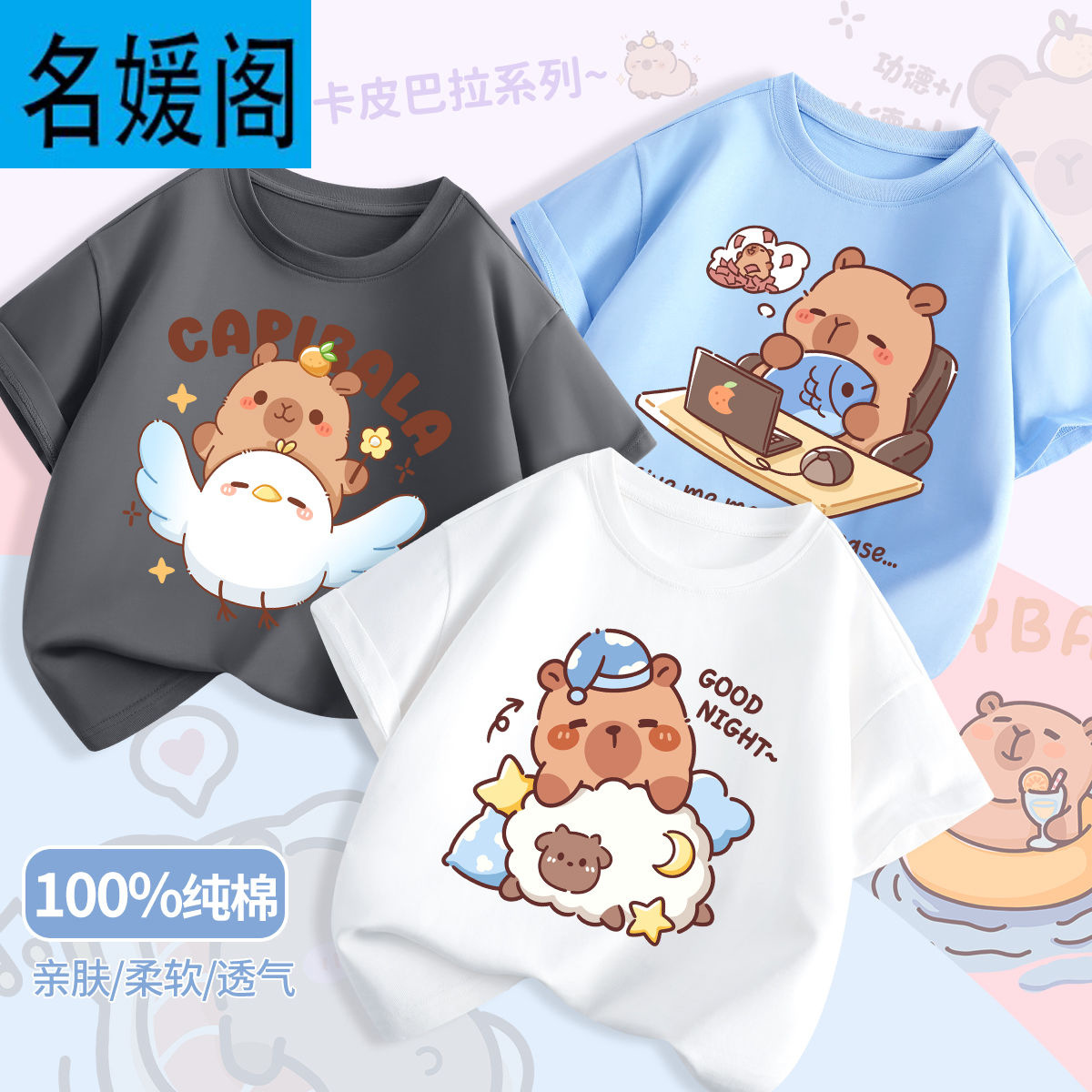 어린이 여름 느슨한 반팔 새로운 Kapi Barakatong 소년 코튼 티셔츠 유행 나는 세련된 아기 옷스토어 가기