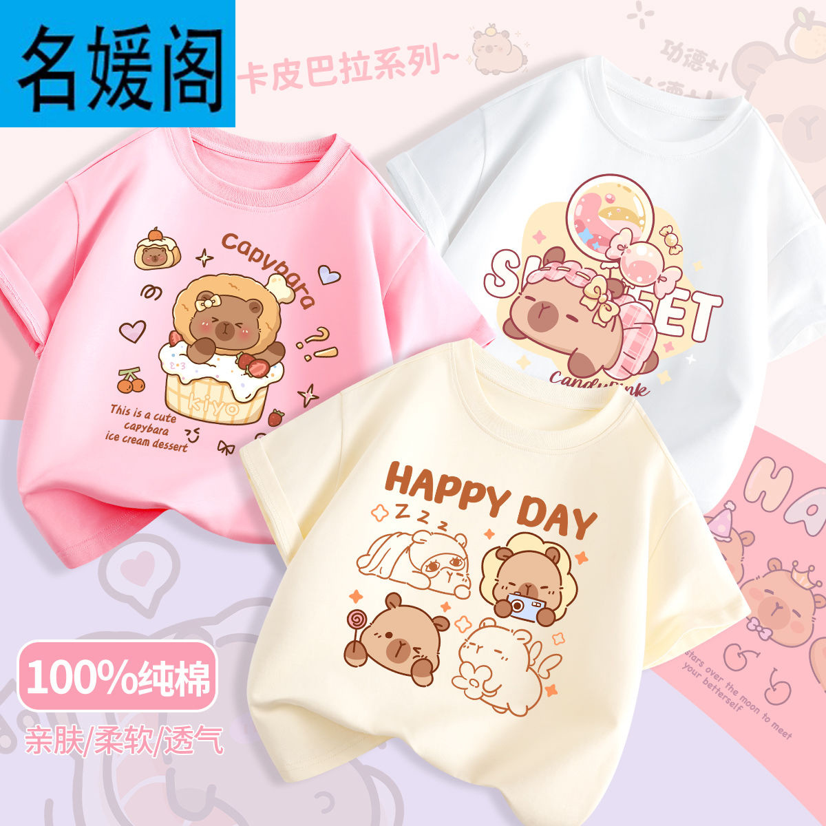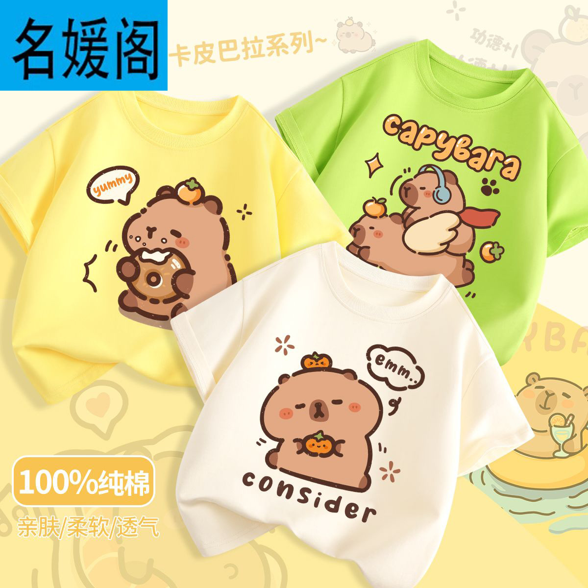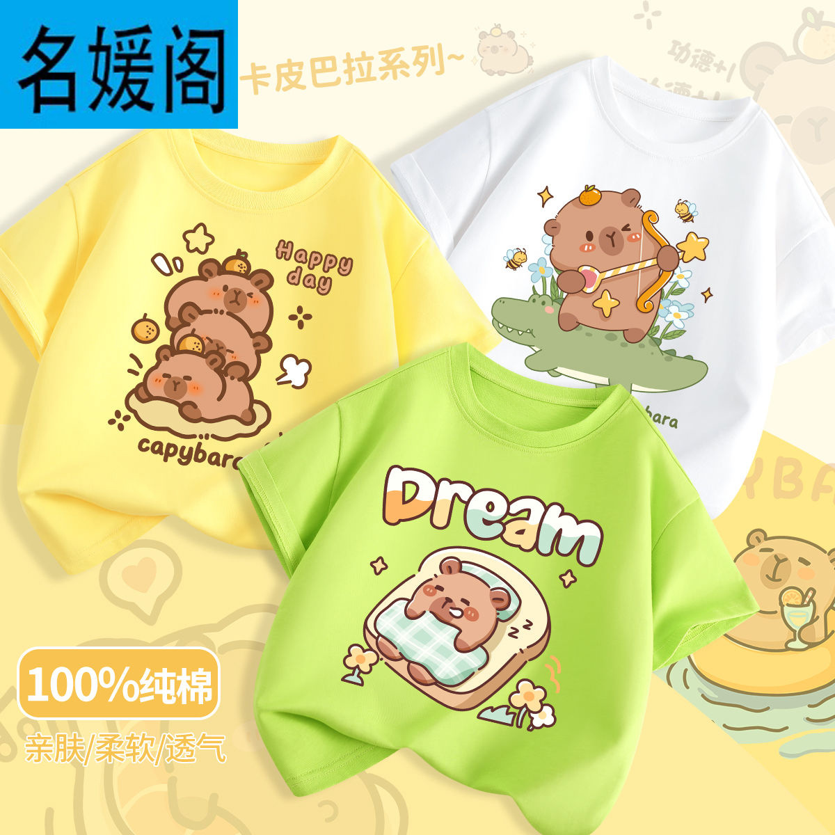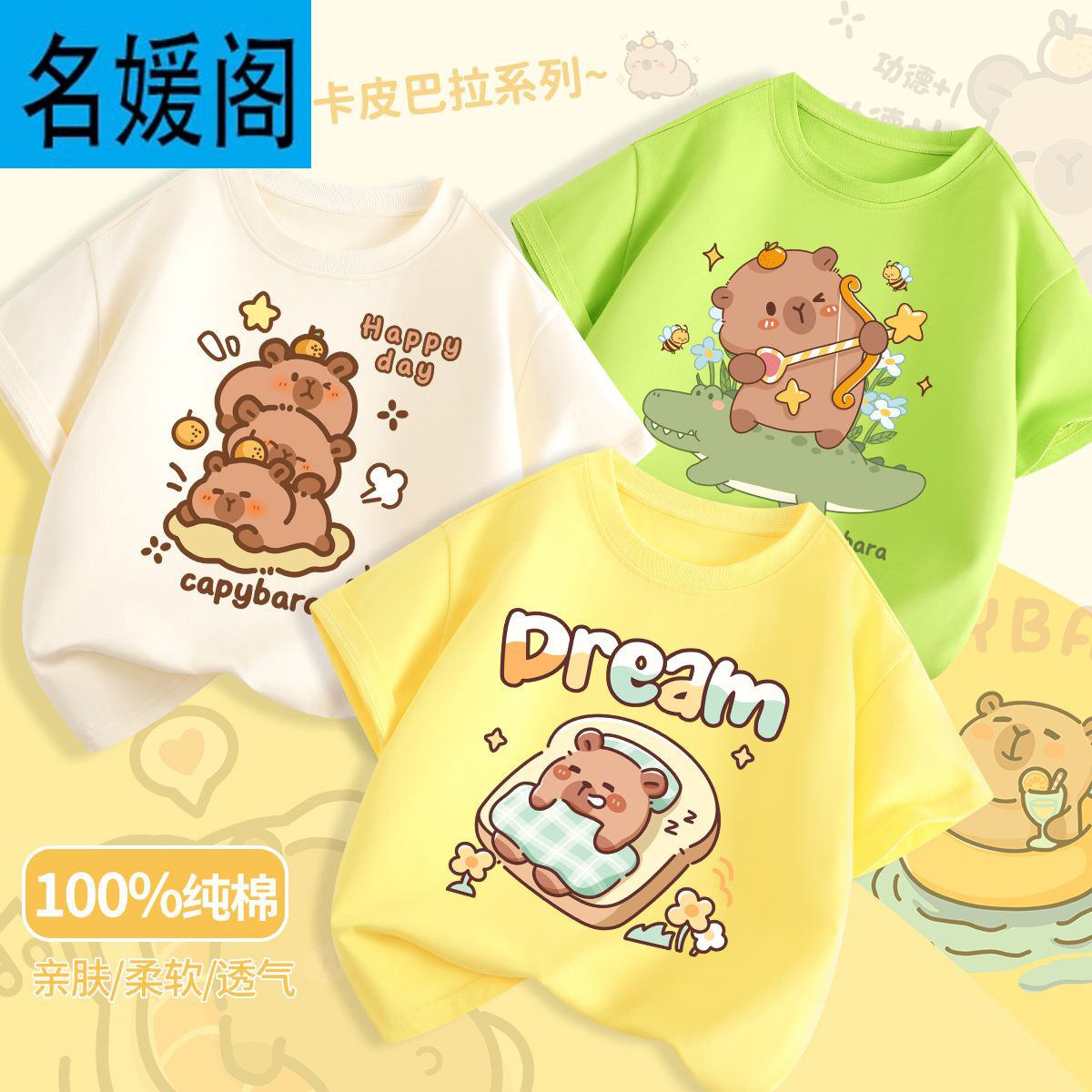 어린이 여름 느슨한 반팔 새로운 Kapi Barakatong 소년 코튼 티셔츠 유행 나는 세련된 아기 옷스토어 가기