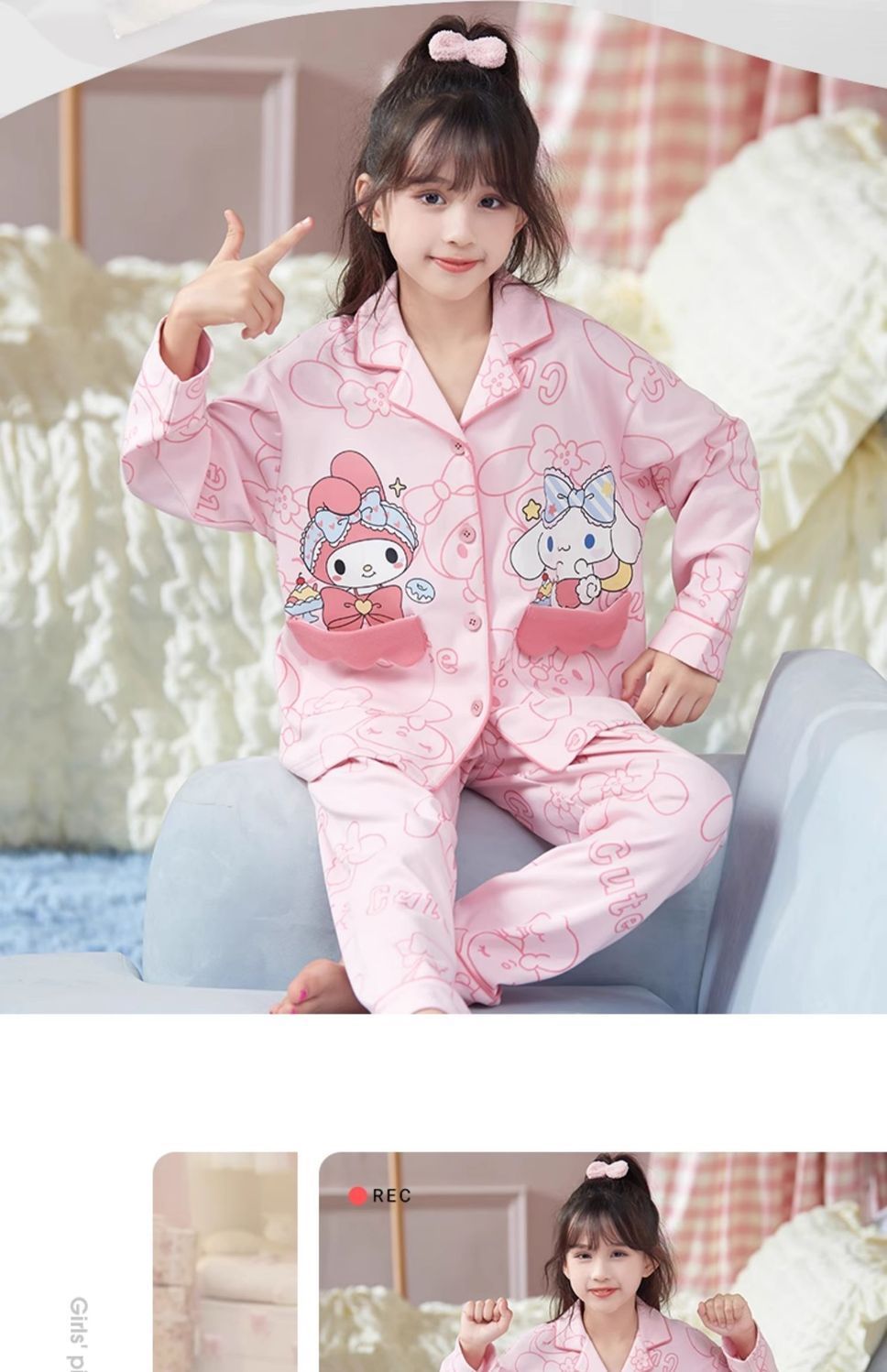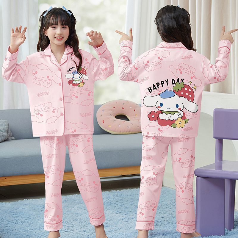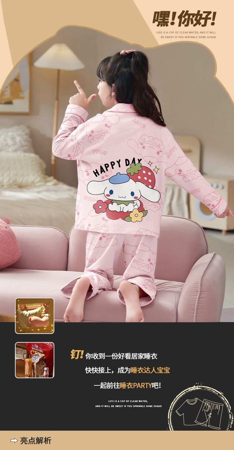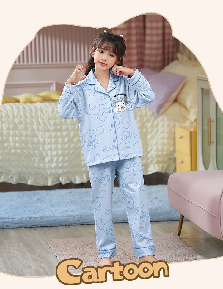 여아 잠옷, 가정복, 봄, 가을 잠옷, 어린이 계피 개 크로스보더 만화, 큰 어린이 카디건, 긴팔 바지 세트스토어 가기