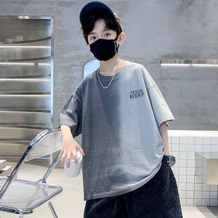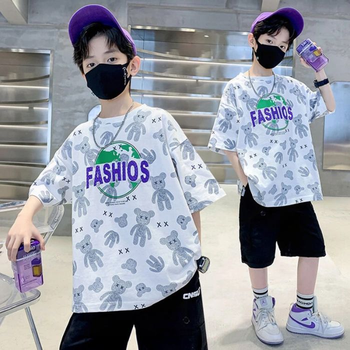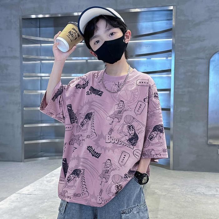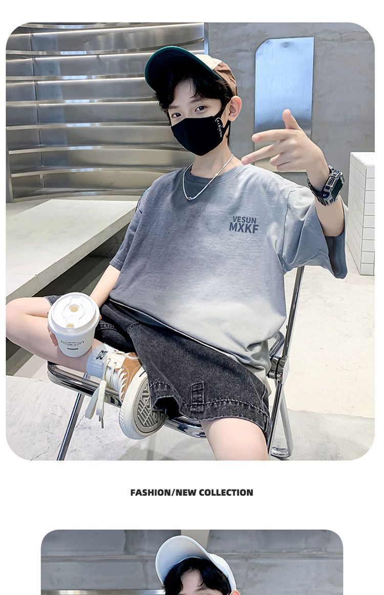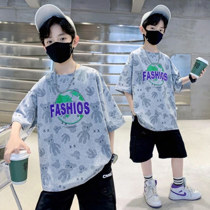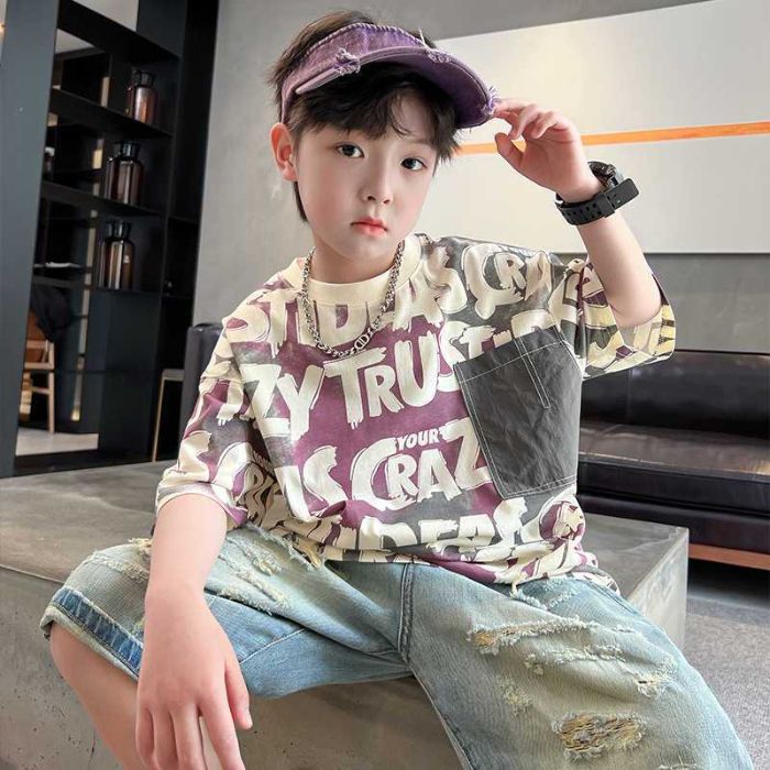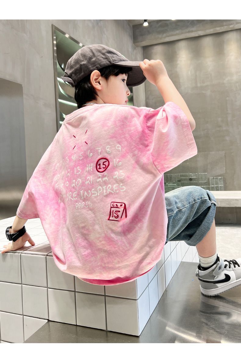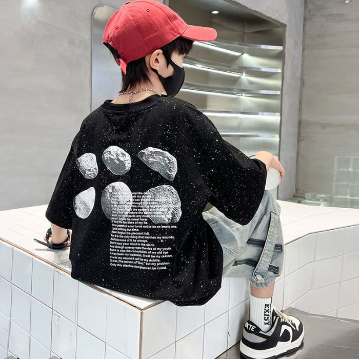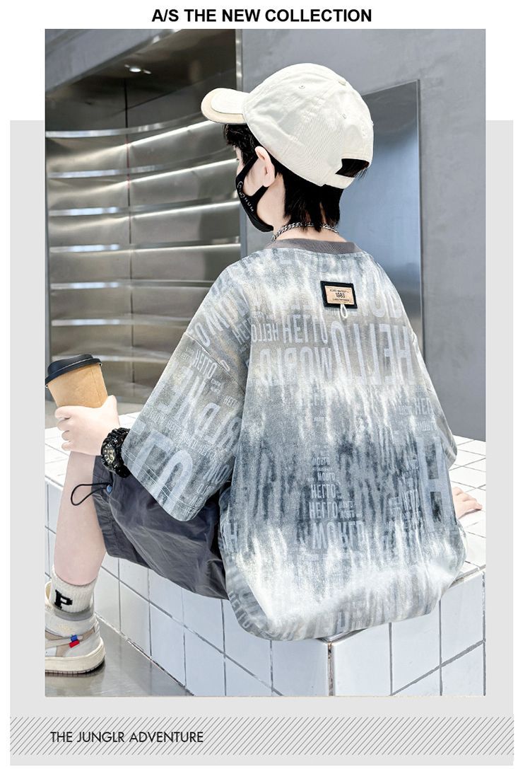 아동용 티셔츠 2025 한국식 어린 소년 패션 팬더 스트라이프 탑 소년 얇은 루즈 캐주얼 티셔츠 공장스토어 가기