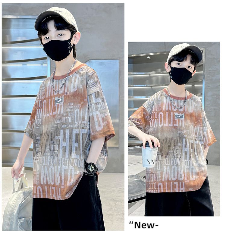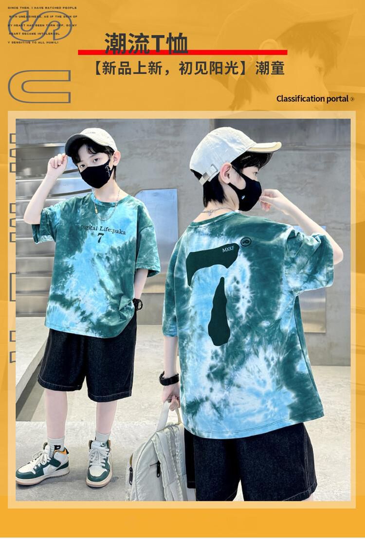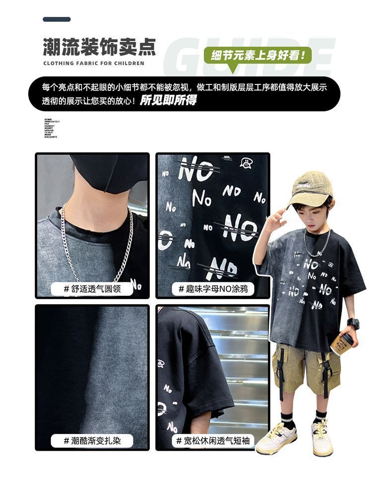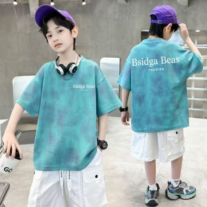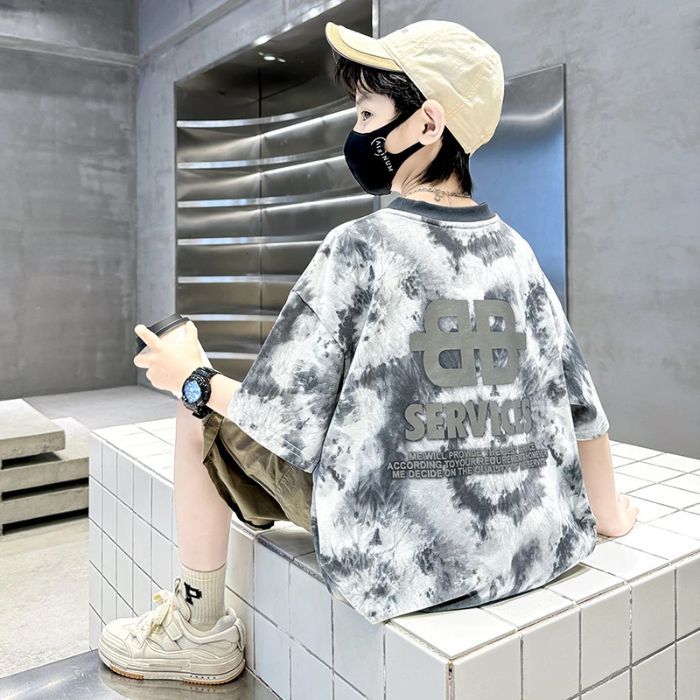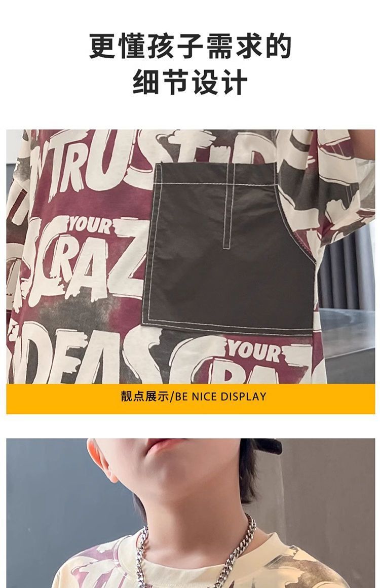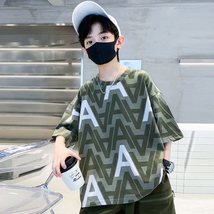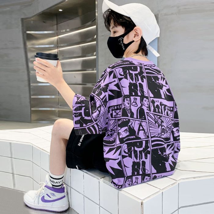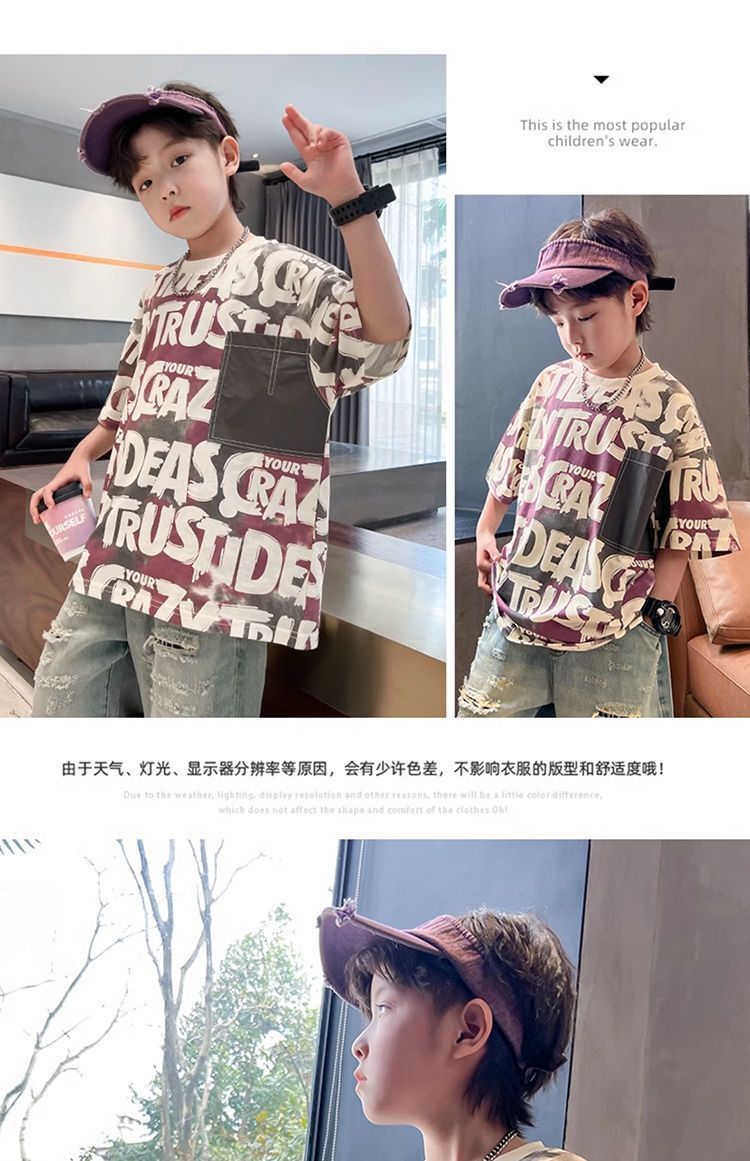 아동용 티셔츠 2025 한국식 어린 소년 패션 팬더 스트라이프 탑 소년 얇은 루즈 캐주얼 티셔츠 공장스토어 가기