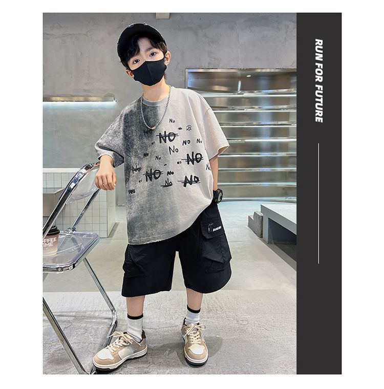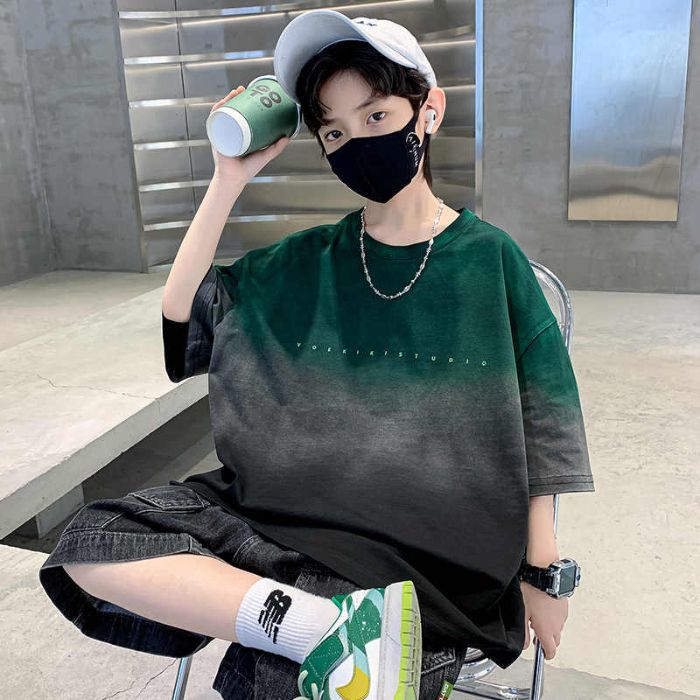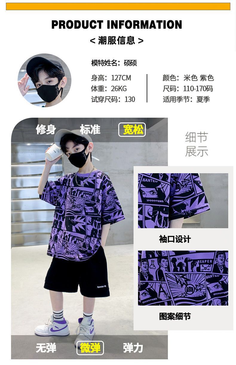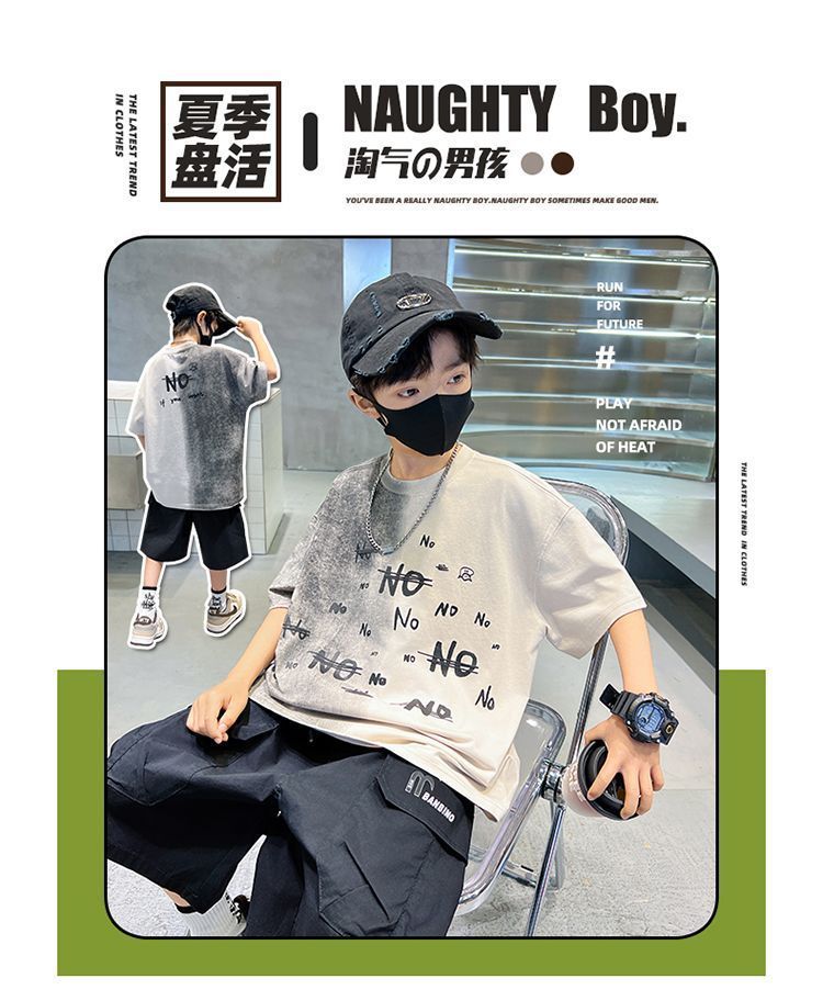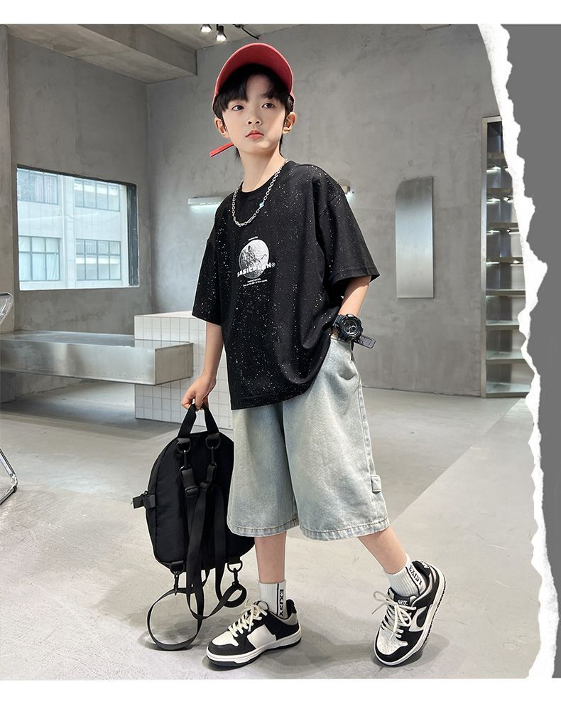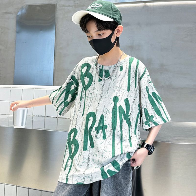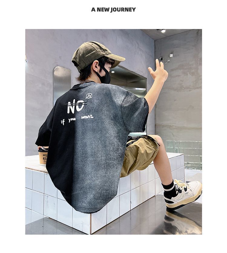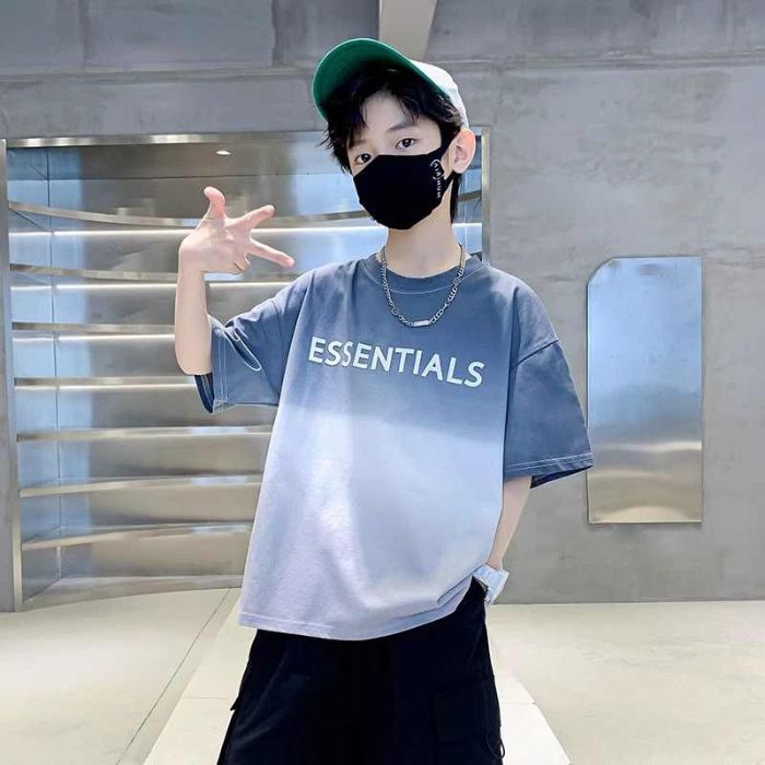 아동용 티셔츠 2025 한국식 어린 소년 패션 팬더 스트라이프 탑 소년 얇은 루즈 캐주얼 티셔츠 공장스토어 가기