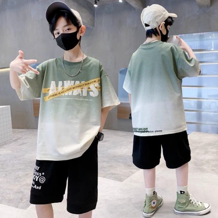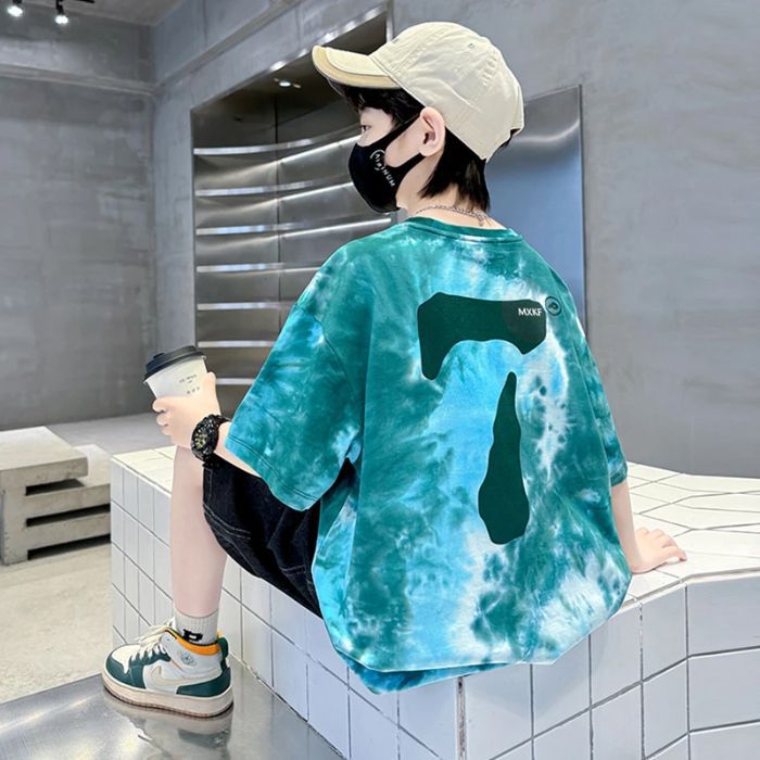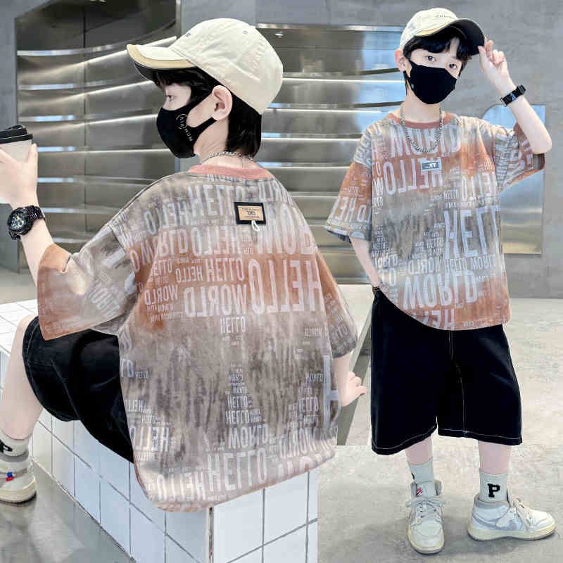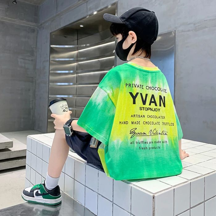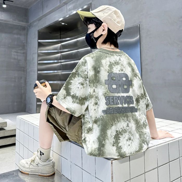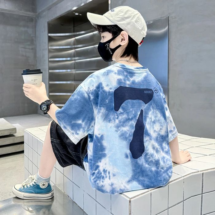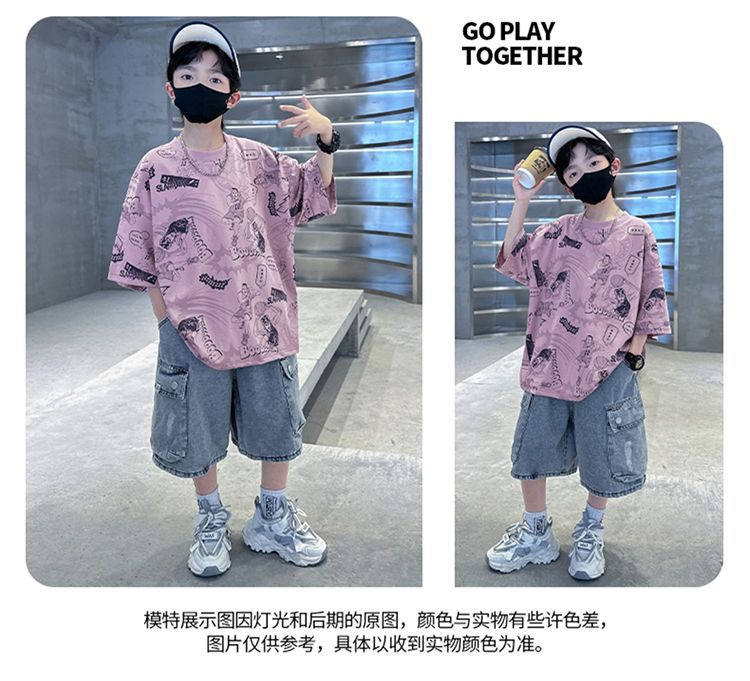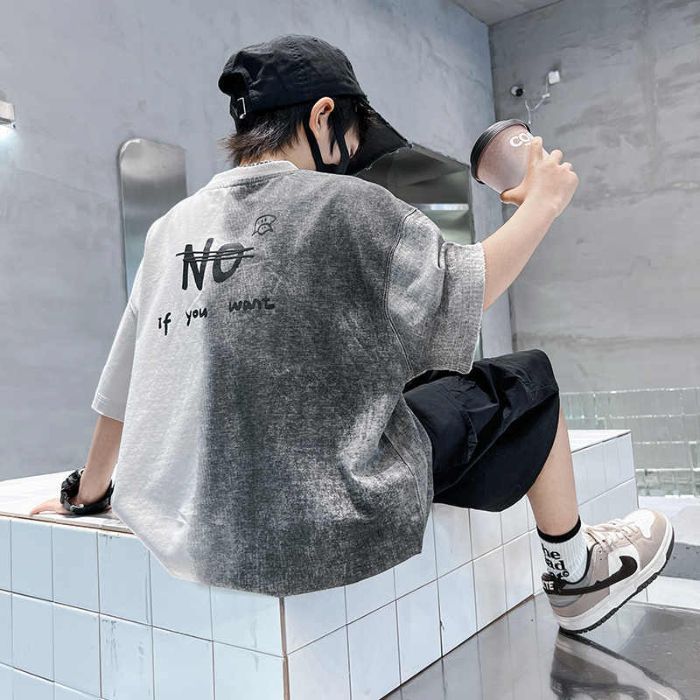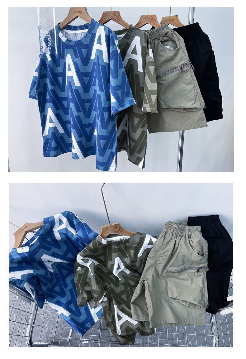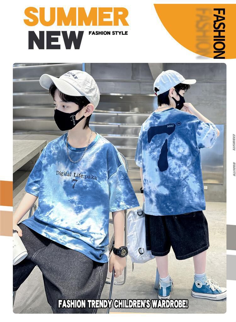 아동용 티셔츠 2025 한국식 어린 소년 패션 팬더 스트라이프 탑 소년 얇은 루즈 캐주얼 티셔츠 공장스토어 가기