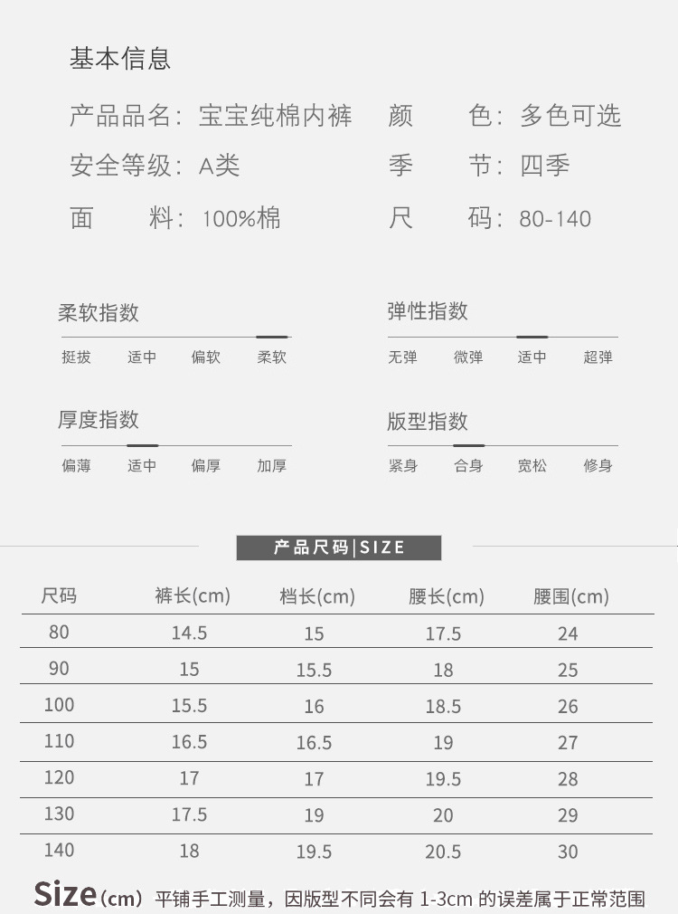 유아 및 아동 속옷, A급 순면, 여아, 베이비 사각팬티, 남아용 바닥반바지, 중대형 아동 사각팬티