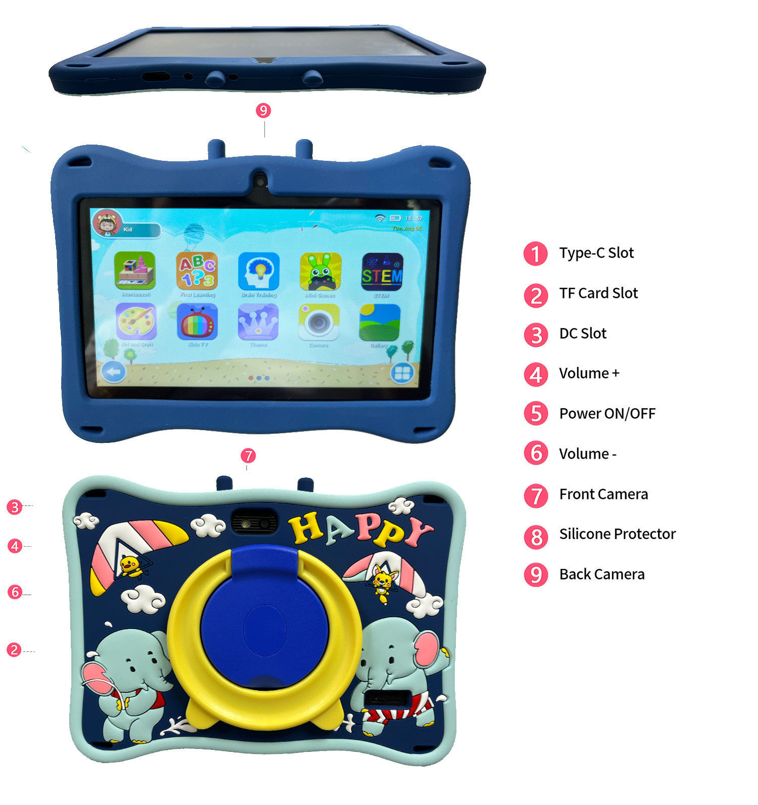 어린이 태블릿 PC 7 인치 안드로이드 iwawa 지능형 학습 기계 게임 고화질 스크린 국경 폭발 교육 태블릿