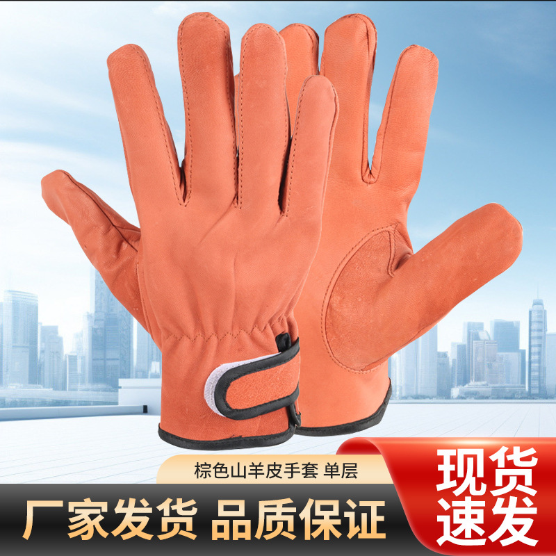 브라운 염소 가죽 장갑 용접공 화상 방지 단층 장갑 노동 보호 단열 통기성 장갑 제조업체 국경 간 재고 있음