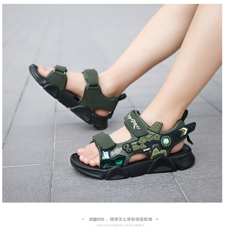 2025 새로운 여름 중소 어린이 소프트 솔 비치 신발 위장 신발 소년 신발 카키 캐주얼 어린이 샌들