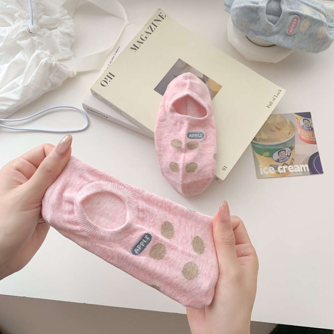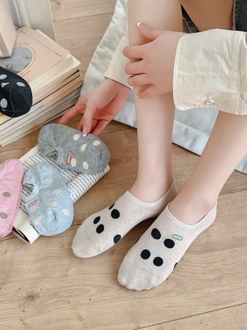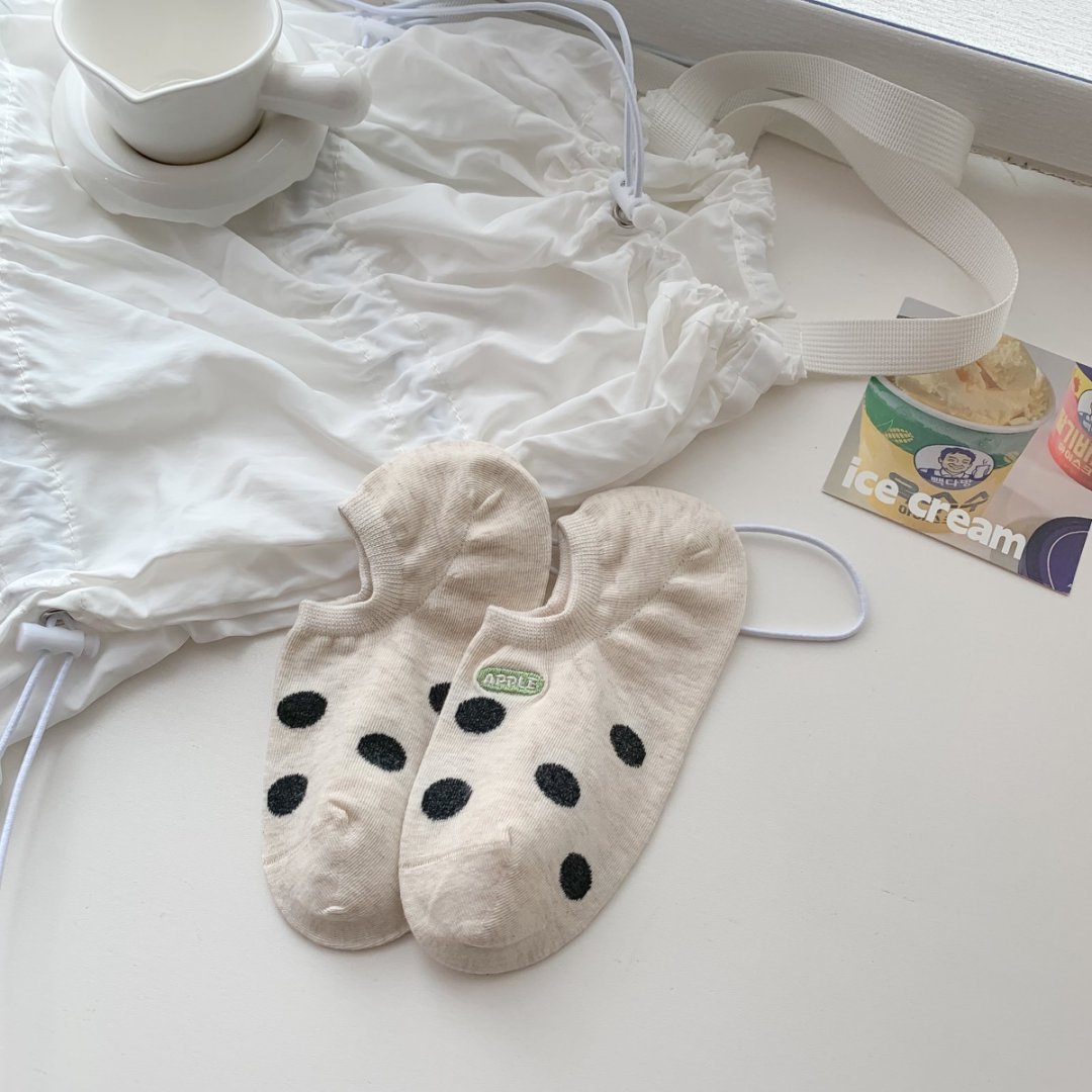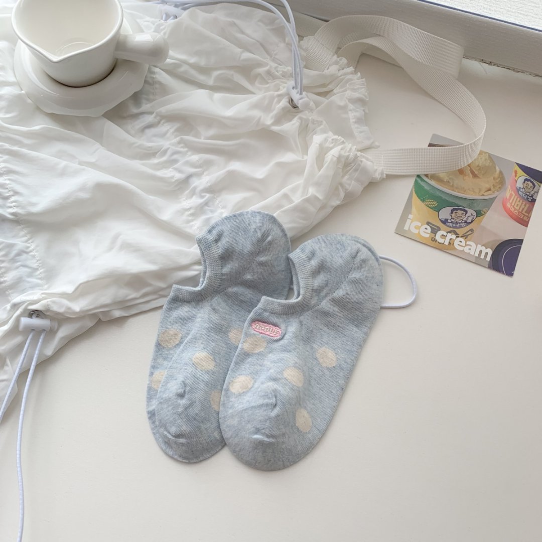 Mekki 새로운 스타일 양말 여성 여름 폴카 도트 빗질 코튼 한국식 미끄럼 보이지 않는 양말 캐주얼 쇼로우 입 통기성 보트 양말스토어 가기