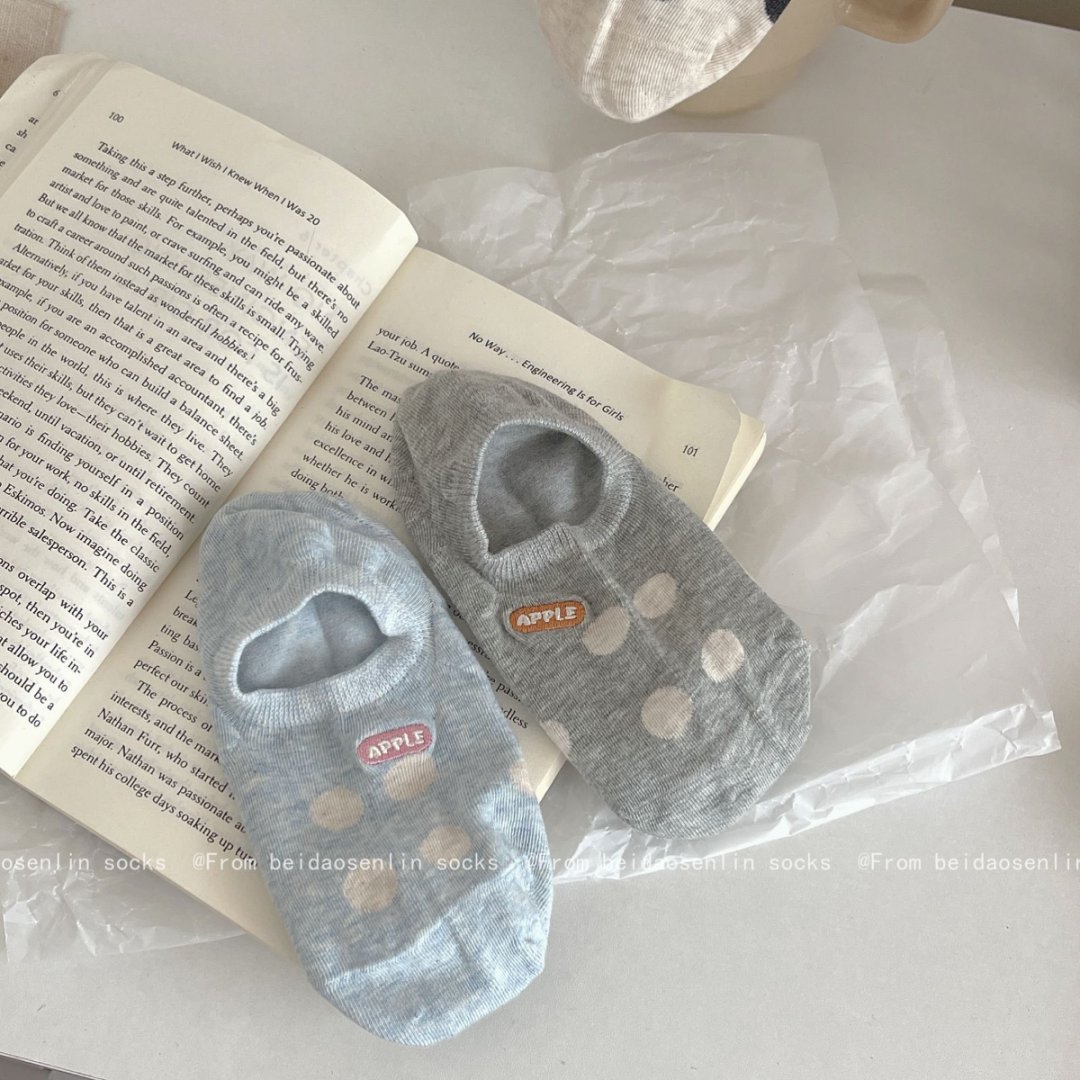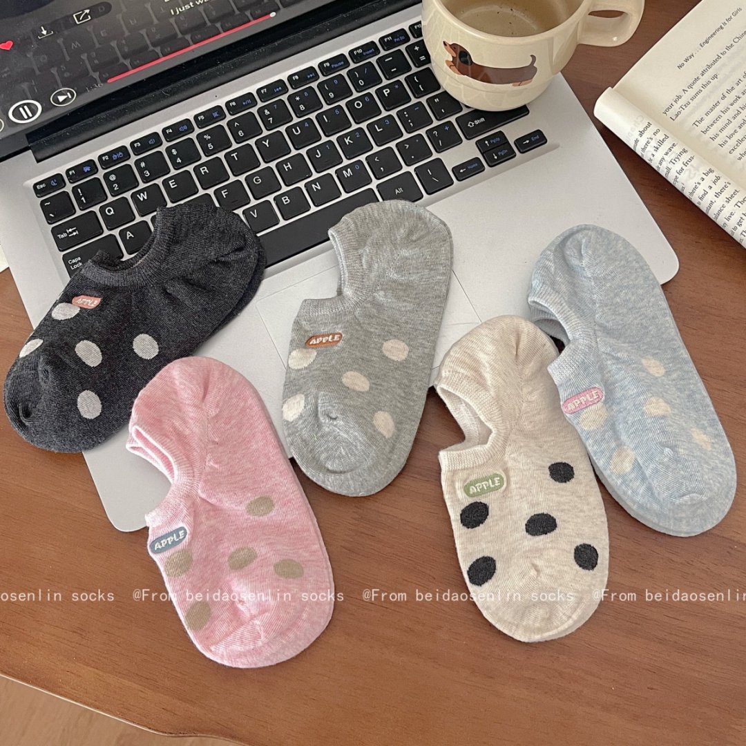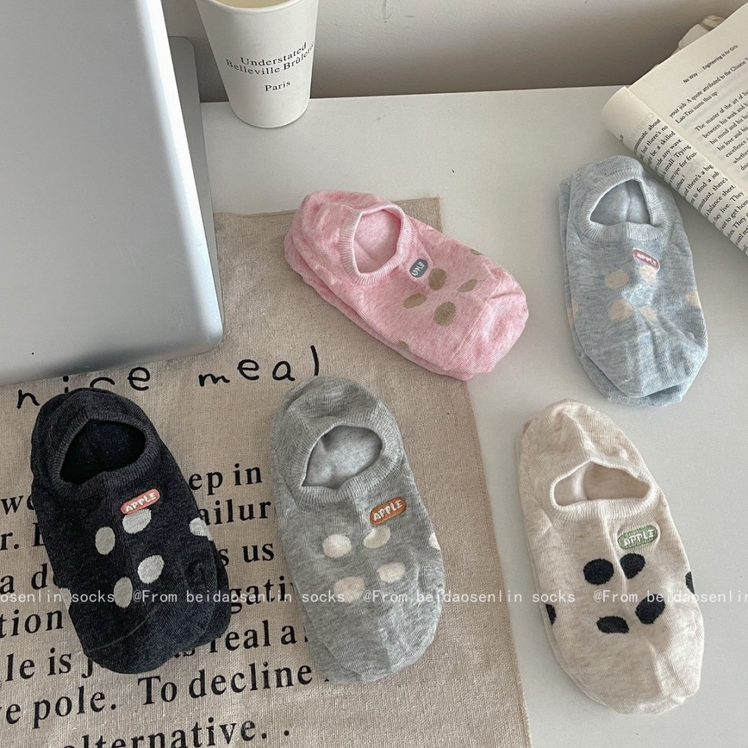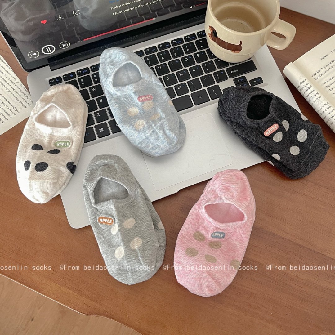 Mekki 새로운 스타일 양말 여성 여름 폴카 도트 빗질 코튼 한국식 미끄럼 보이지 않는 양말 캐주얼 쇼로우 입 통기성 보트 양말스토어 가기