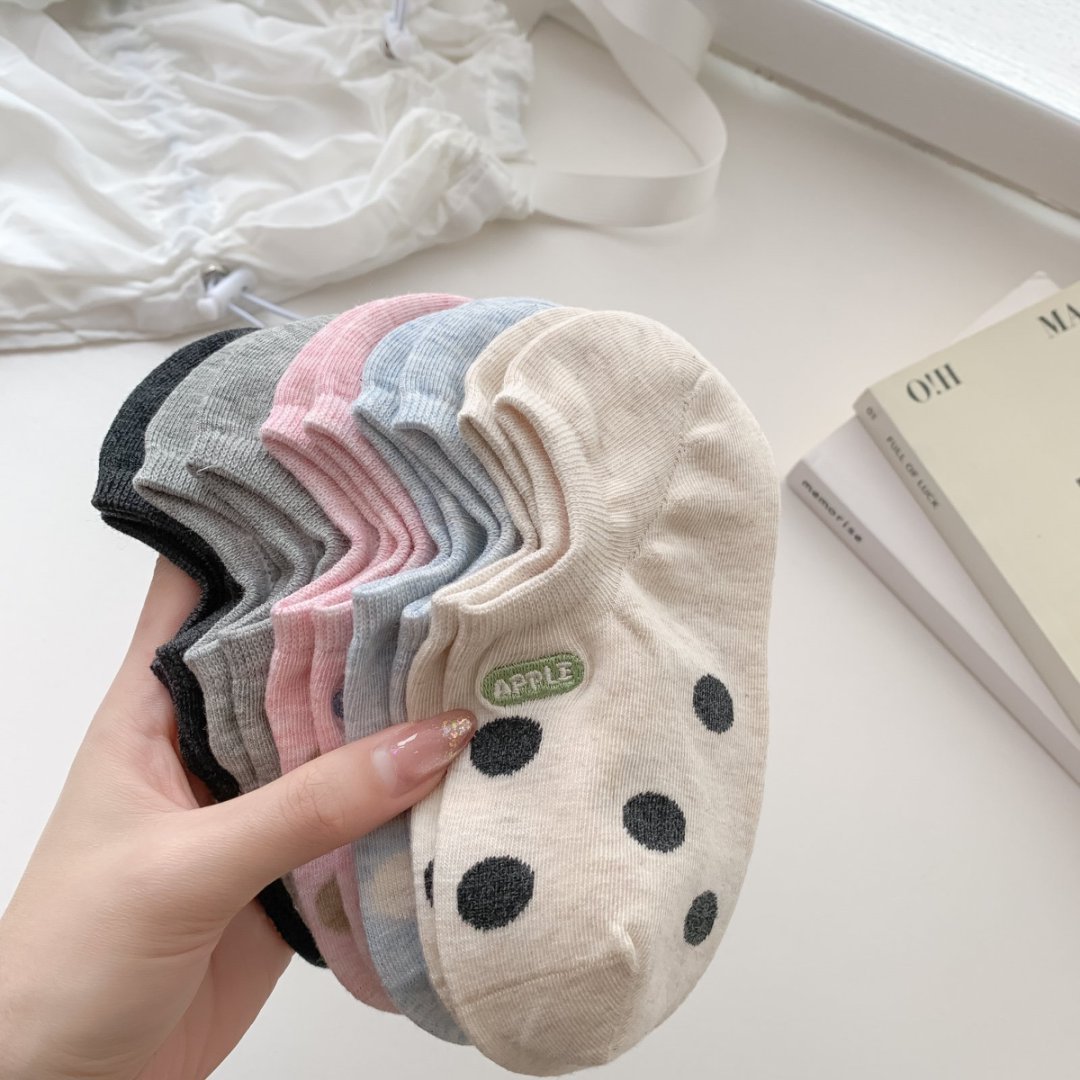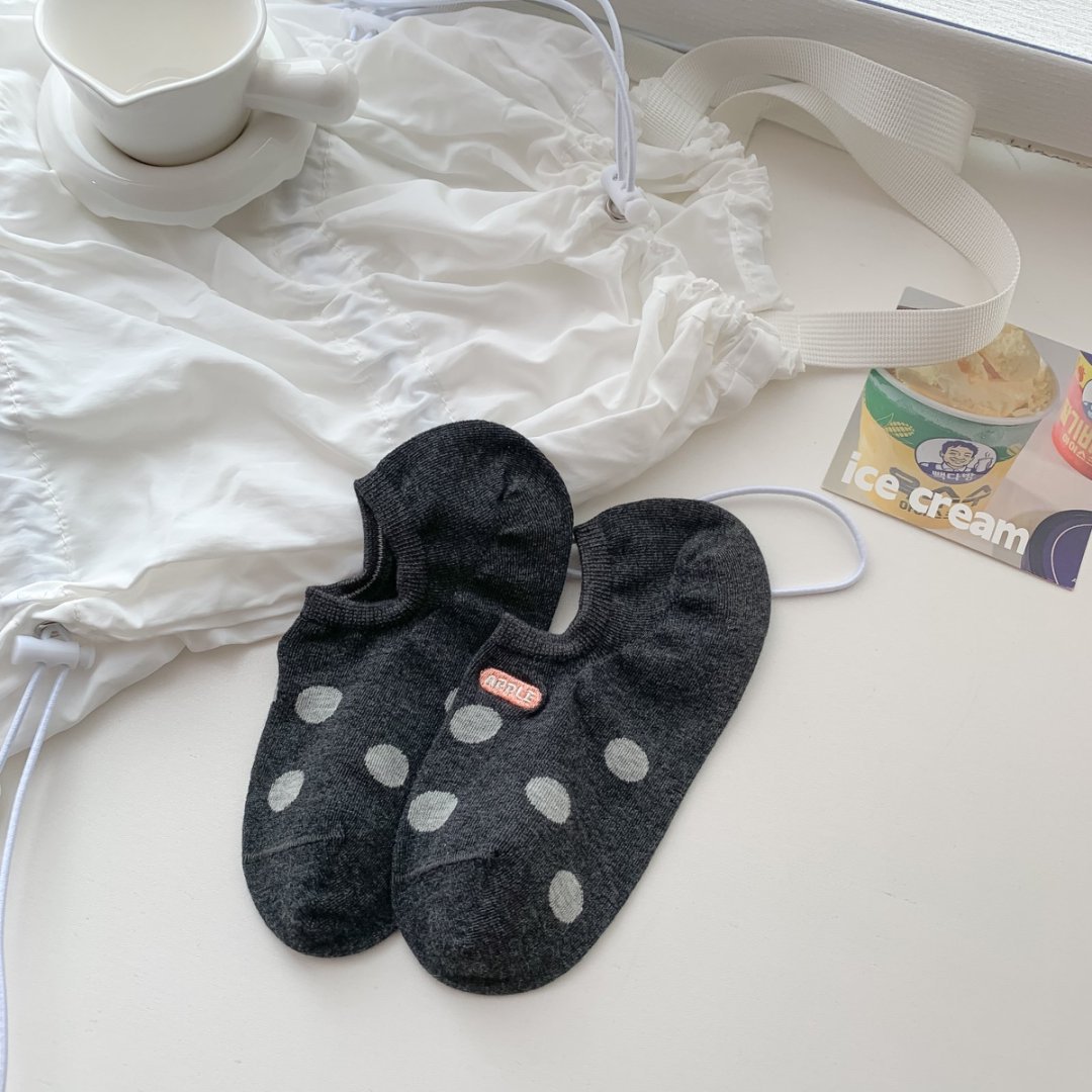 Mekki 새로운 스타일 양말 여성 여름 폴카 도트 빗질 코튼 한국식 미끄럼 보이지 않는 양말 캐주얼 쇼로우 입 통기성 보트 양말