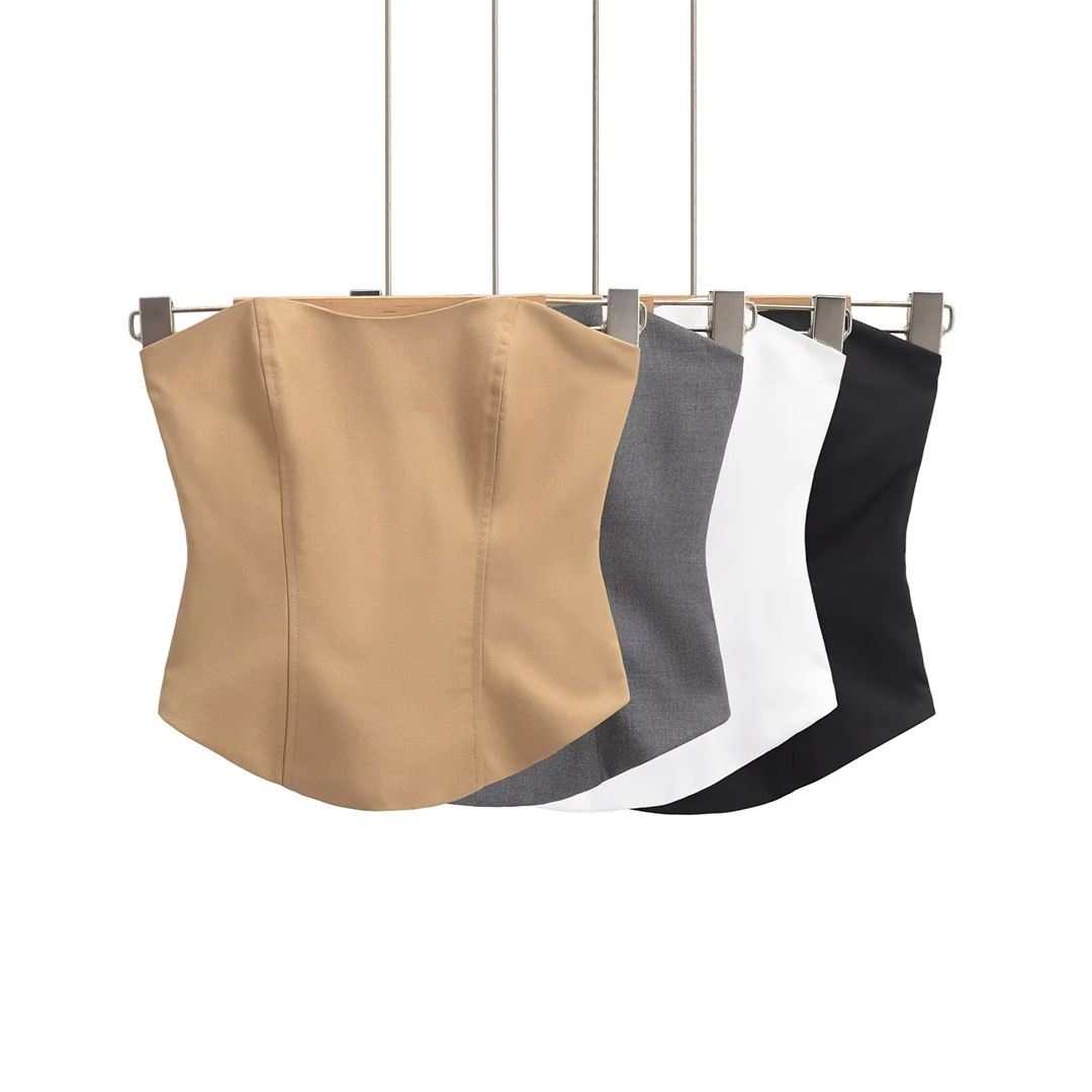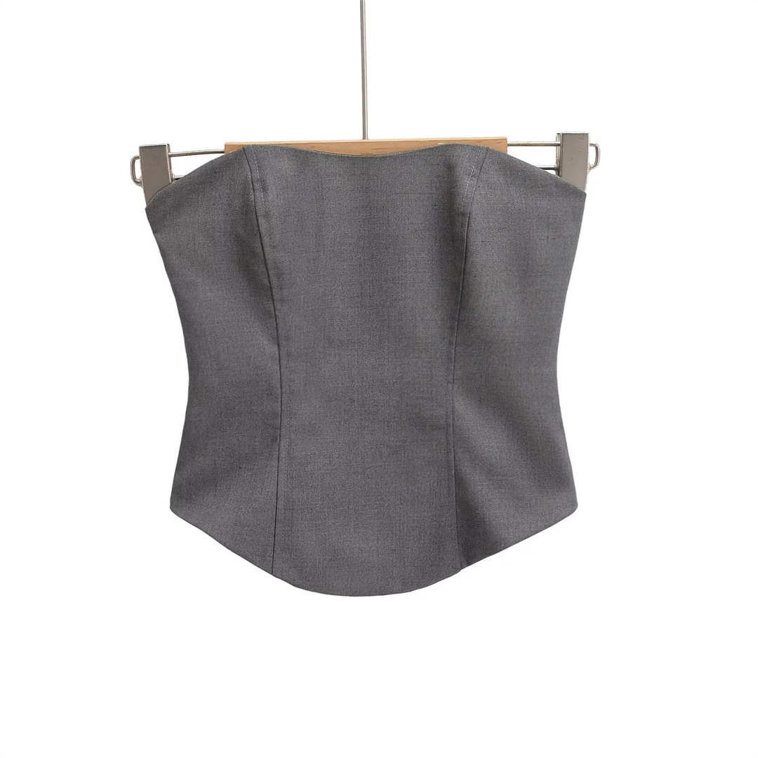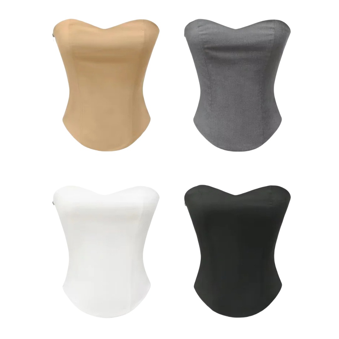 섹시한 가슴 감싸는 입체 피쉬본 코르셋 튜브탑 슬림핏 조끼 로우웨이스트 노출방지 슈트 스커트 슈트 솔리드 컬러스토어 가기