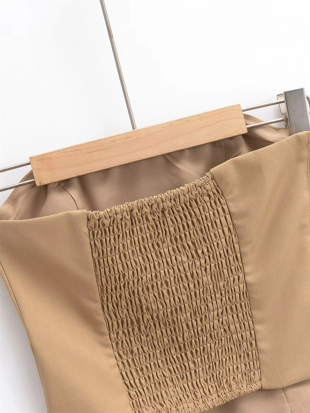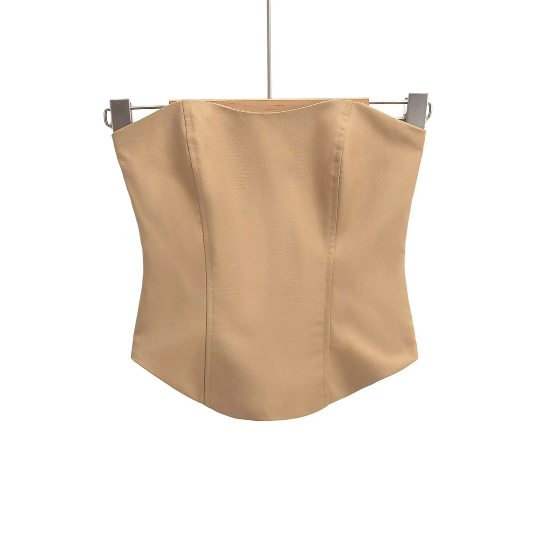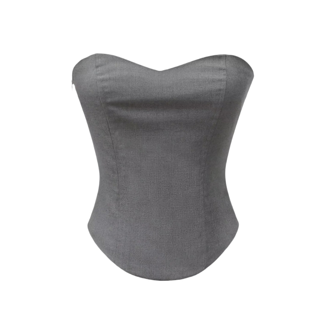 섹시한 가슴 감싸는 입체 피쉬본 코르셋 튜브탑 슬림핏 조끼 로우웨이스트 노출방지 슈트 스커트 슈트 솔리드 컬러스토어 가기