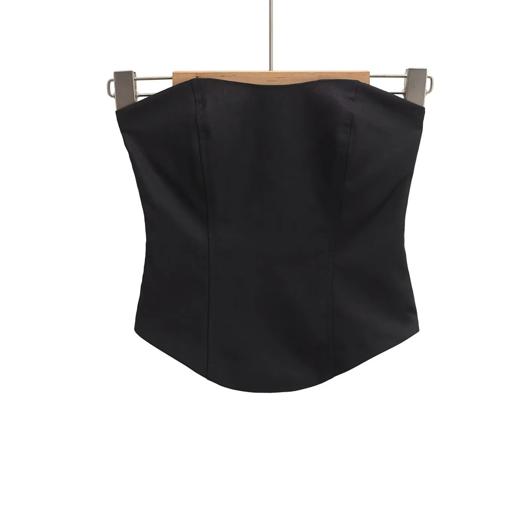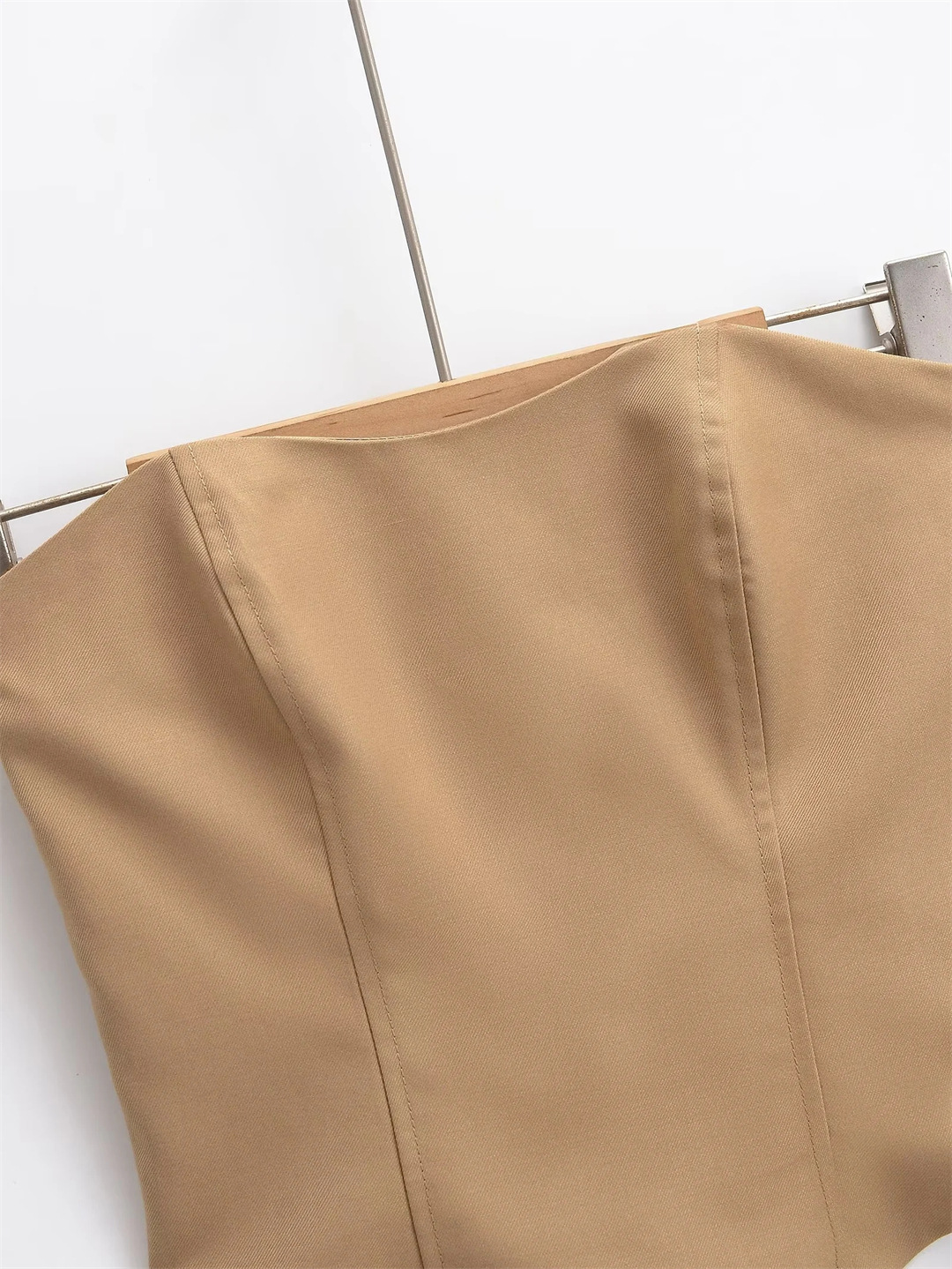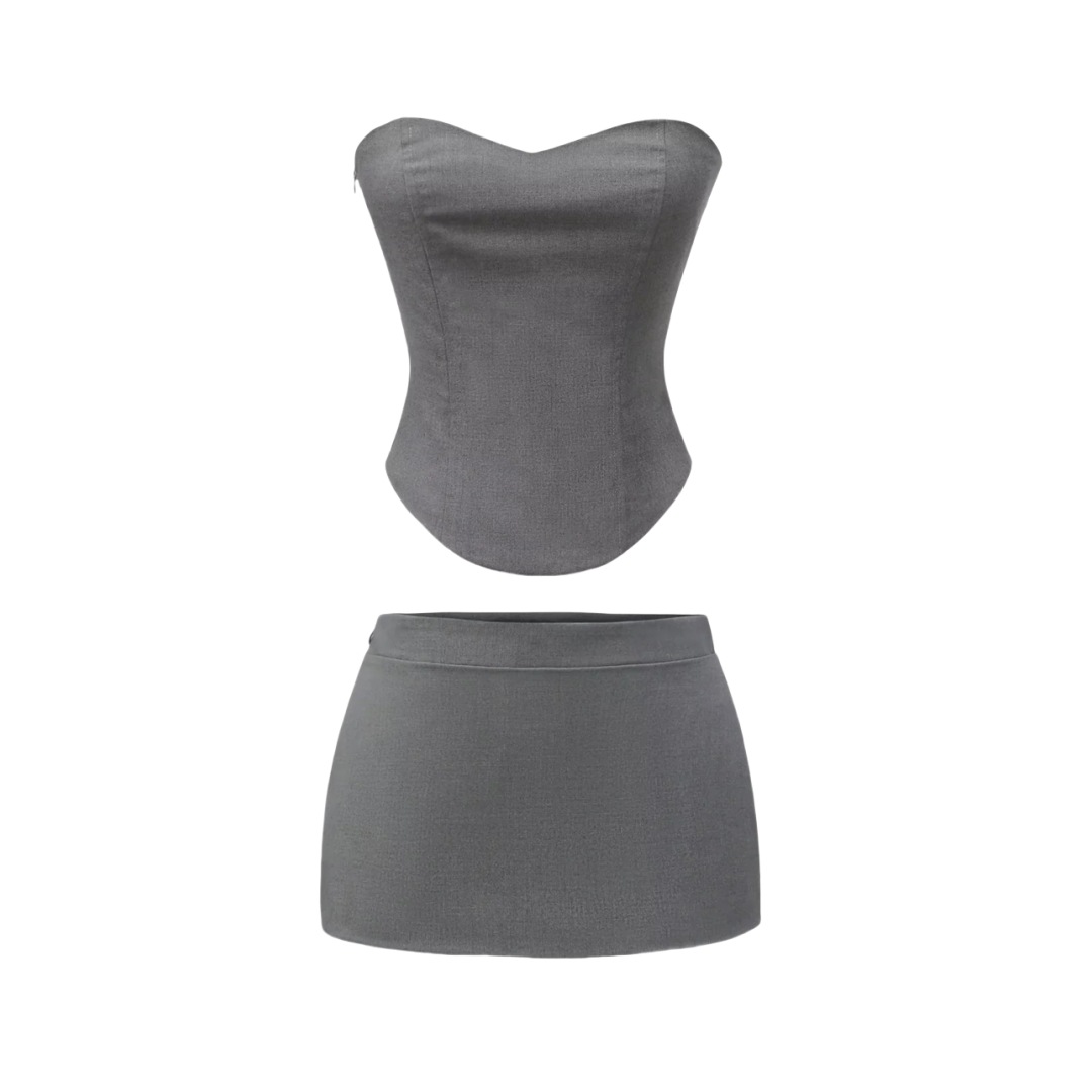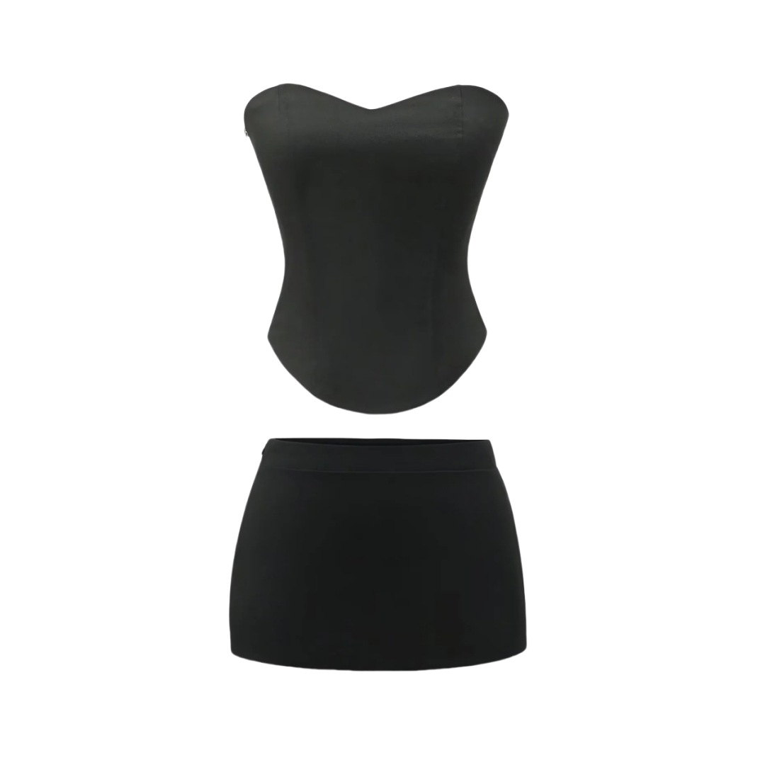 섹시한 가슴 감싸는 입체 피쉬본 코르셋 튜브탑 슬림핏 조끼 로우웨이스트 노출방지 슈트 스커트 슈트 솔리드 컬러