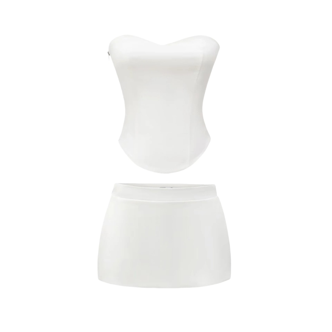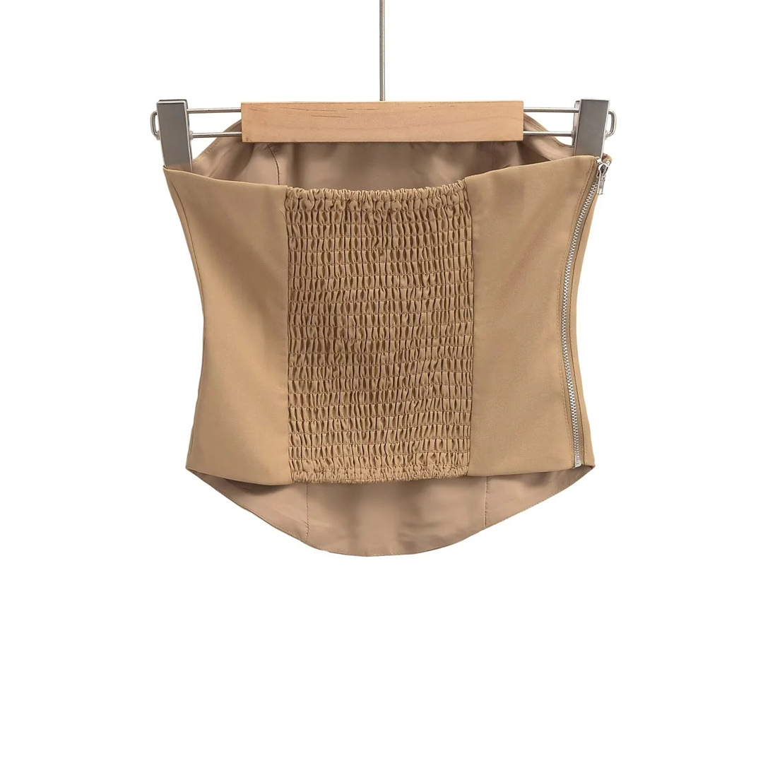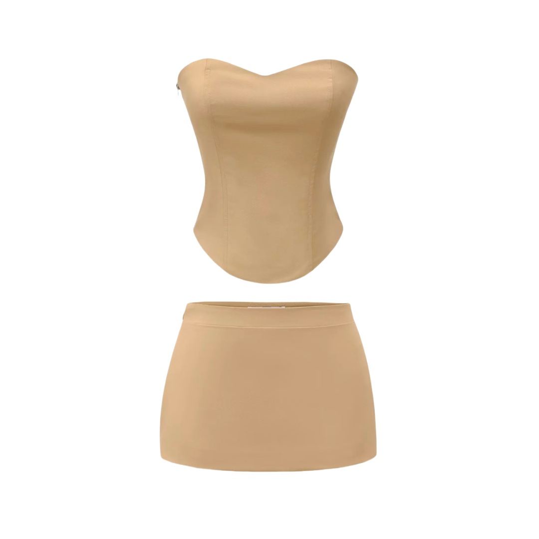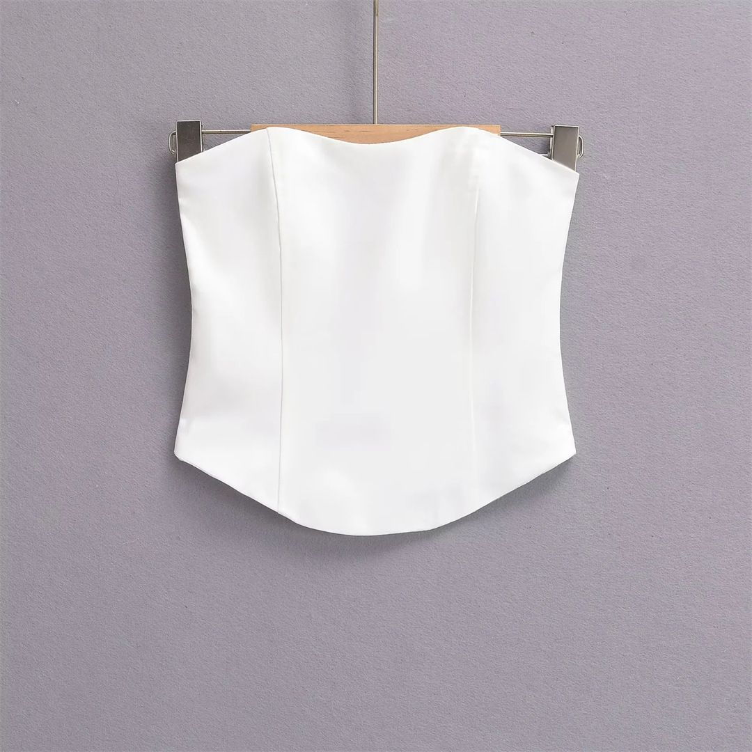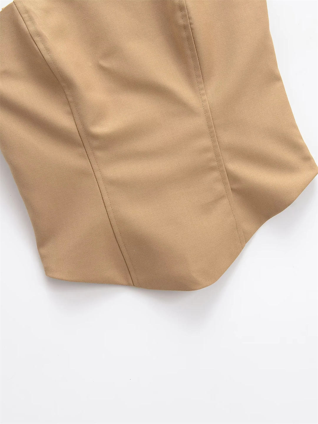 섹시한 가슴 감싸는 입체 피쉬본 코르셋 튜브탑 슬림핏 조끼 로우웨이스트 노출방지 슈트 스커트 슈트 솔리드 컬러