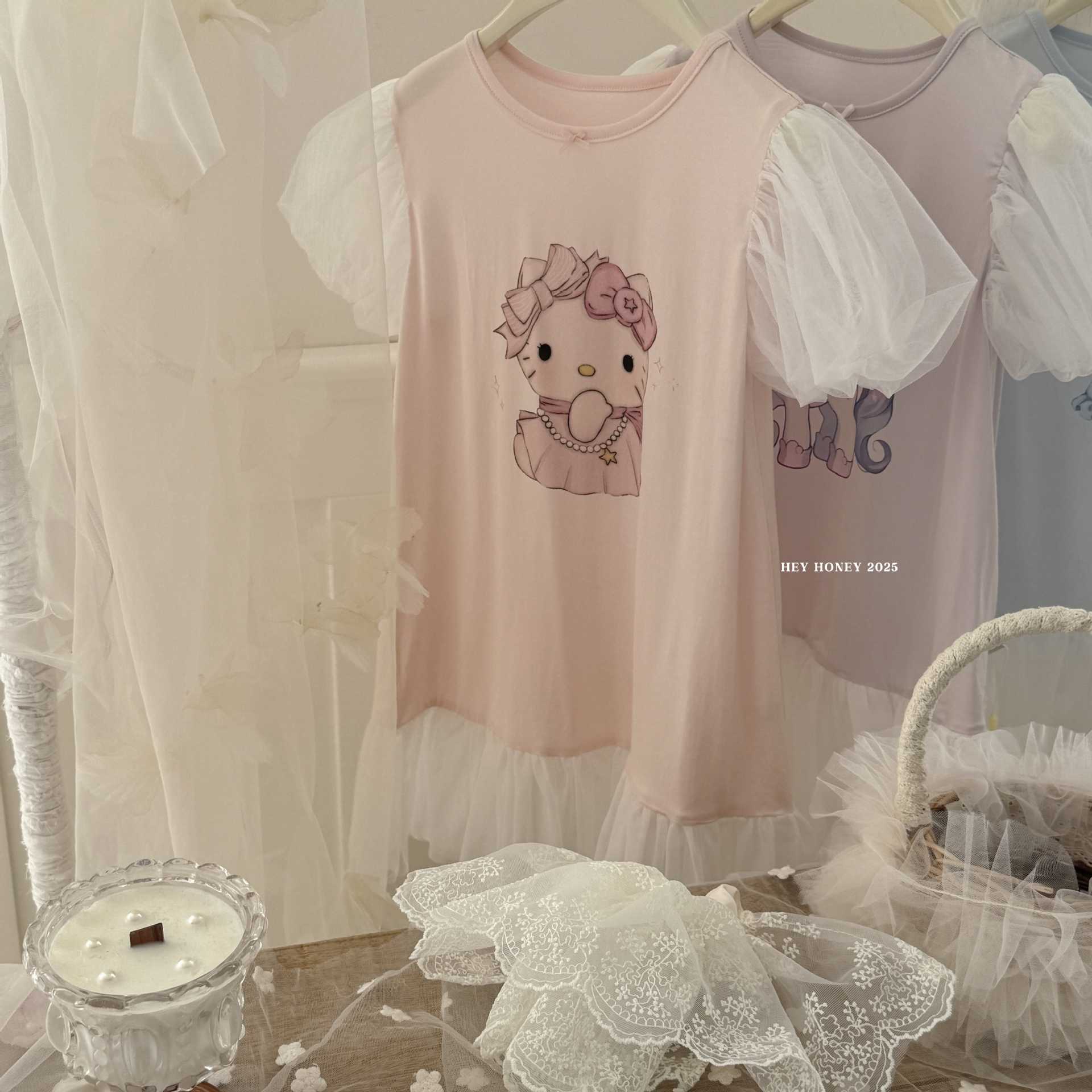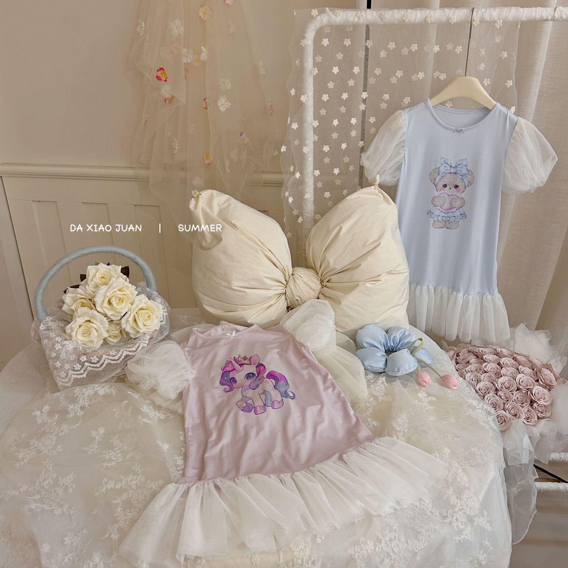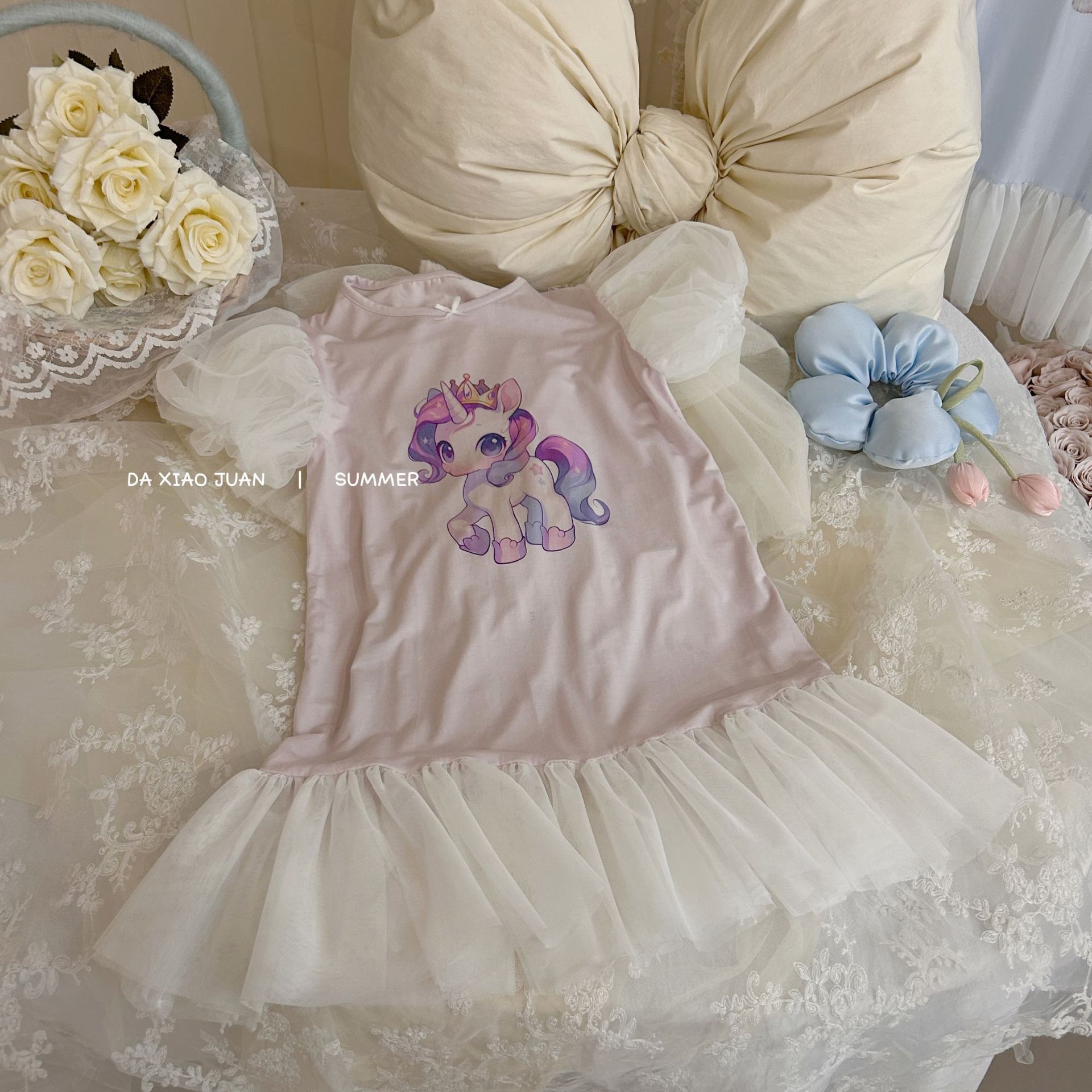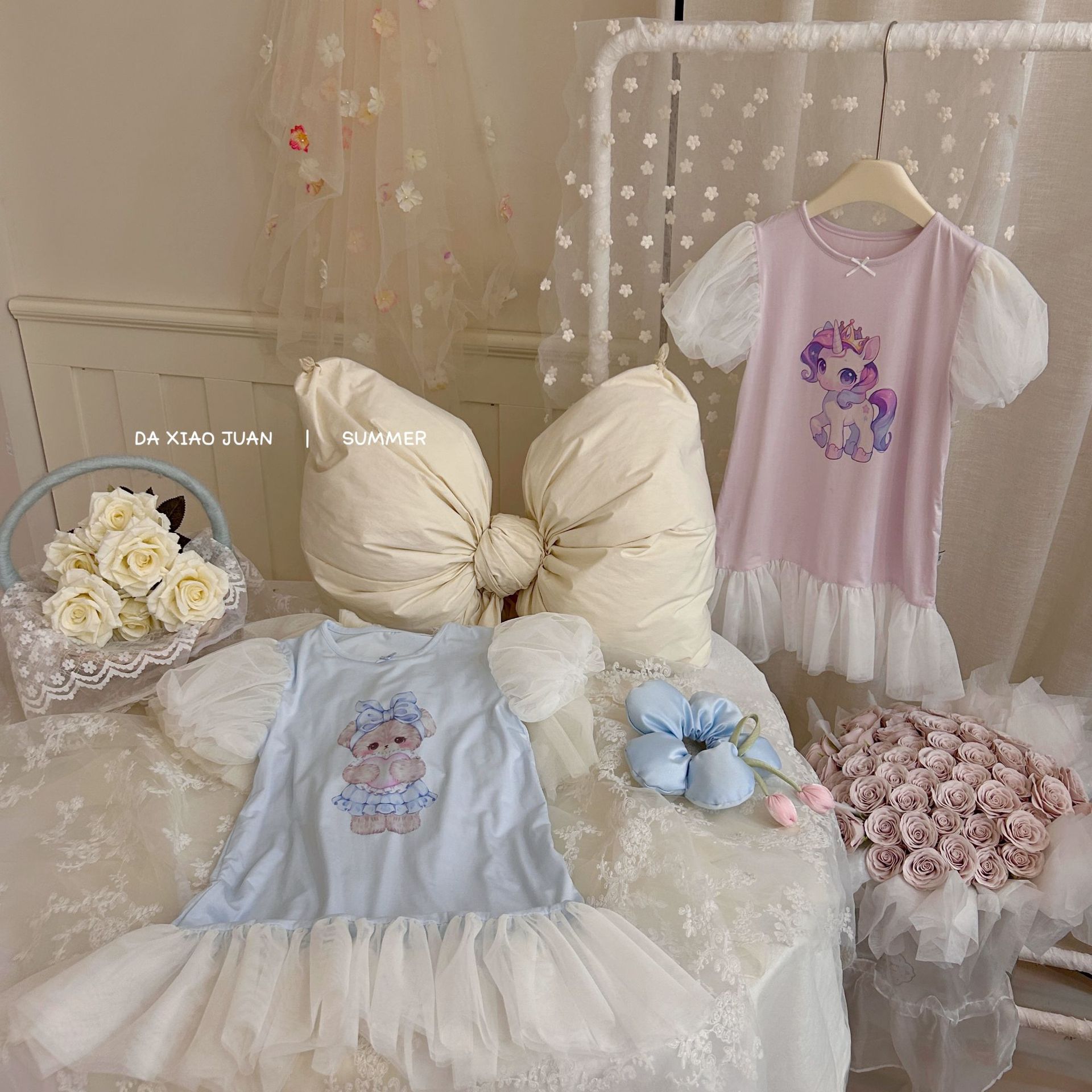 사이즈 롤 25 새로운 여름 어린이 소녀 만화 버블 슬리브 텐셀 나이트 드레스 귀여운 부드러운 원피스