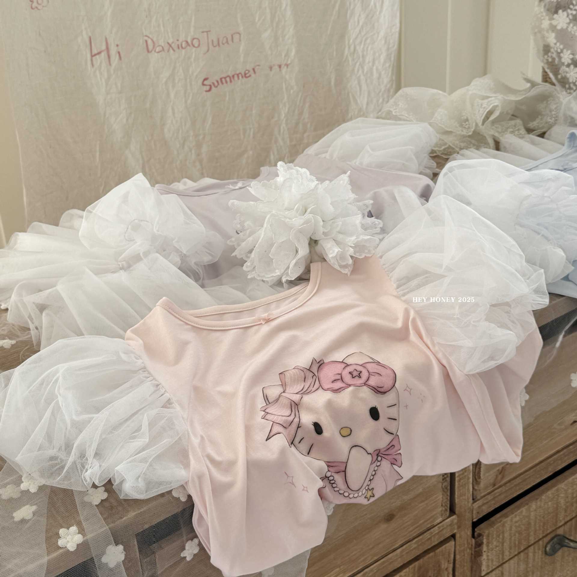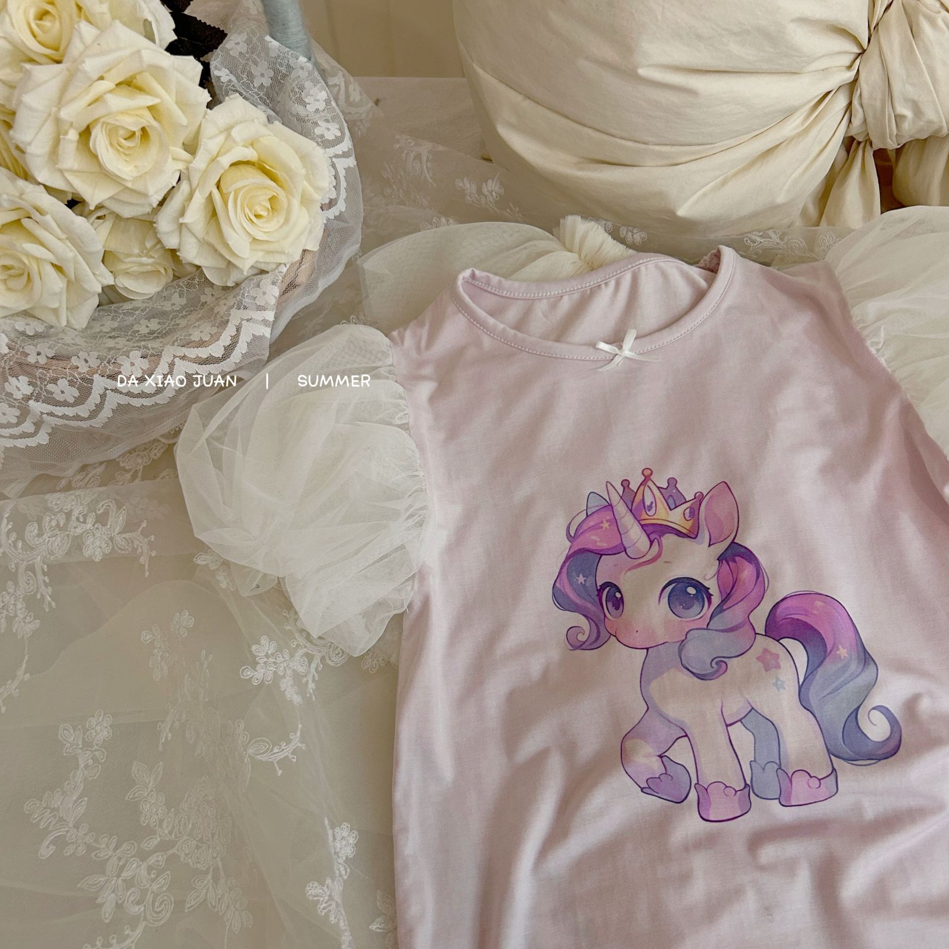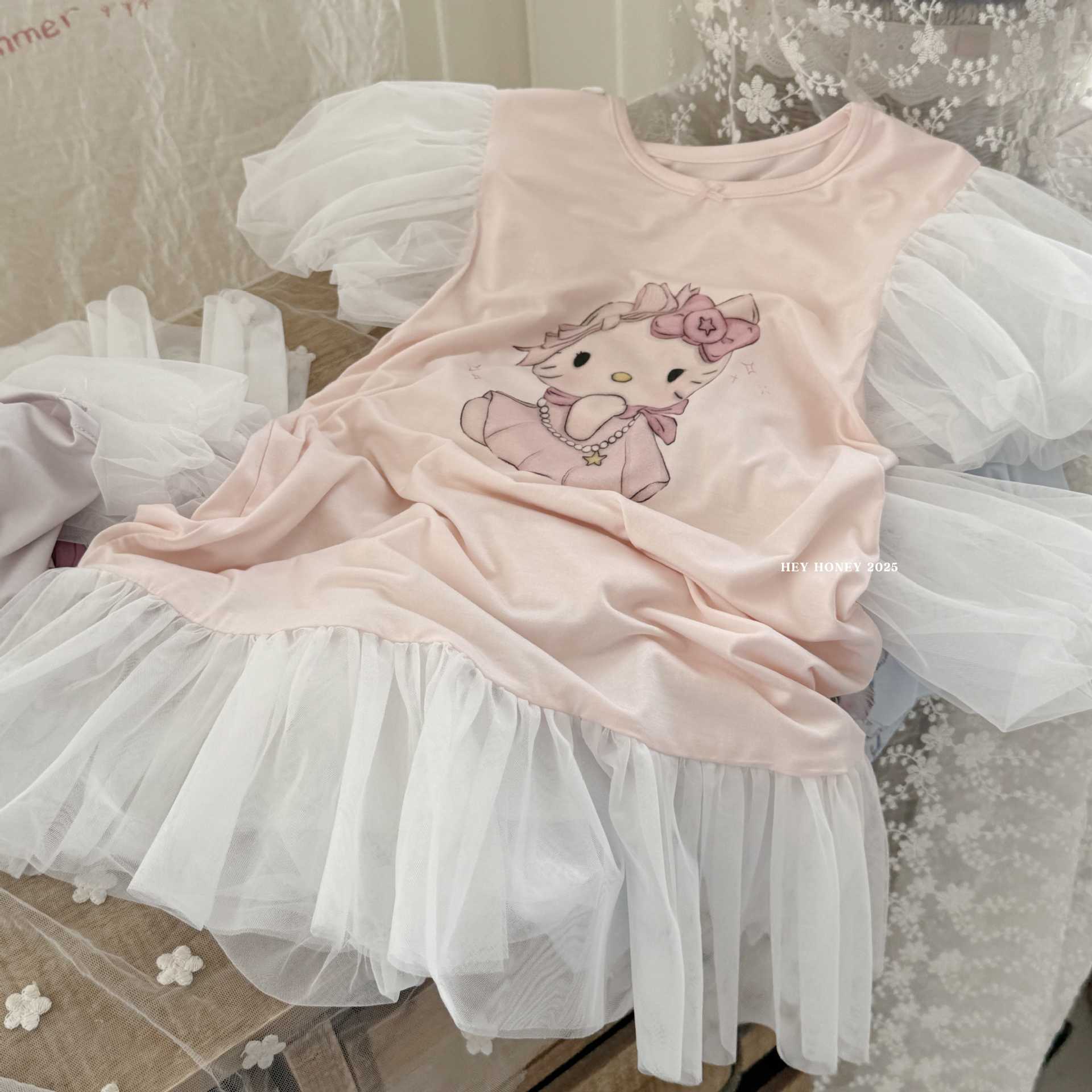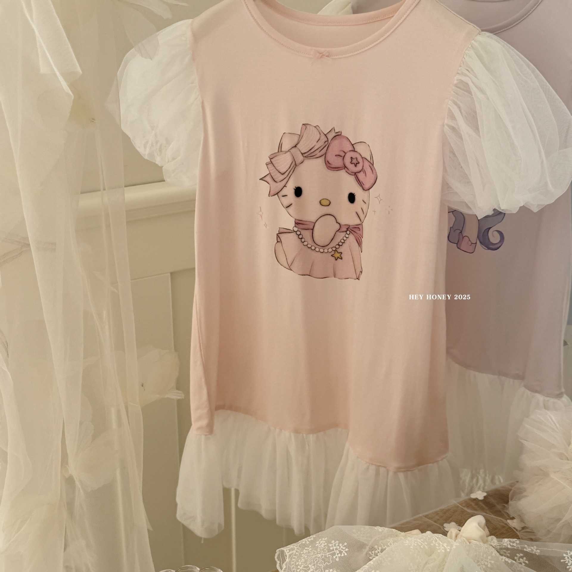 사이즈 롤 25 새로운 여름 어린이 소녀 만화 버블 슬리브 텐셀 나이트 드레스 귀여운 부드러운 원피스