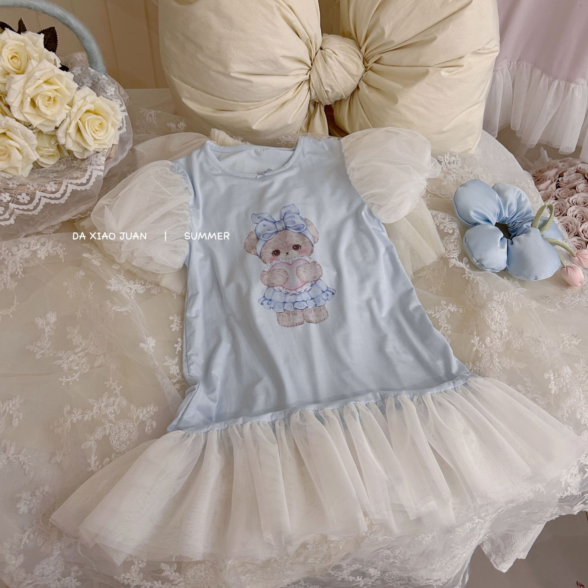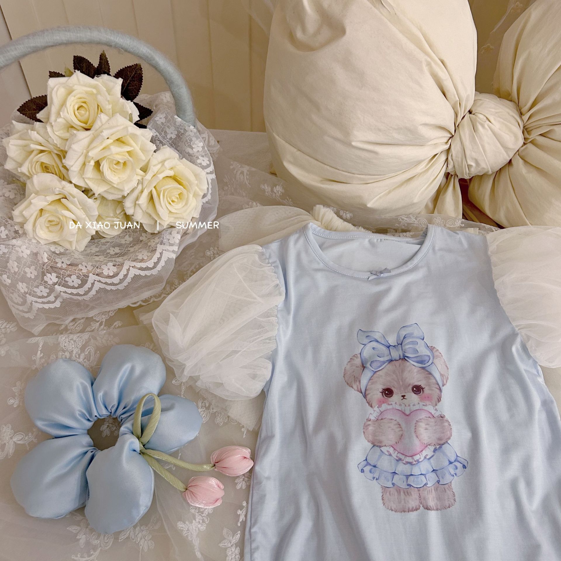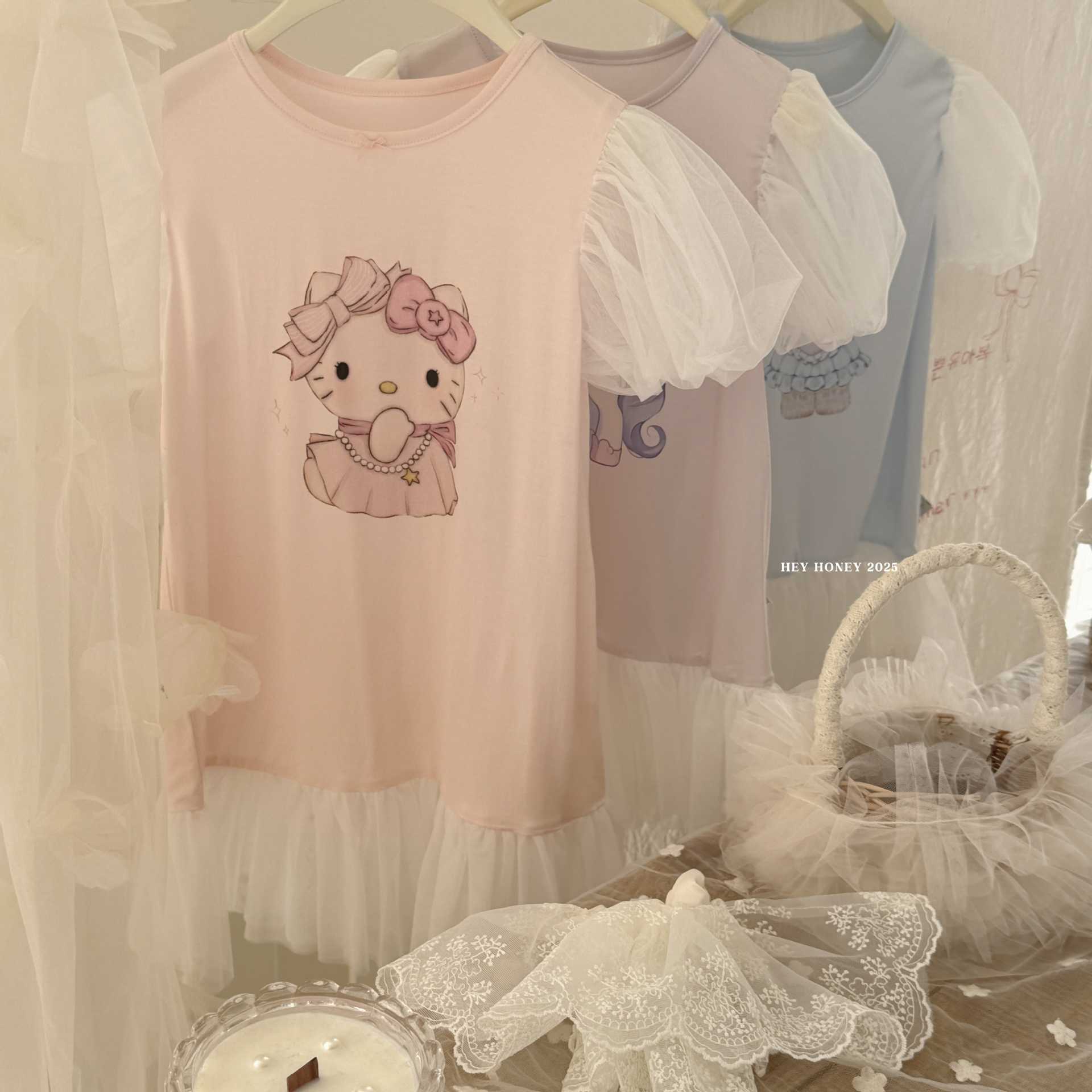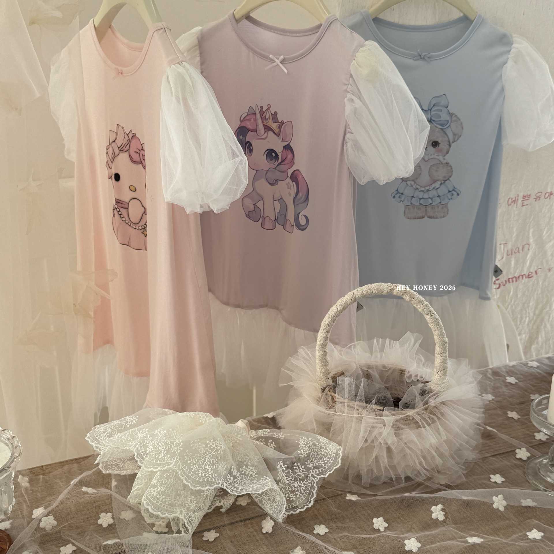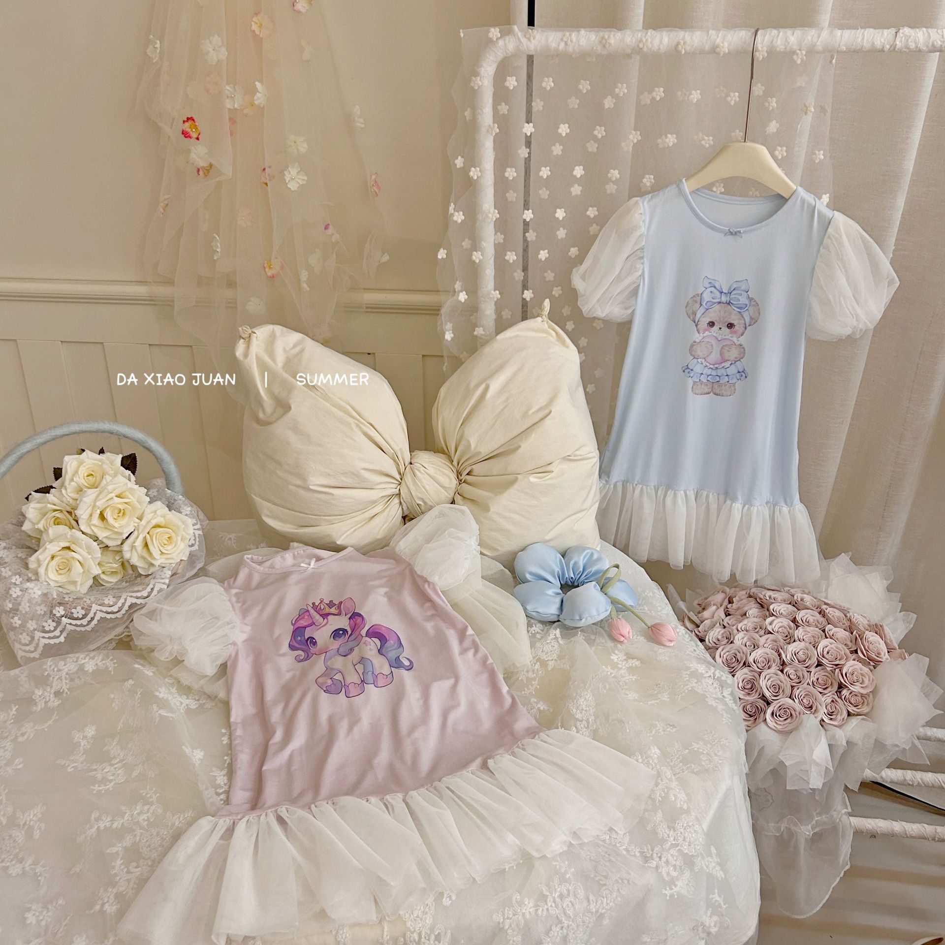 사이즈 롤 25 새로운 여름 어린이 소녀 만화 버블 슬리브 텐셀 나이트 드레스 귀여운 부드러운 원피스스토어 가기