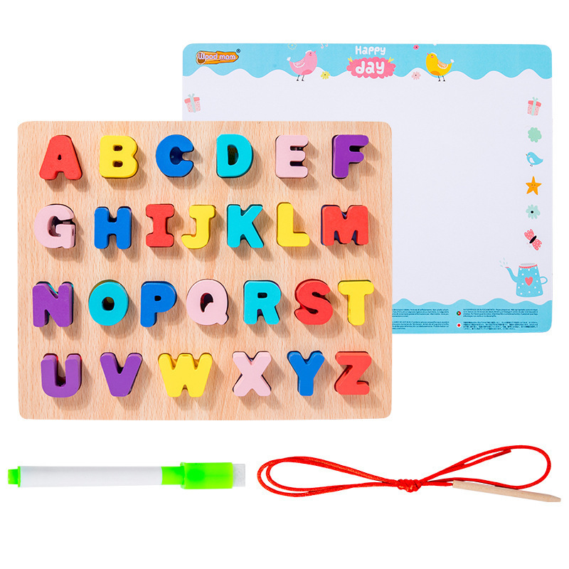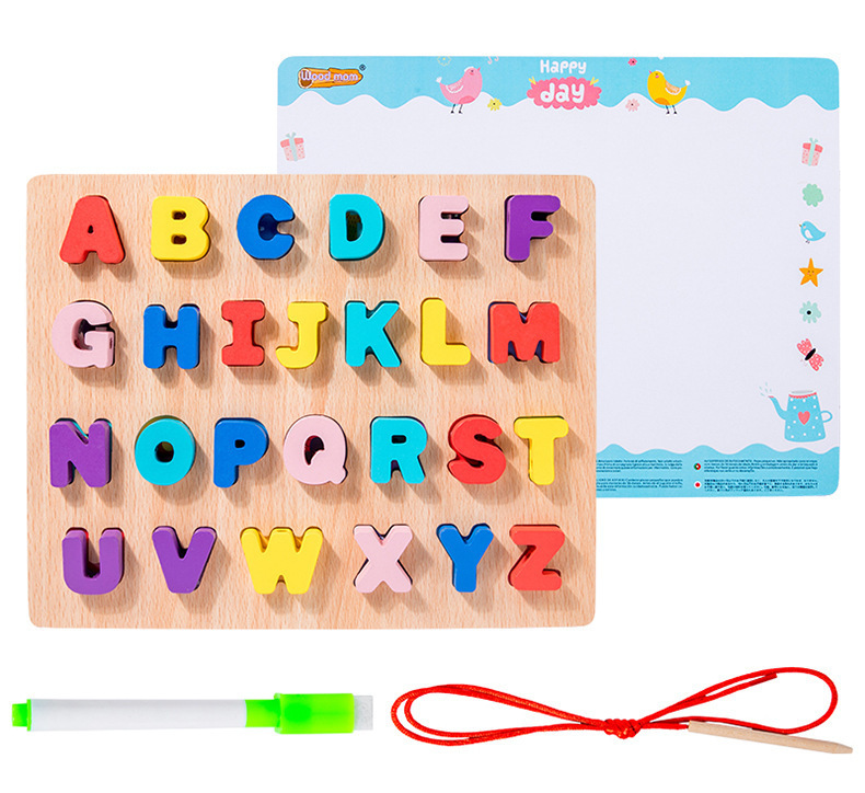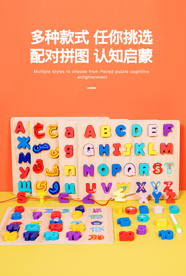 Weiweihu 어린이 잡기 훈련 손 눈 조정 인지 숫자 알파벳 일치하는 구슬 올인원 직소 퍼즐