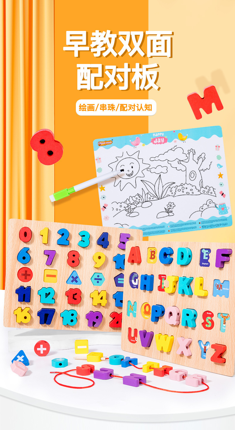 Weiweihu 어린이 잡기 훈련 손 눈 조정 인지 숫자 알파벳 일치하는 구슬 올인원 직소 퍼즐스토어 가기