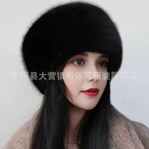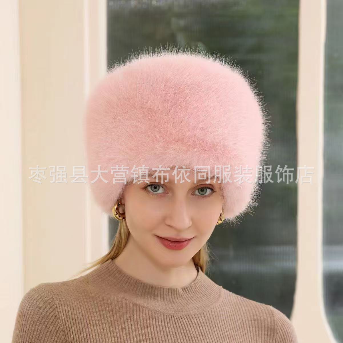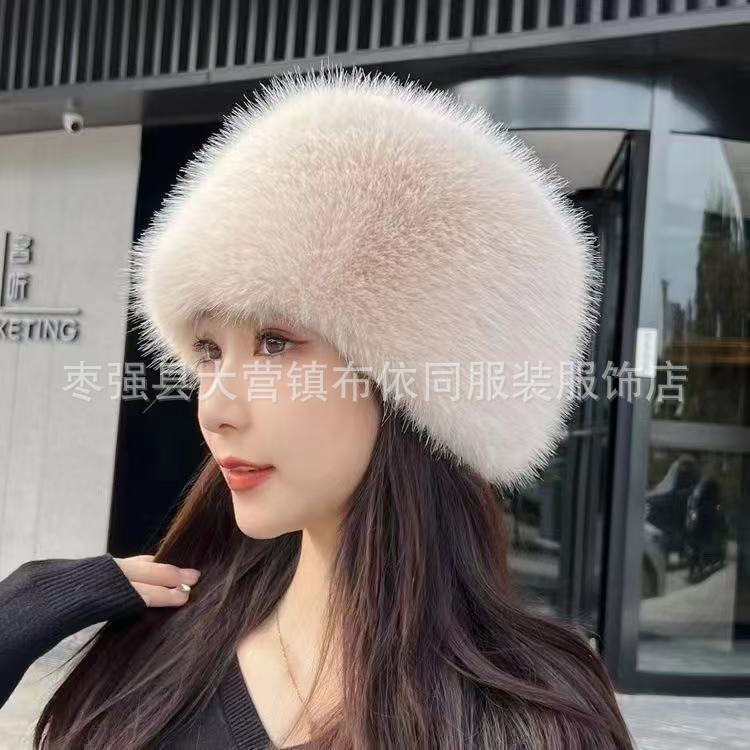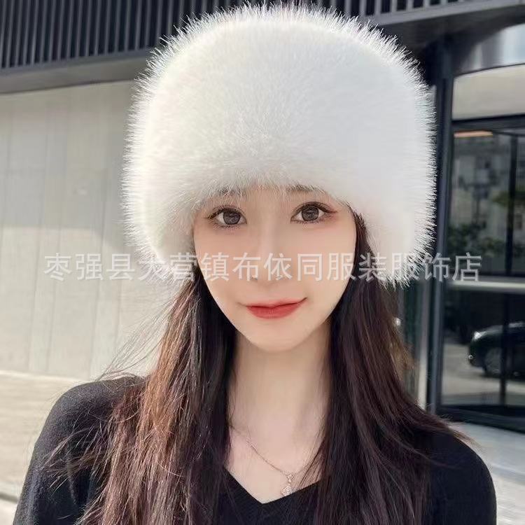 2025 새로운 가짜 모피 여우 모피 플랫 모자 플러시 버킷 모자를 두껍게 따뜻한 귀 보호 돔 요정 모자스토어 가기