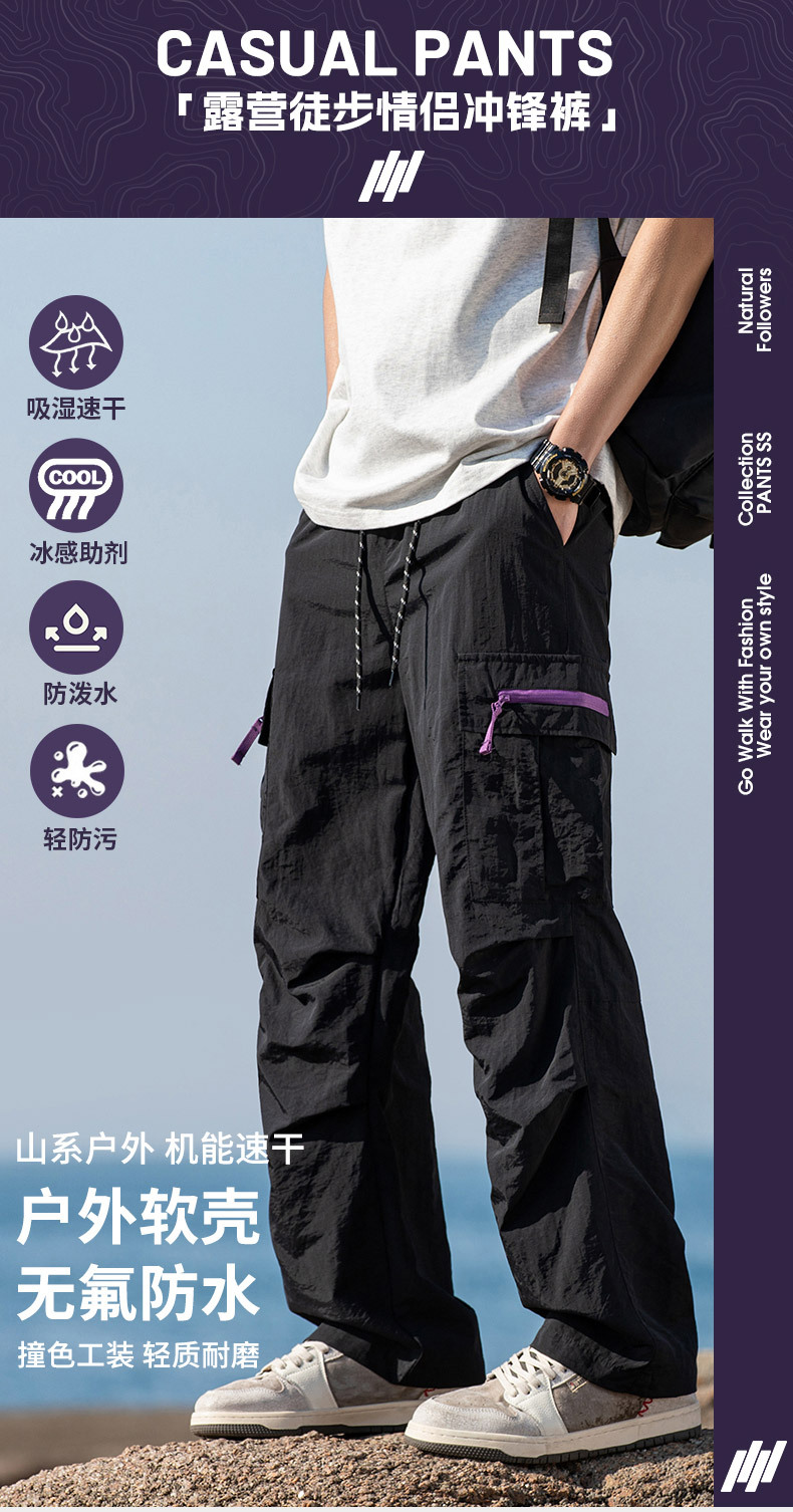 2025 봄 여름 신상 캐주얼 팬츠, 도시 야외 커플 아웃도어 팬츠, 아이스 실크 팬츠, 2개로 개폐 가능