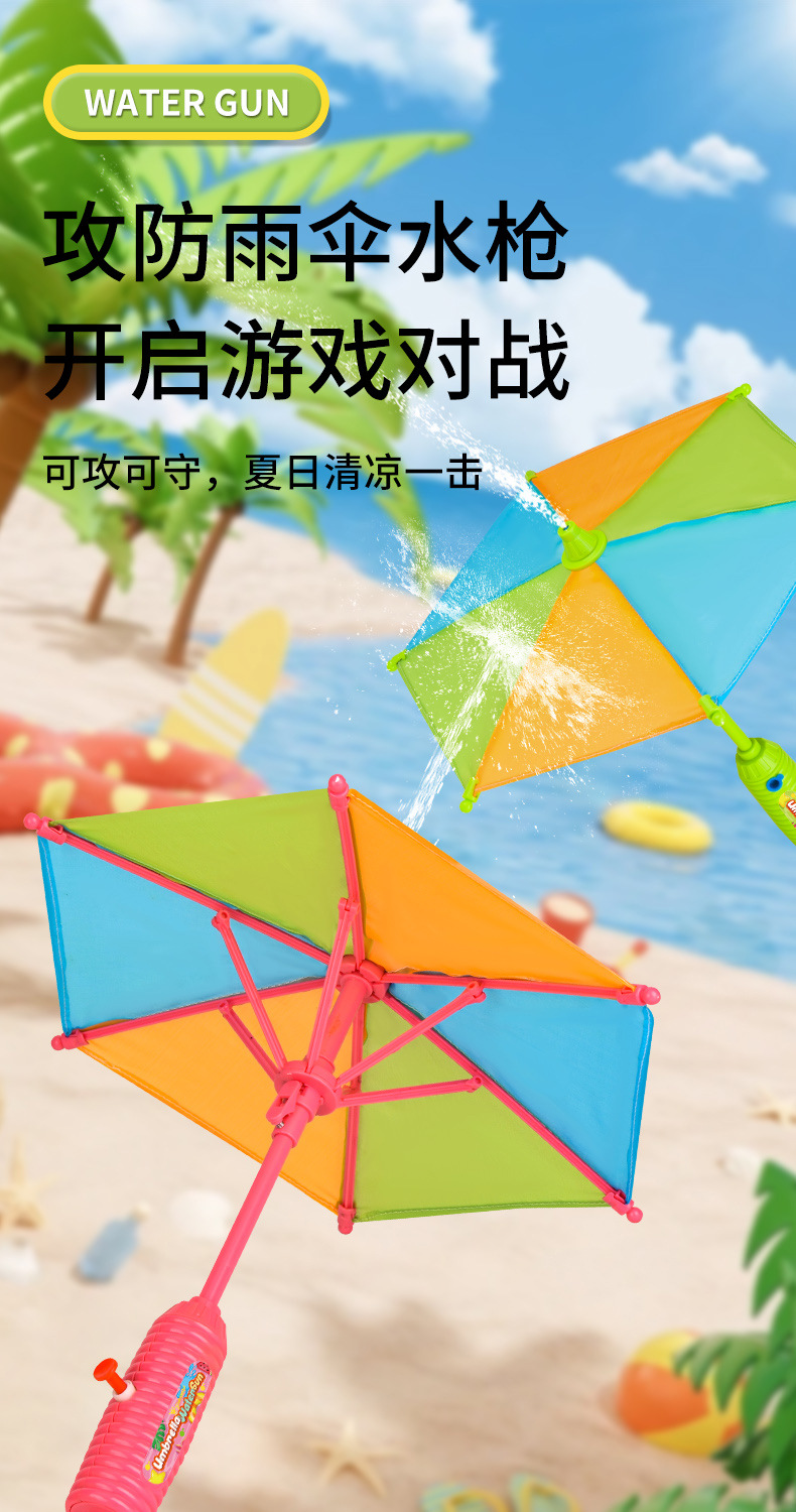 물총 어린이 장난감 물 스프레이 만화 공격 및 방어 우산 물총 해변 표류 물총 물 싸움 유물