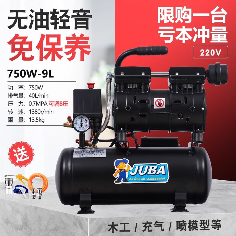 허리케인 공기 압축기 공기 펌프 작은 220V 목공 고압 가정용 기름없는 조용한 장식 그림 공기 압축기스토어 가기