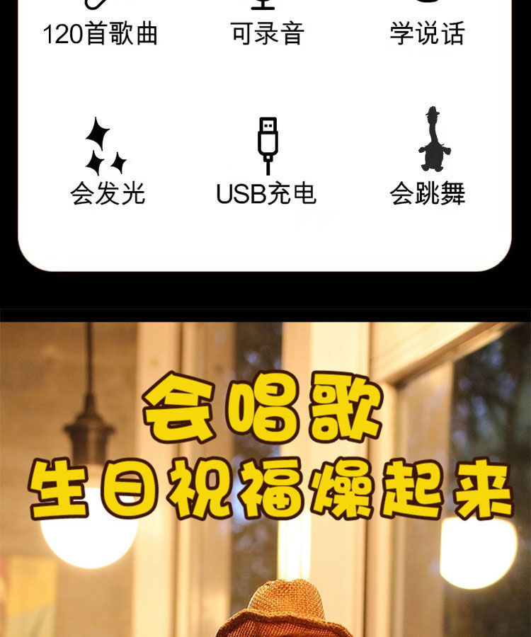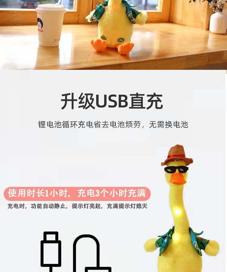 • 재미있는 카우보이 오리 [충전식 버전] 말하고, 빛나고, 노래하고 춤추는 법을 배울 수 있습니다.