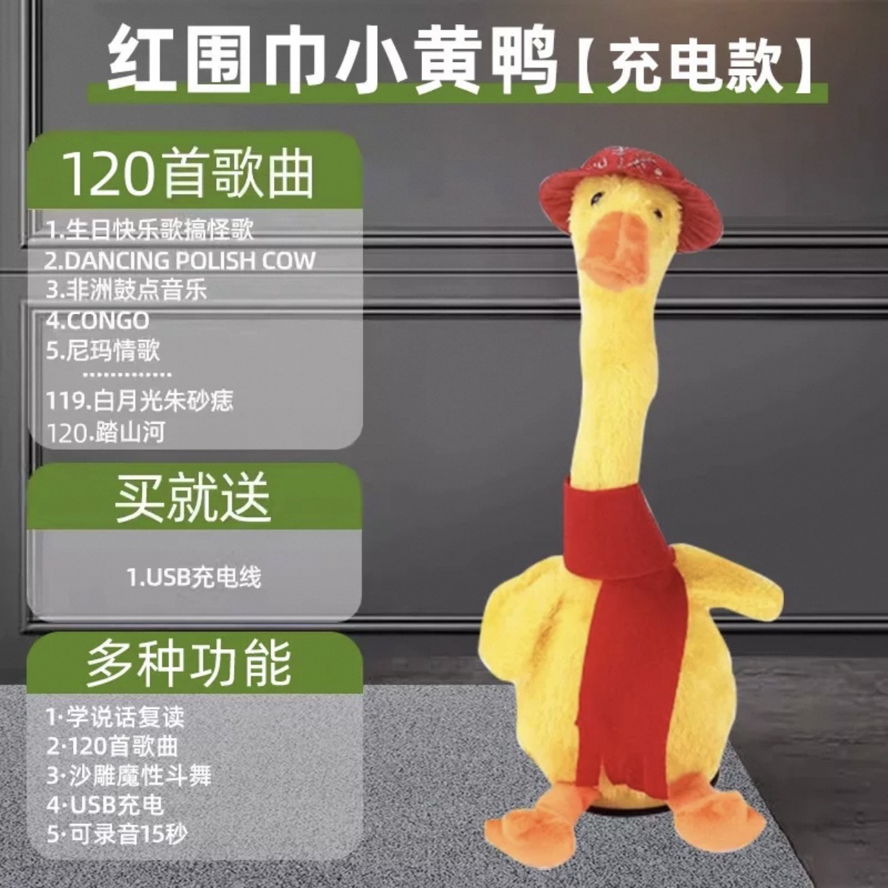 • 재미있는 빨간 모자 스카프 오리 [충전식 버전] 말하고, 빛나고, 노래하고 춤추는 법을 배울 수 있습니다