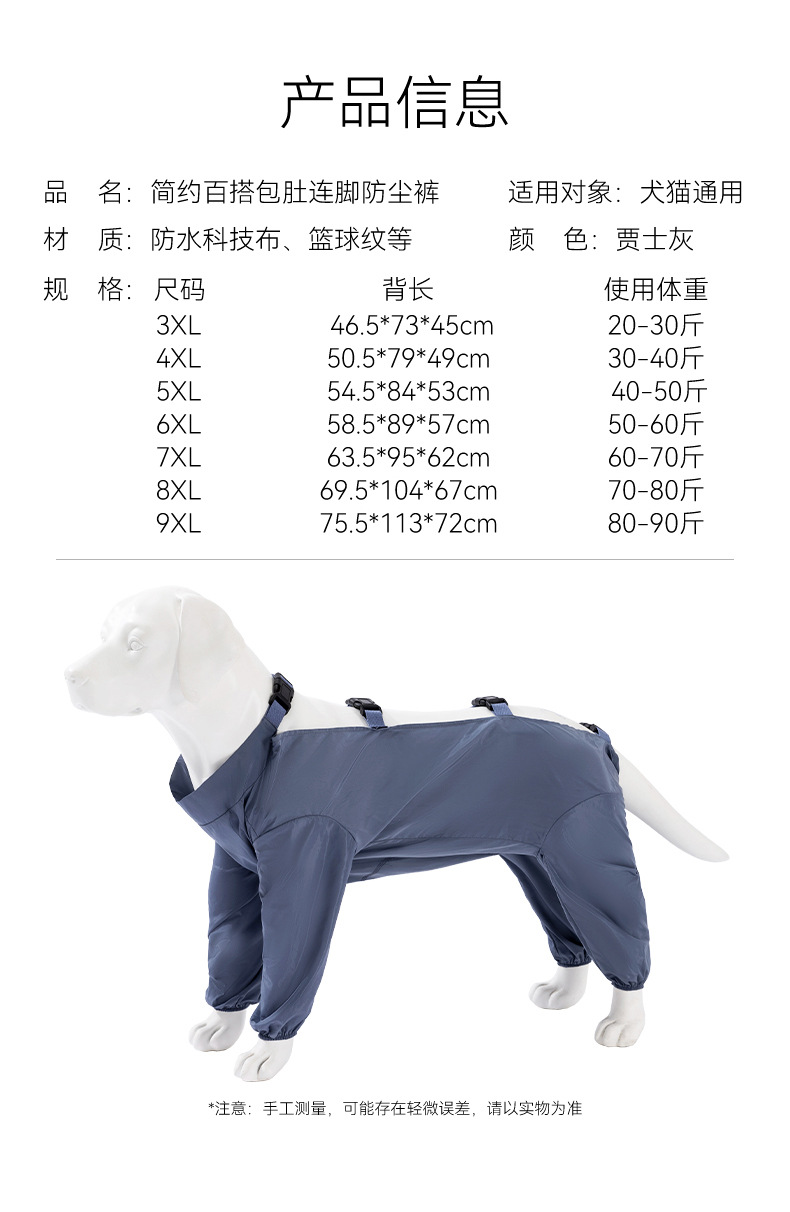 개 옷 간단한 조커 가방 벨리 다리 방진 바지 대형 개 골든 리트리버 방수 방수 애완 동물 방진 바지스토어 가기
