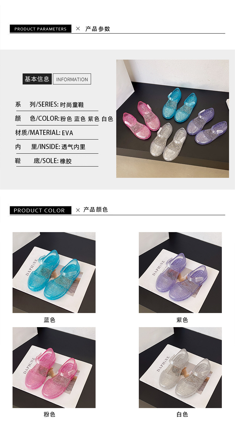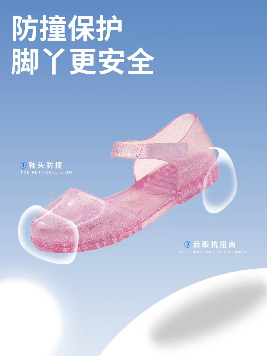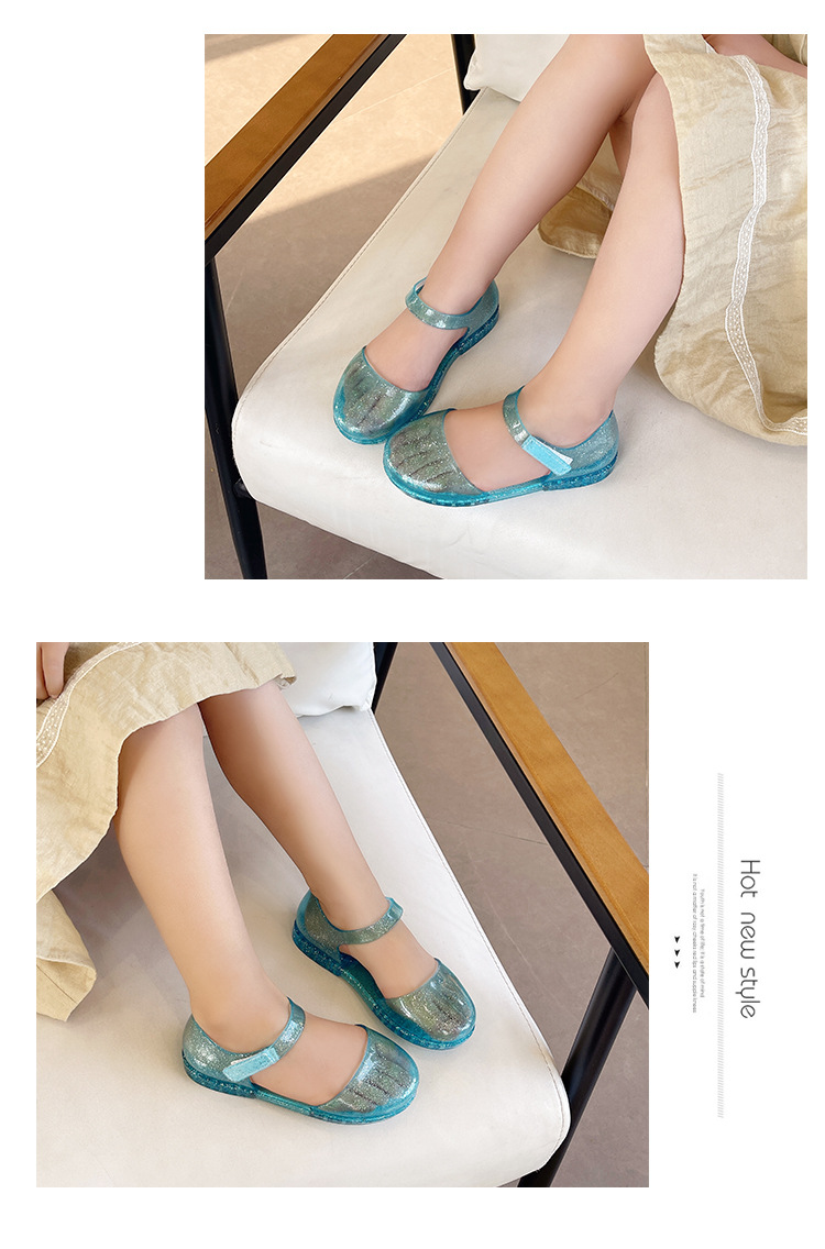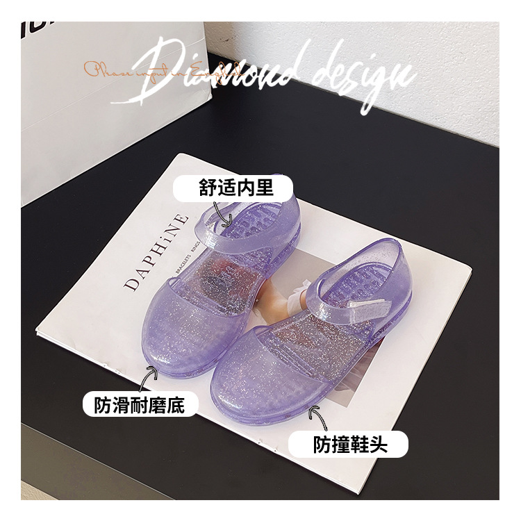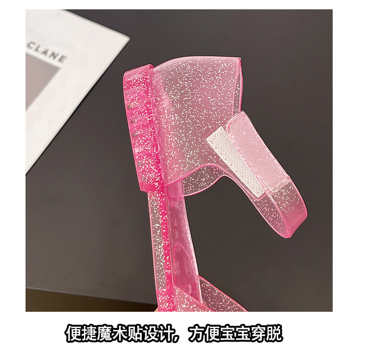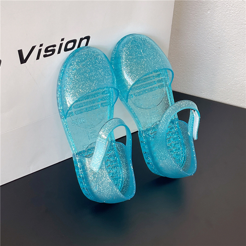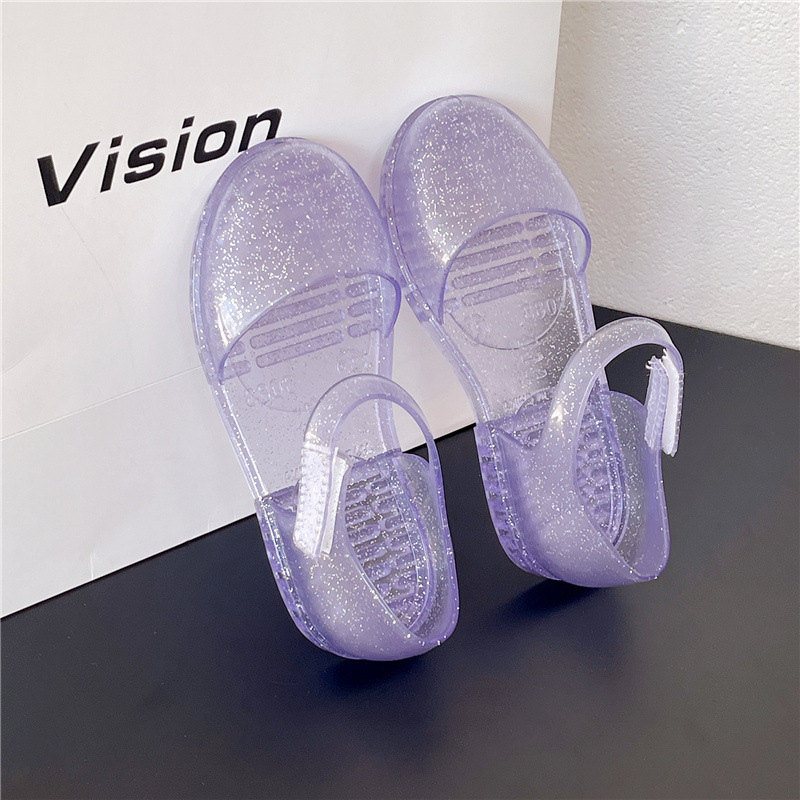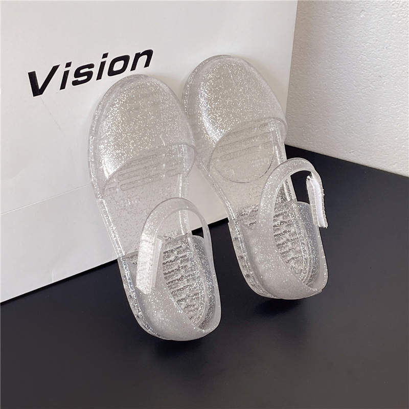 솔리드 컬러 플래시 슬리퍼 소녀 PVC 투명 고무 신발 중소 어린이 실내 Baotou 홈 여름 공주 샌들